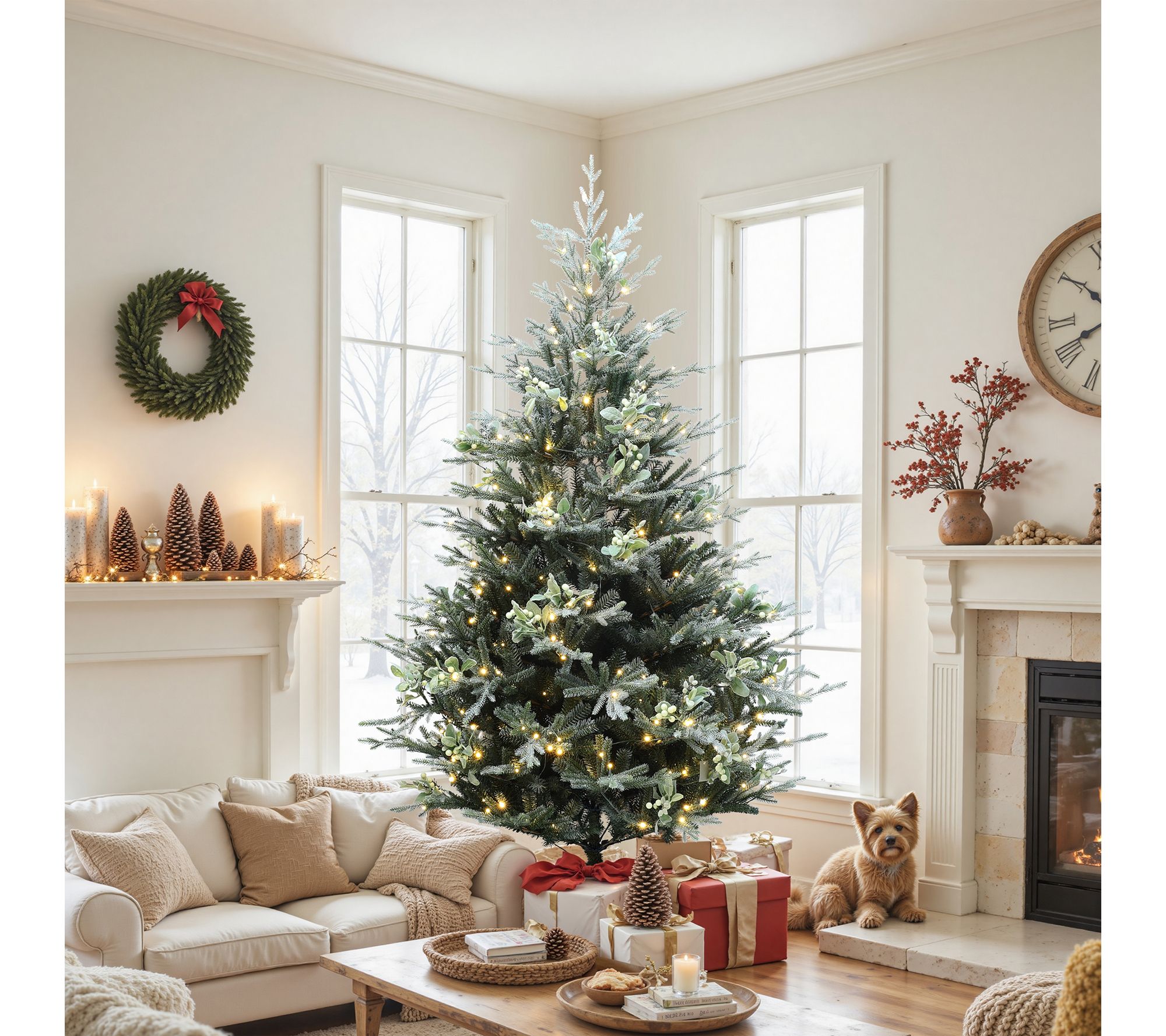 Capture festive charm the moment you step into the room with this 7' pre-lit Christmas tree featuring lifelike mistletoe accents and a gentle holiday glow. Soft-touch branch tips and vibrant red berries create an inviting centerpiece for your seasonal gatherings, making decorating quick and effortless. Enjoy the warmth and style for celebrations both big and small. From LuxenHome.