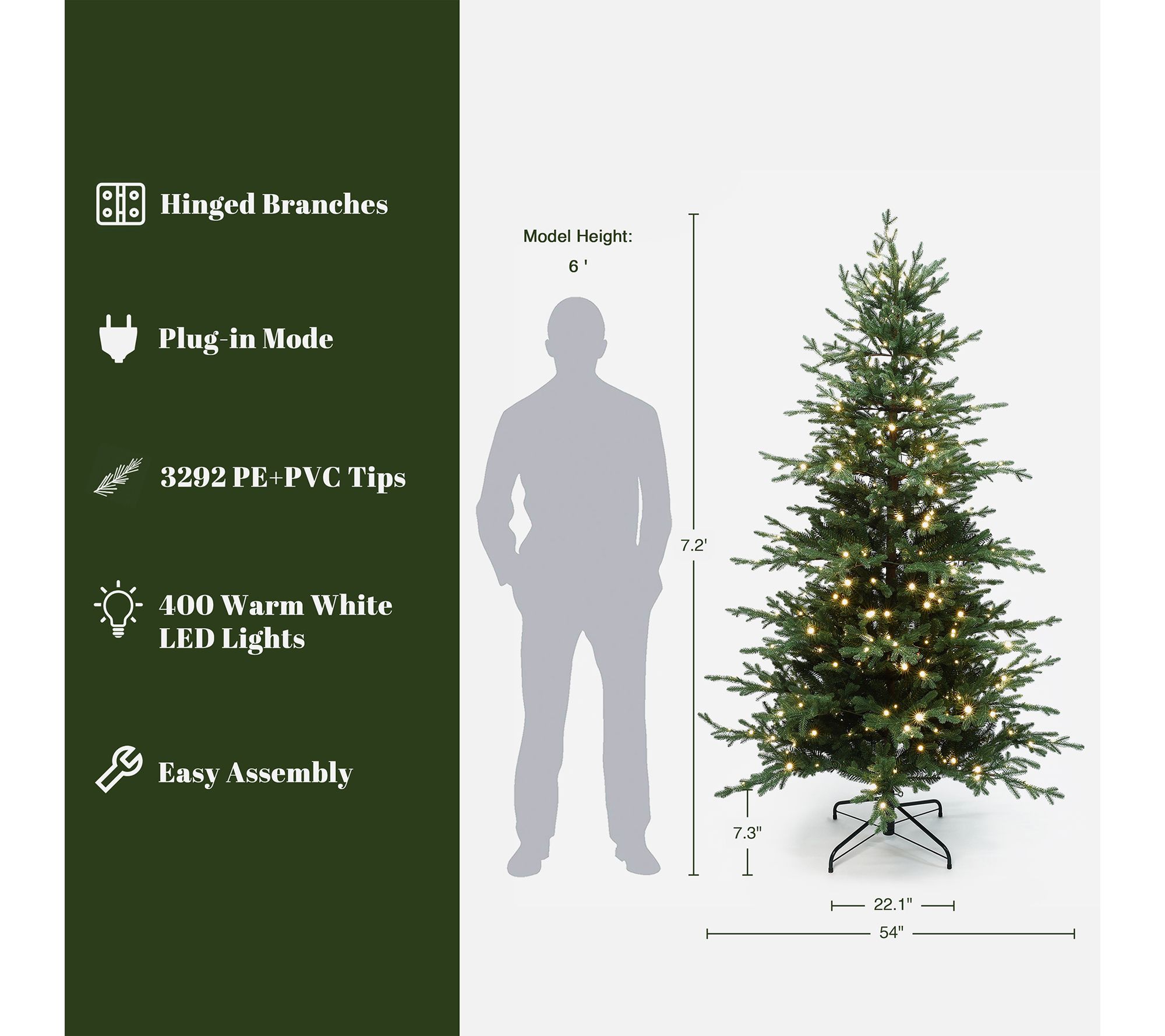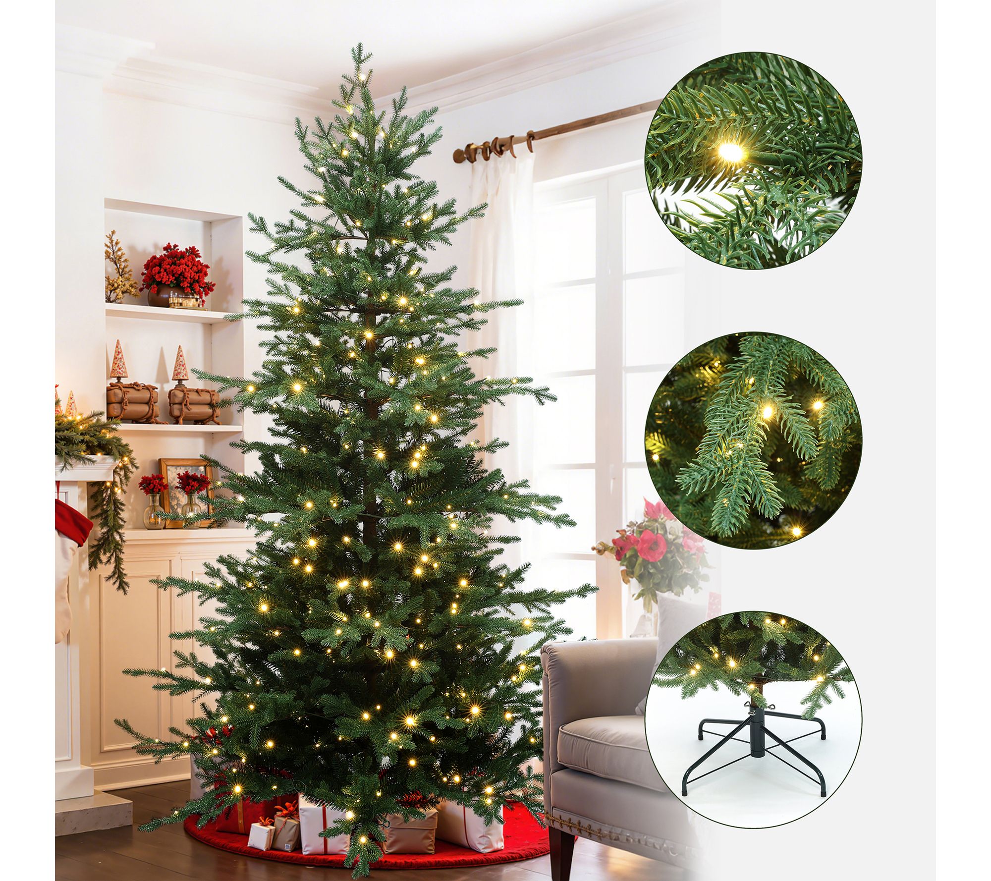 Holiday gatherings feel even more magical with this pre-lit Christmas tree gracing your space. Lifelike fir branches and warm white LED lights set a festive scene, shining brightly in living rooms, offices, or entryways. The sturdy metal stand and simple sectional assembly make decking the halls a breeze. From LuxenHome.