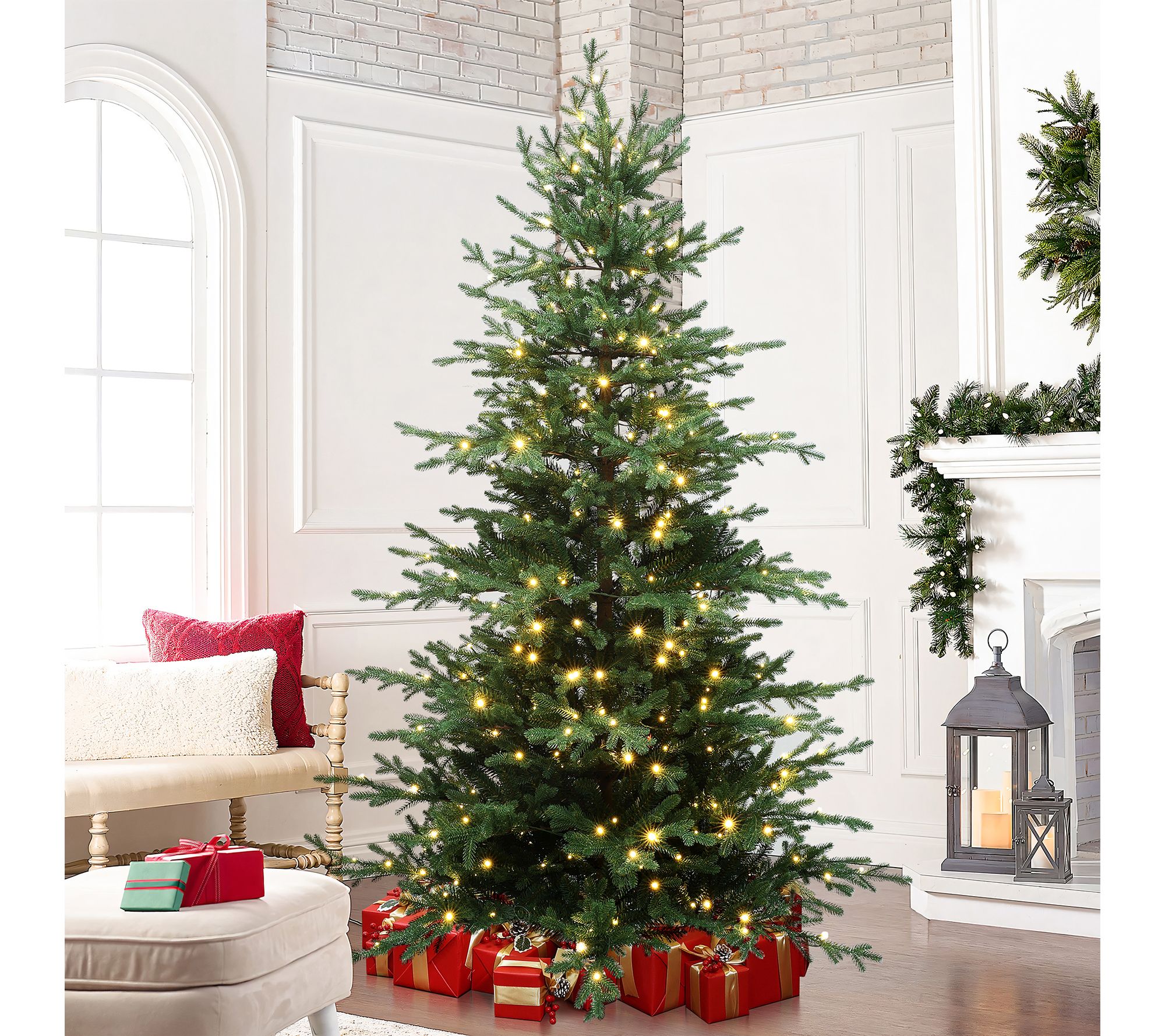 Includes 7-foot pre-lit artificial tree and metal stand