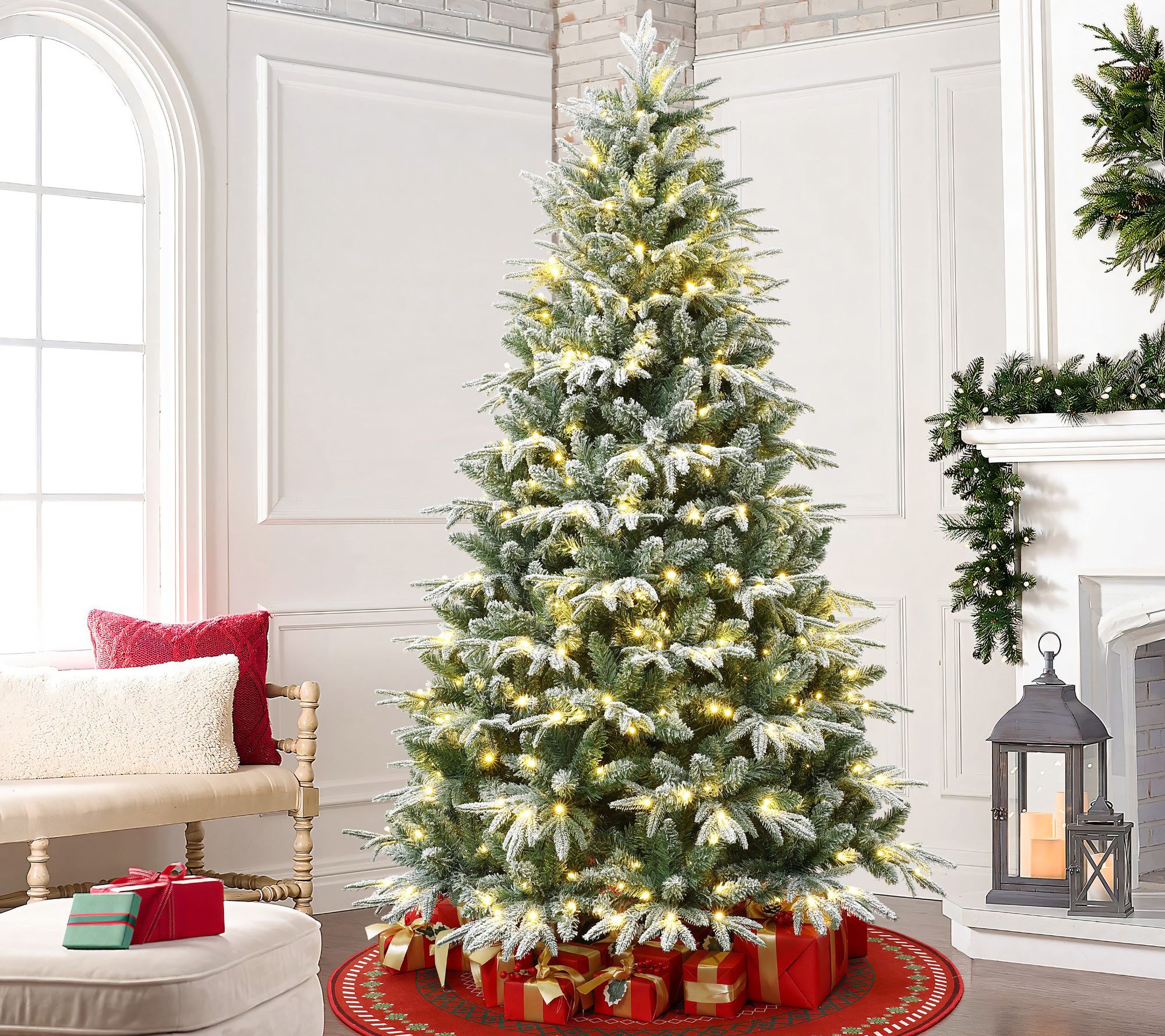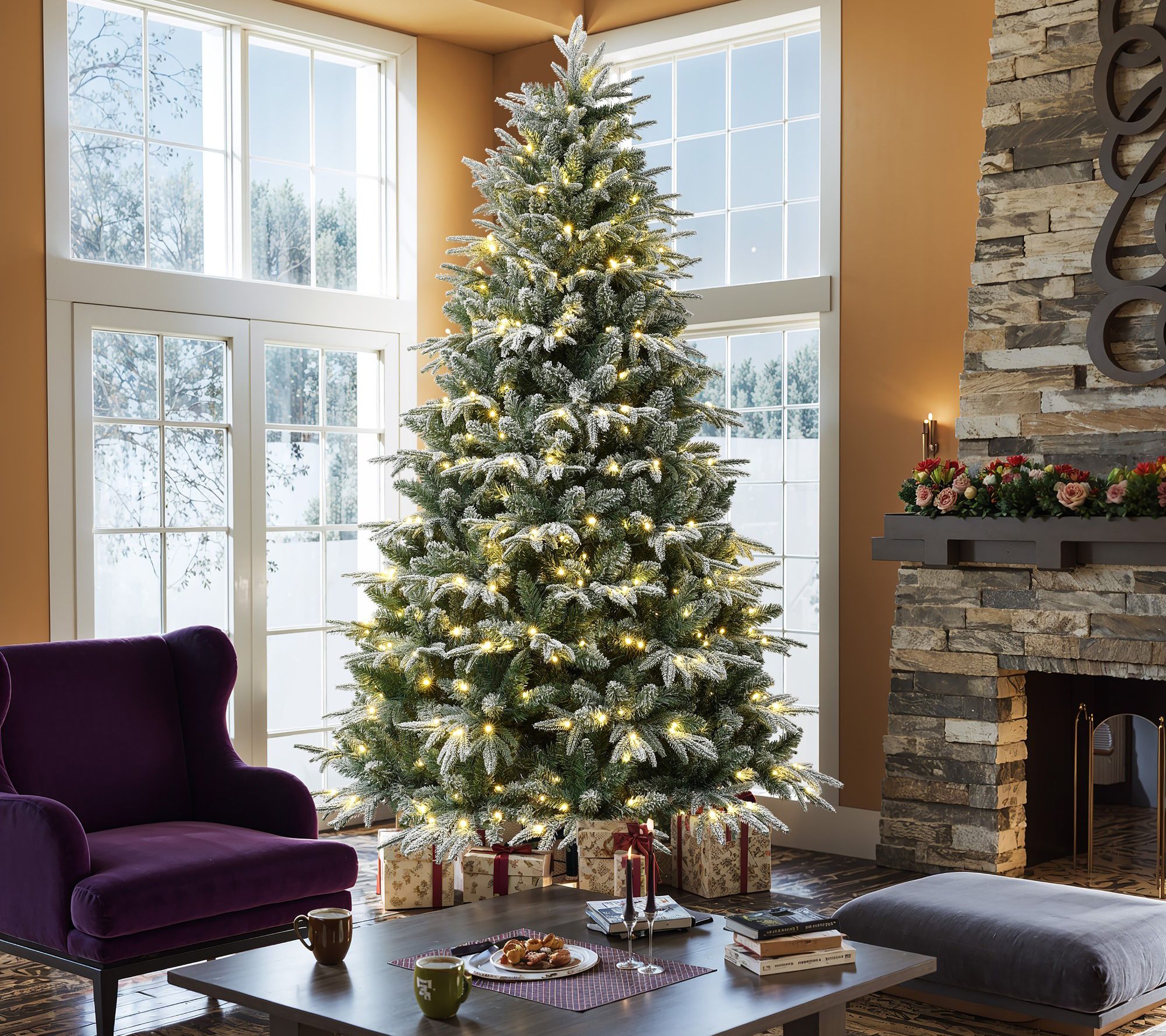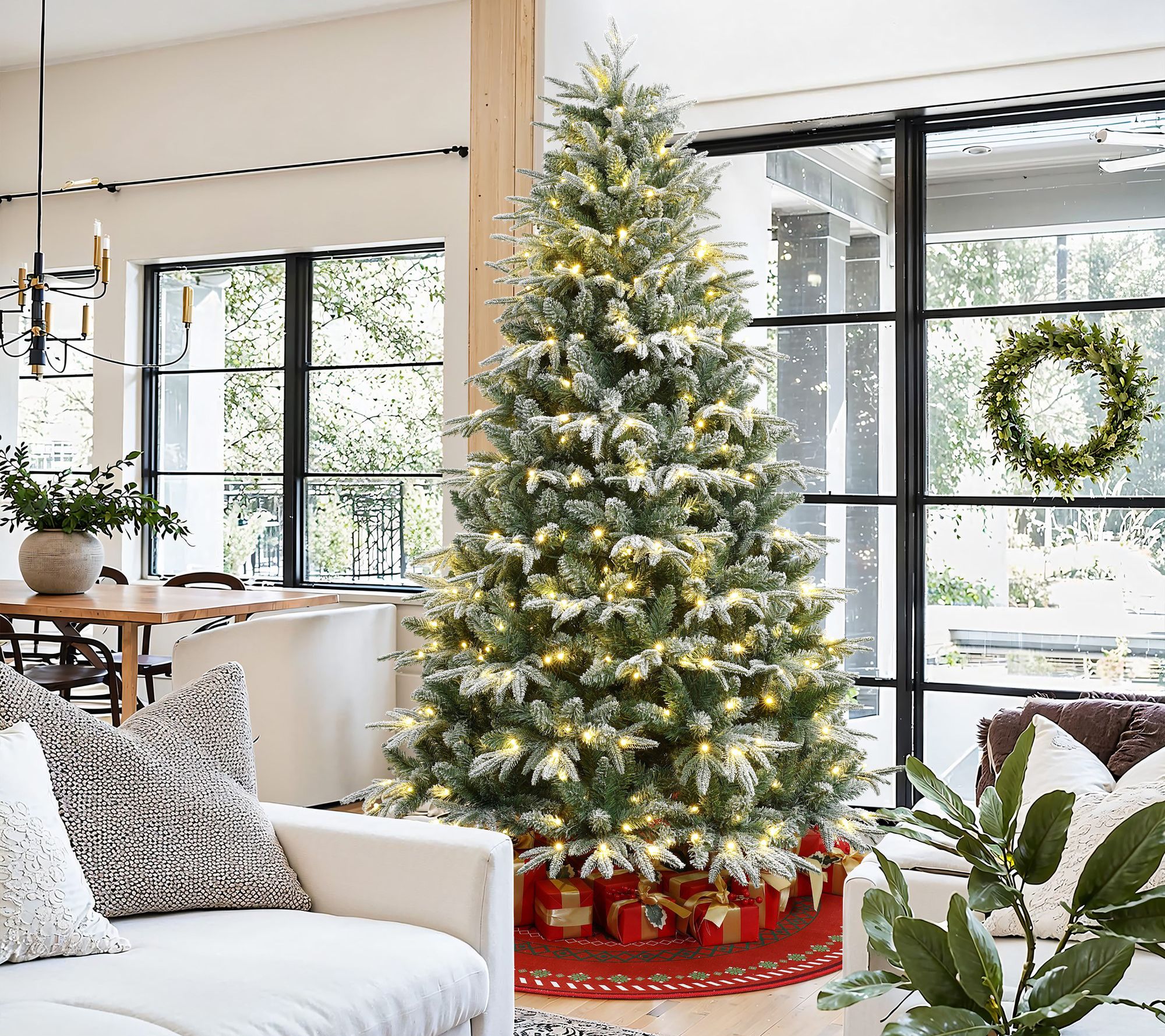 LuxenHome 7Ft Pre-Lit Flocked Fraser Fir Full Artificial Tree