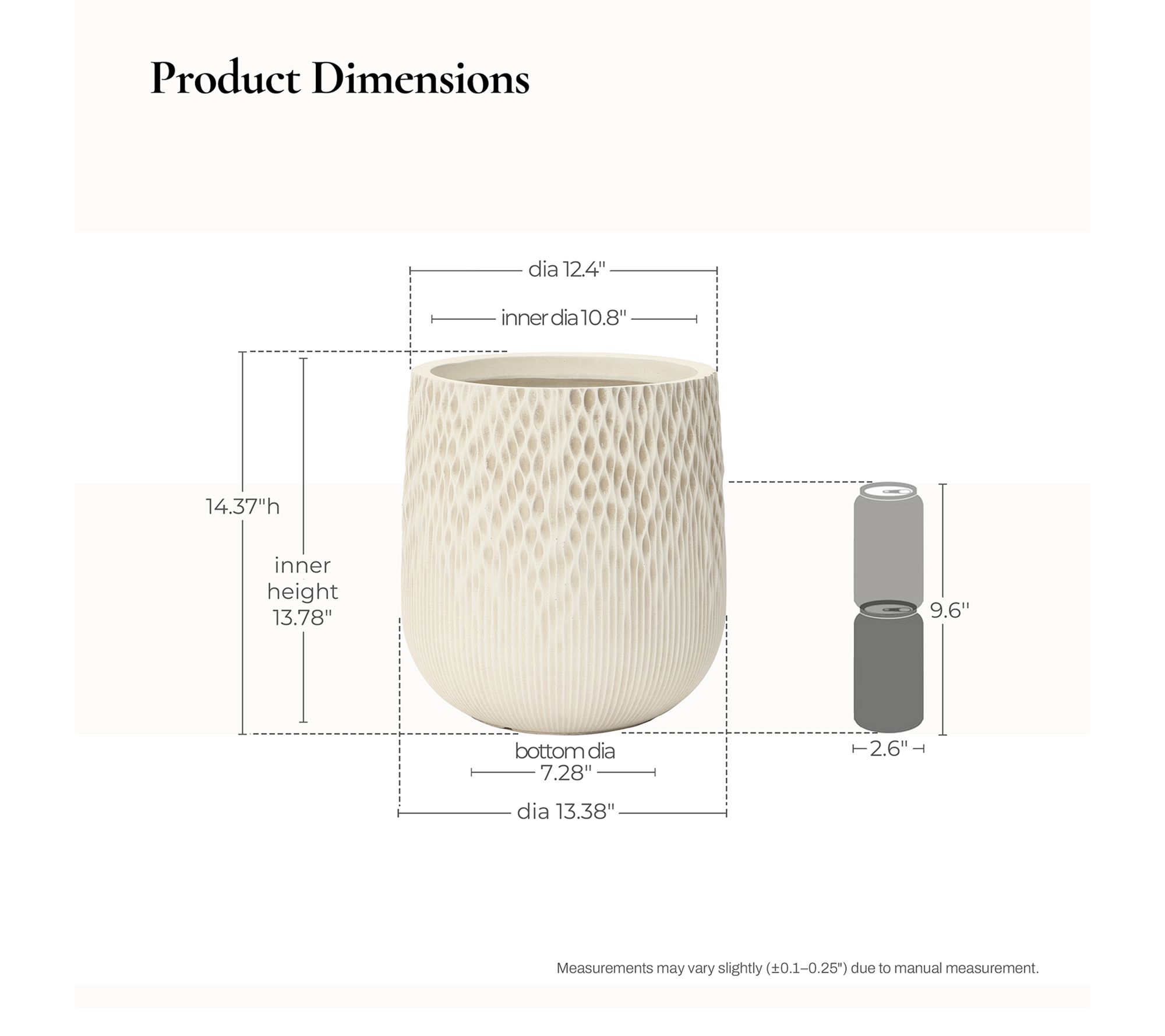 • Measures 14.37"H x 13.38"Diam