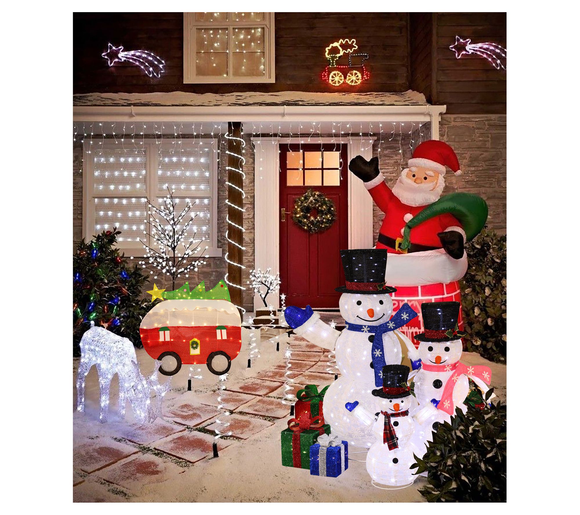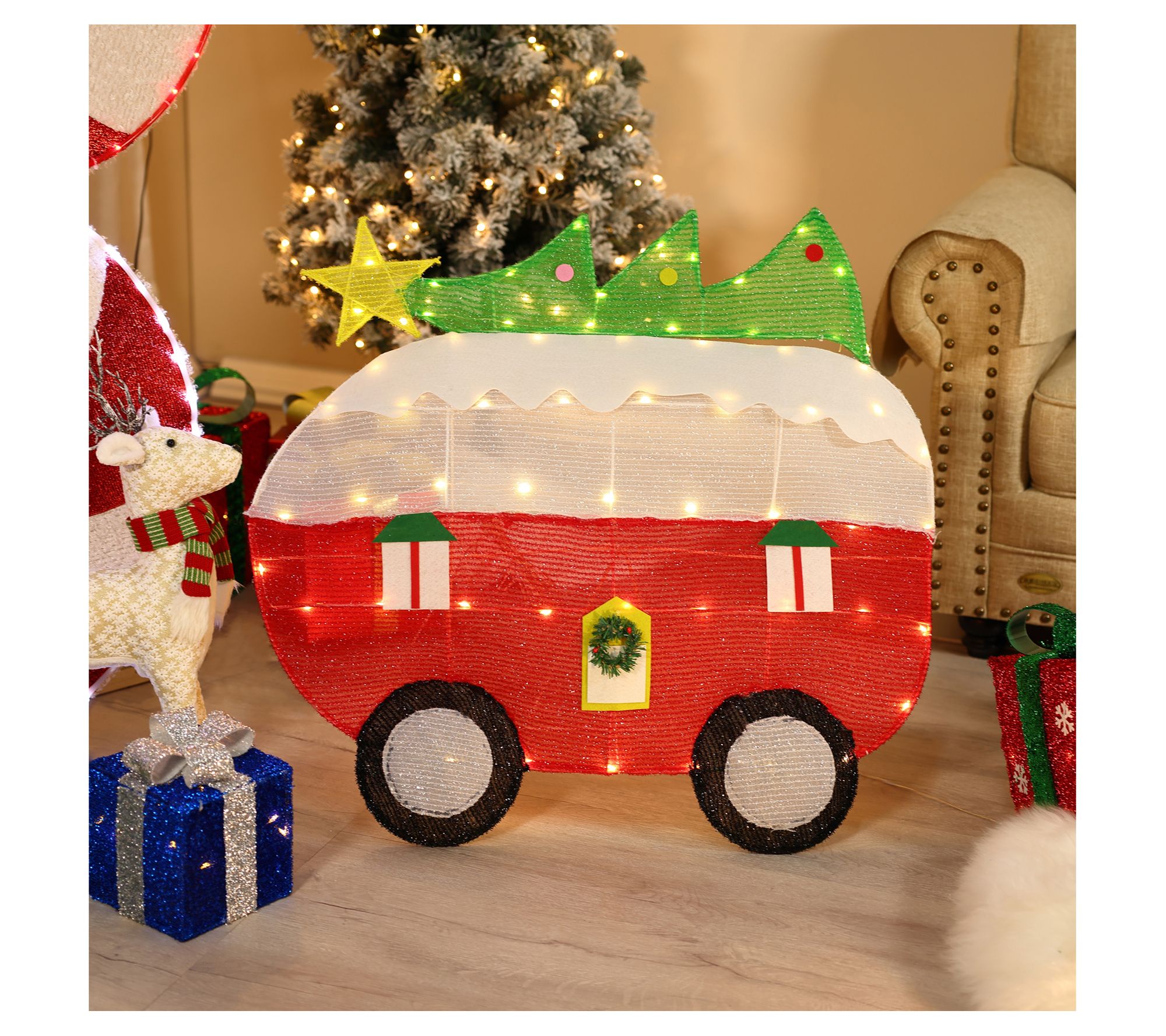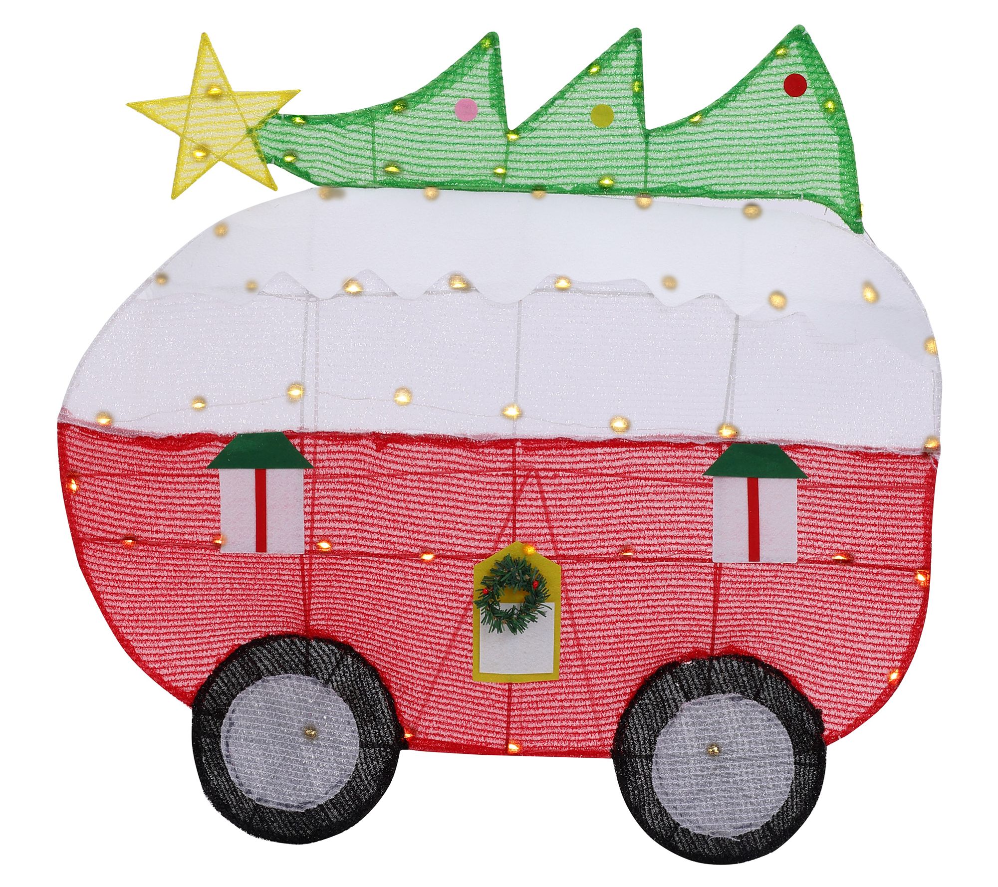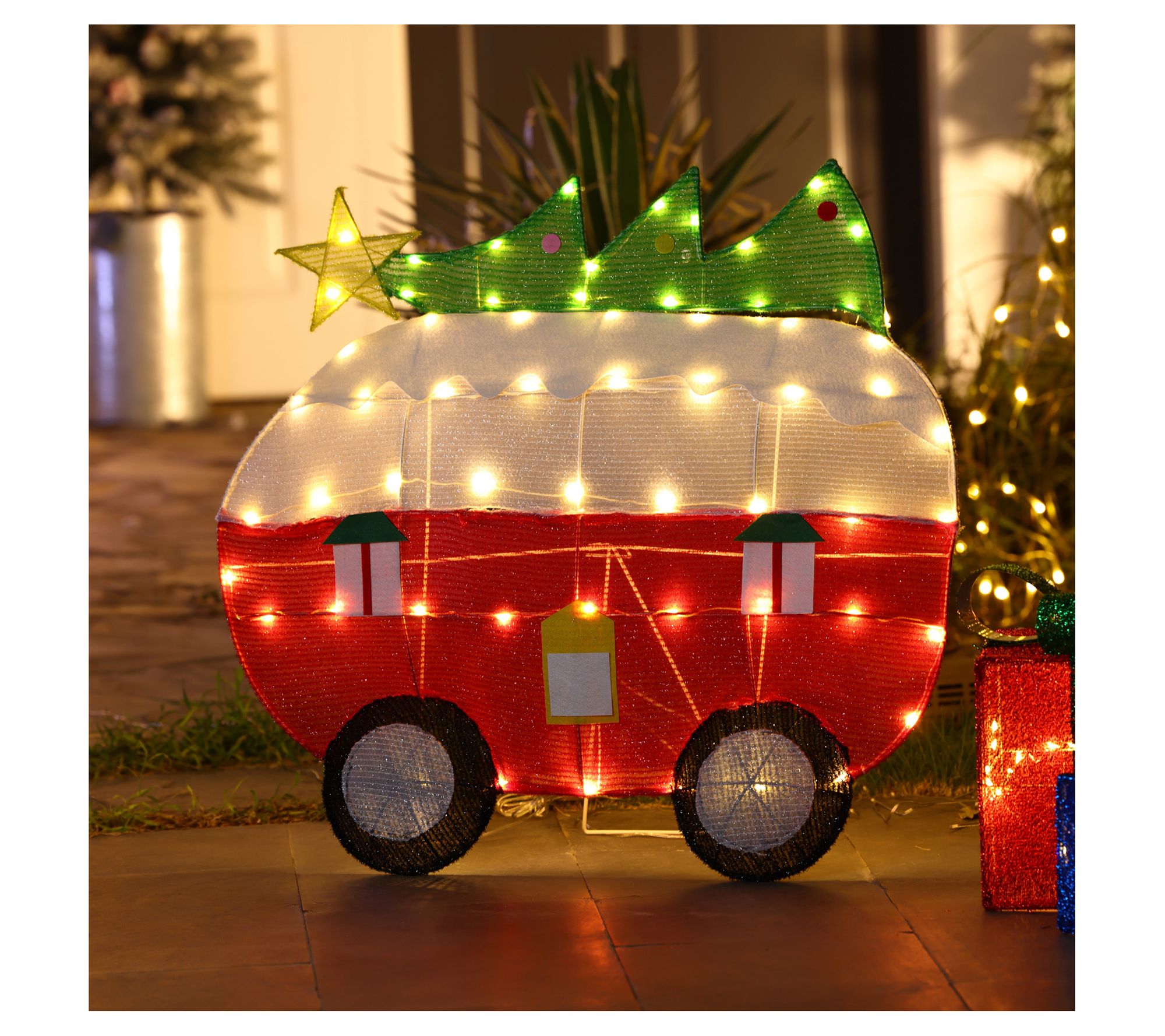 LuxenHome Camper with Tree Lighted Holiday Yard Decoration
