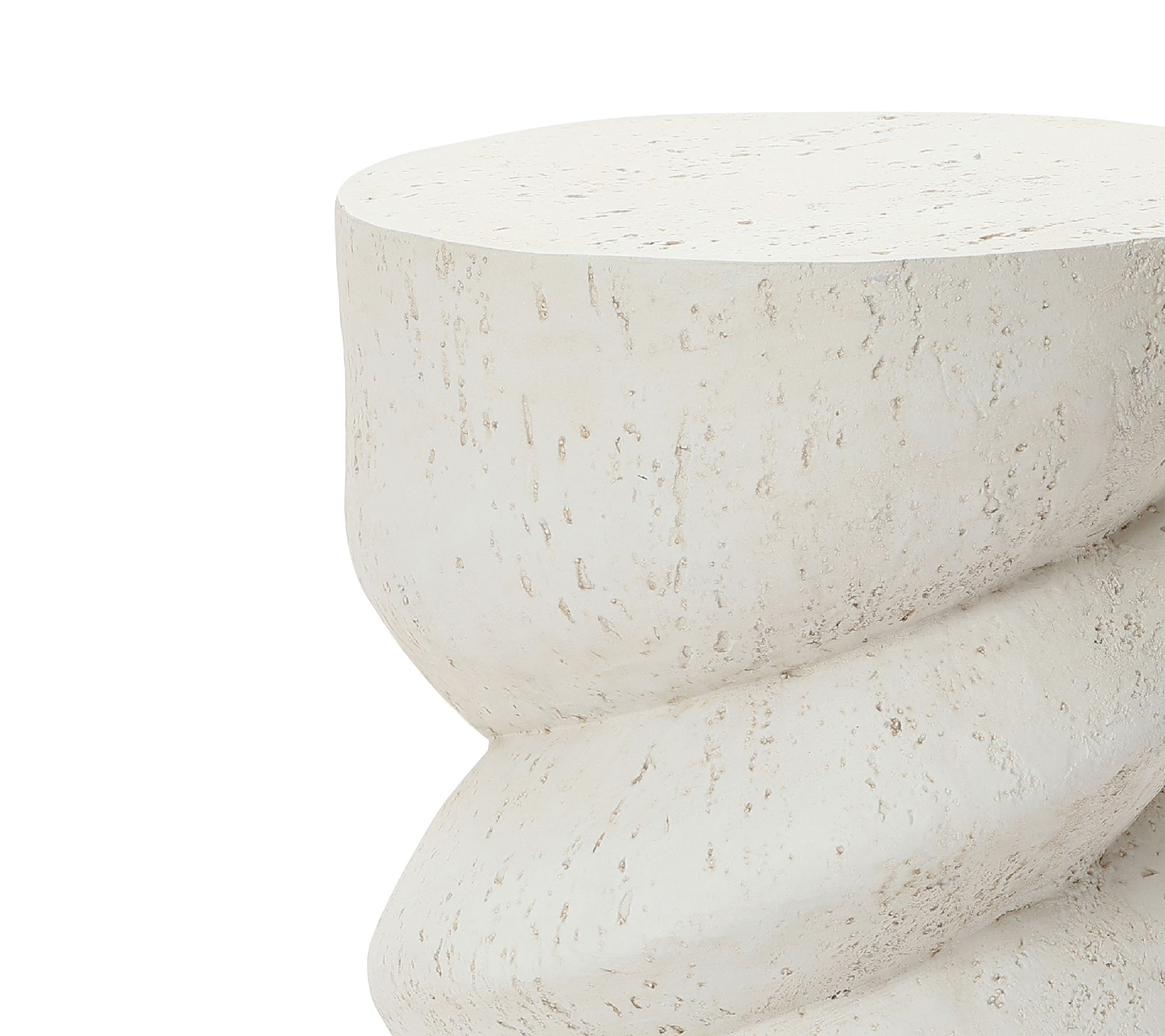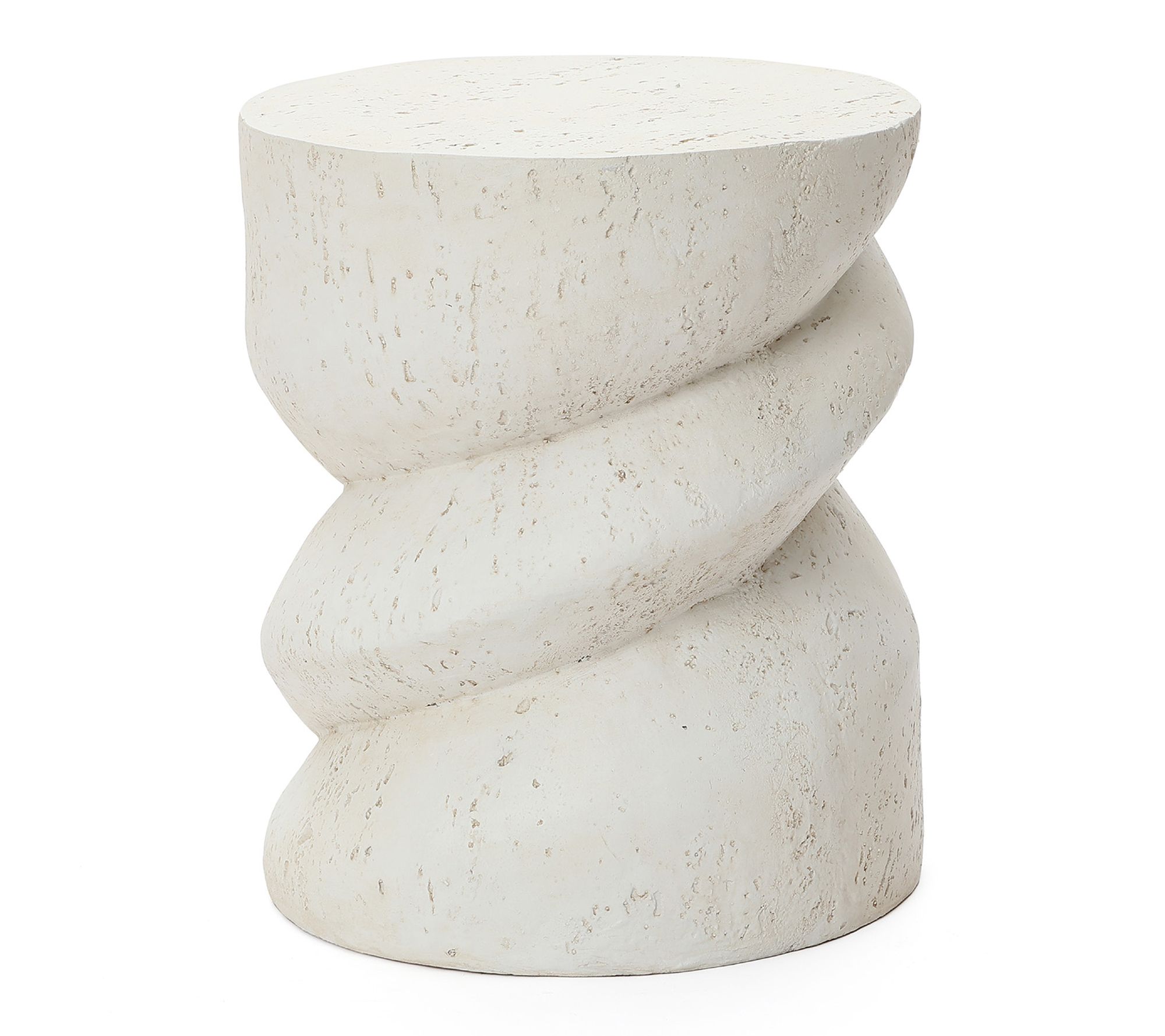 Add a sculptural statement to your patio, deck, or sunroom with this round spiral outdoor side table. The stone-inspired textured surface and off-white finish blend seamlessly with plants or decor, while a sturdy build serves drinks, snacks, or displays with confidence -- indoors or out. From LuxenHome.