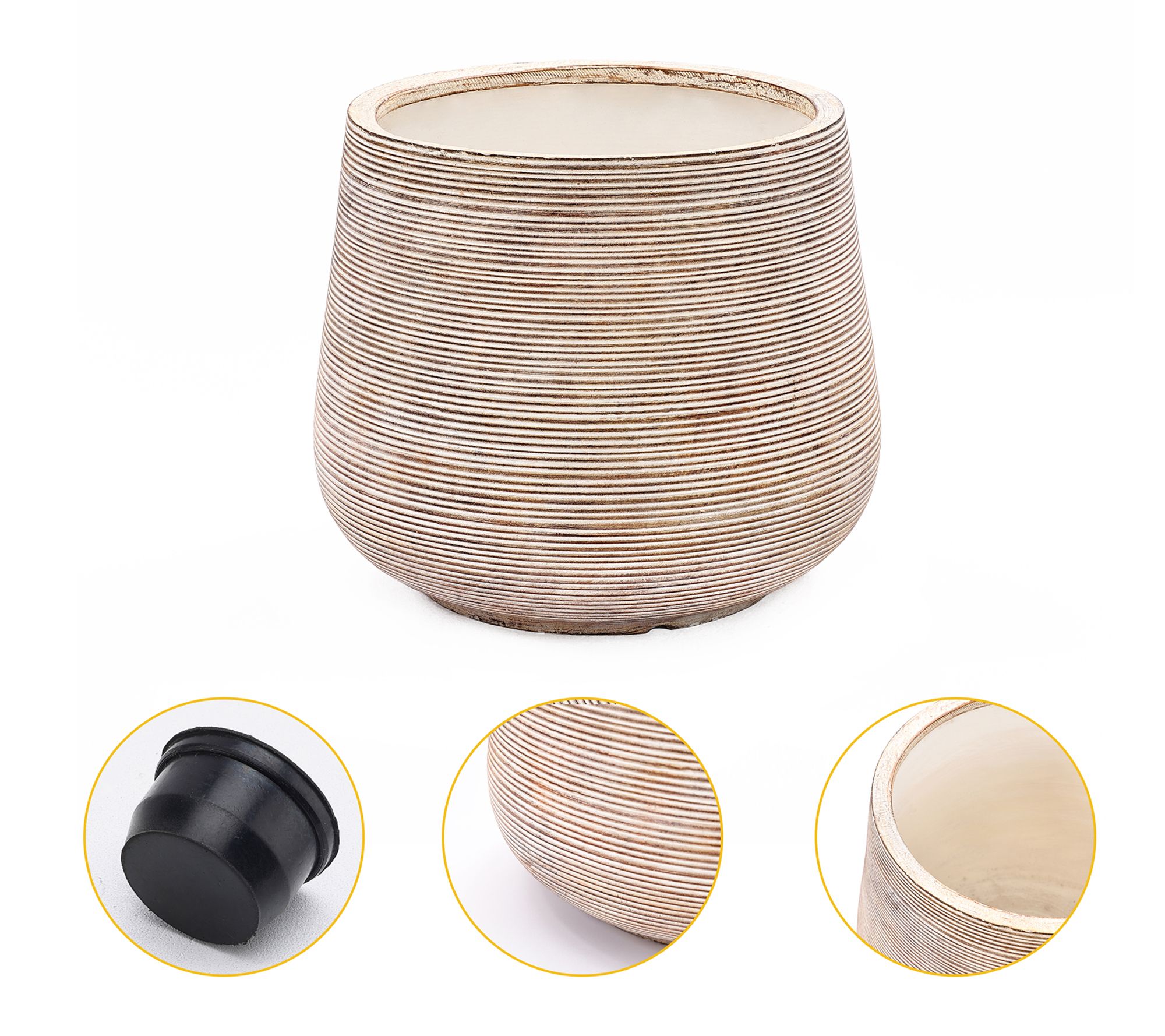 • Contemporary-style planter with distressed tan, white, and gray accents