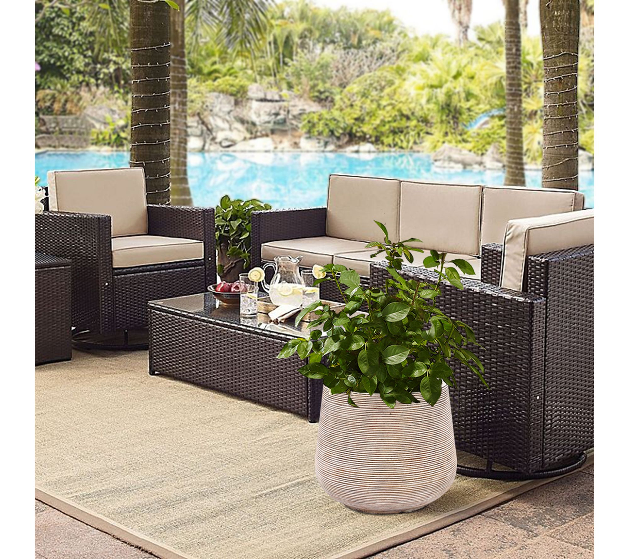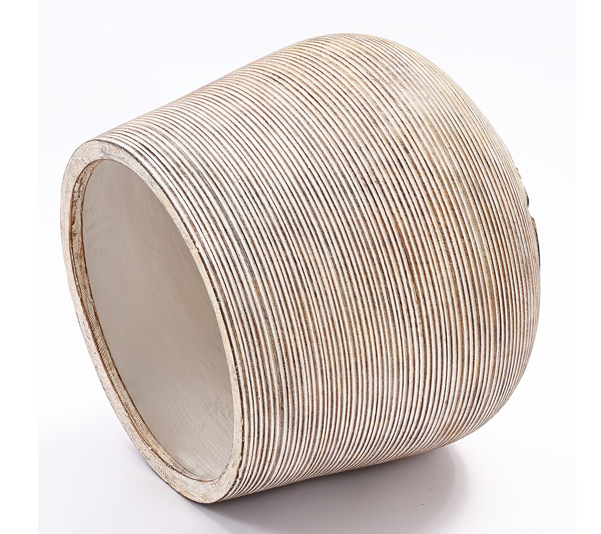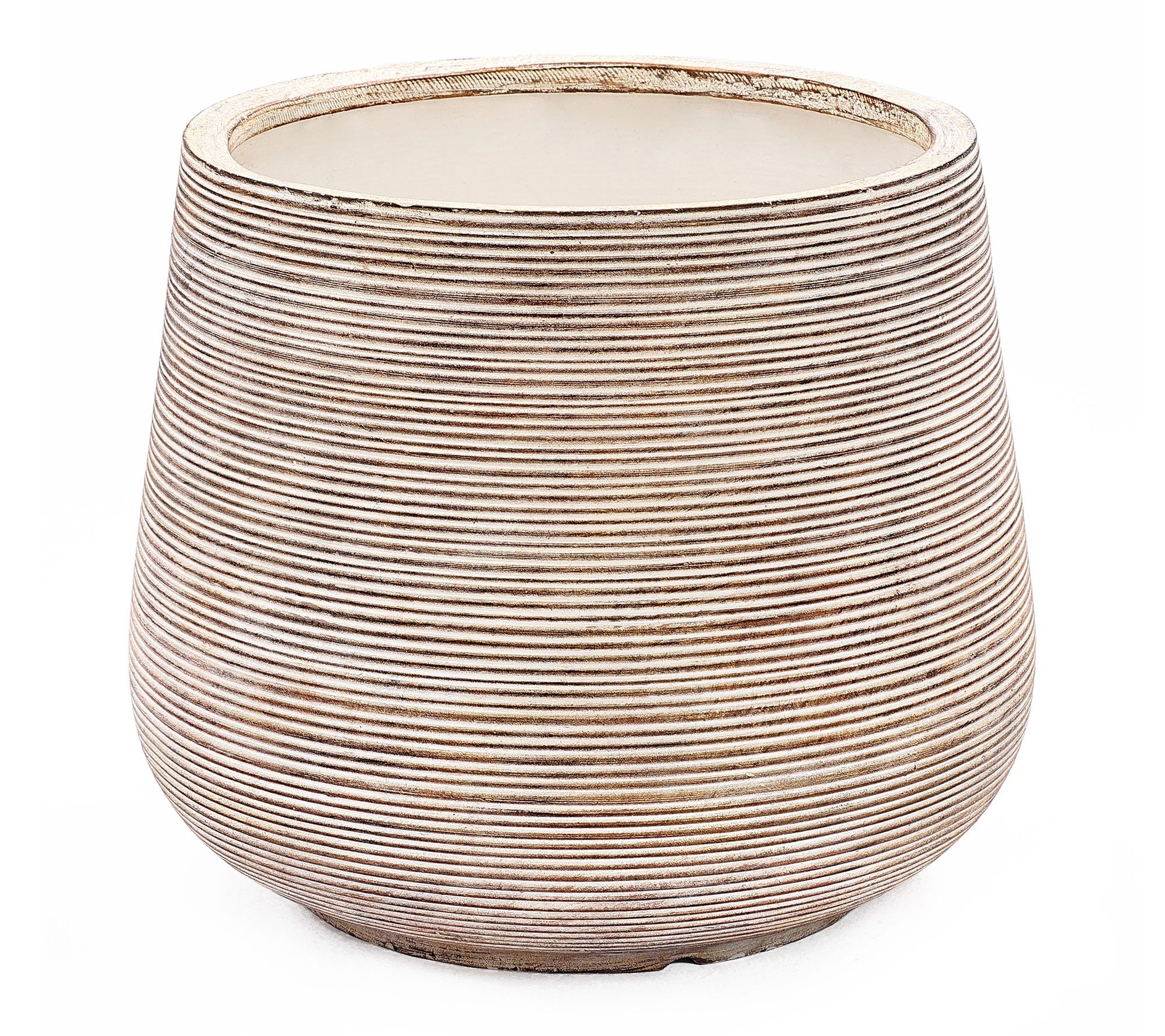 Bring effortless charm to your home or garden with this tapered round planter. Its distressed tan finish and ribbed design create an inviting backdrop for lush greenery and vibrant flowers, blending beautifully with both indoor and outdoor decor. Perfect for creating fresh displays on porches, patios, or in living spaces. From LuxenHome.