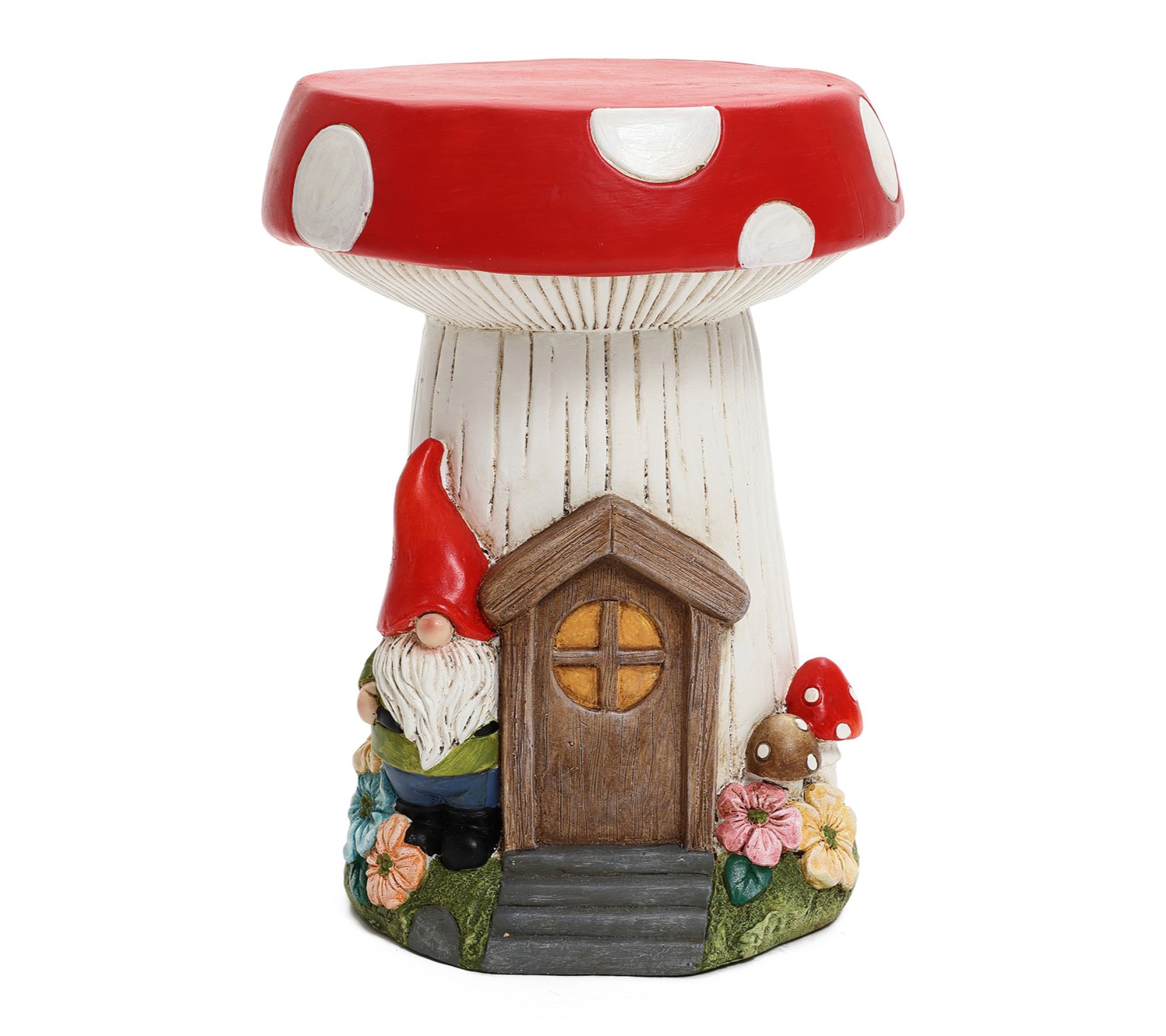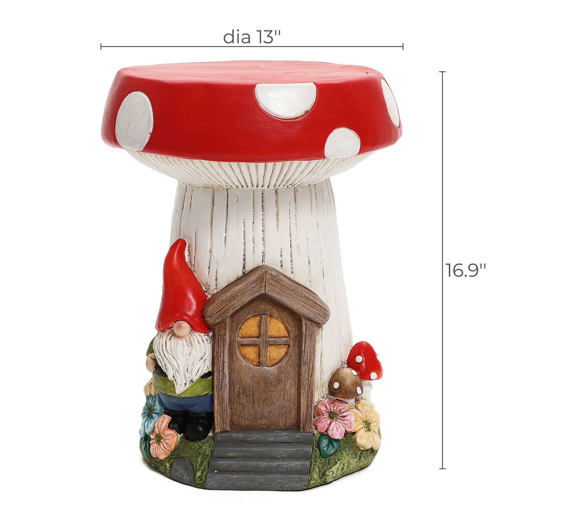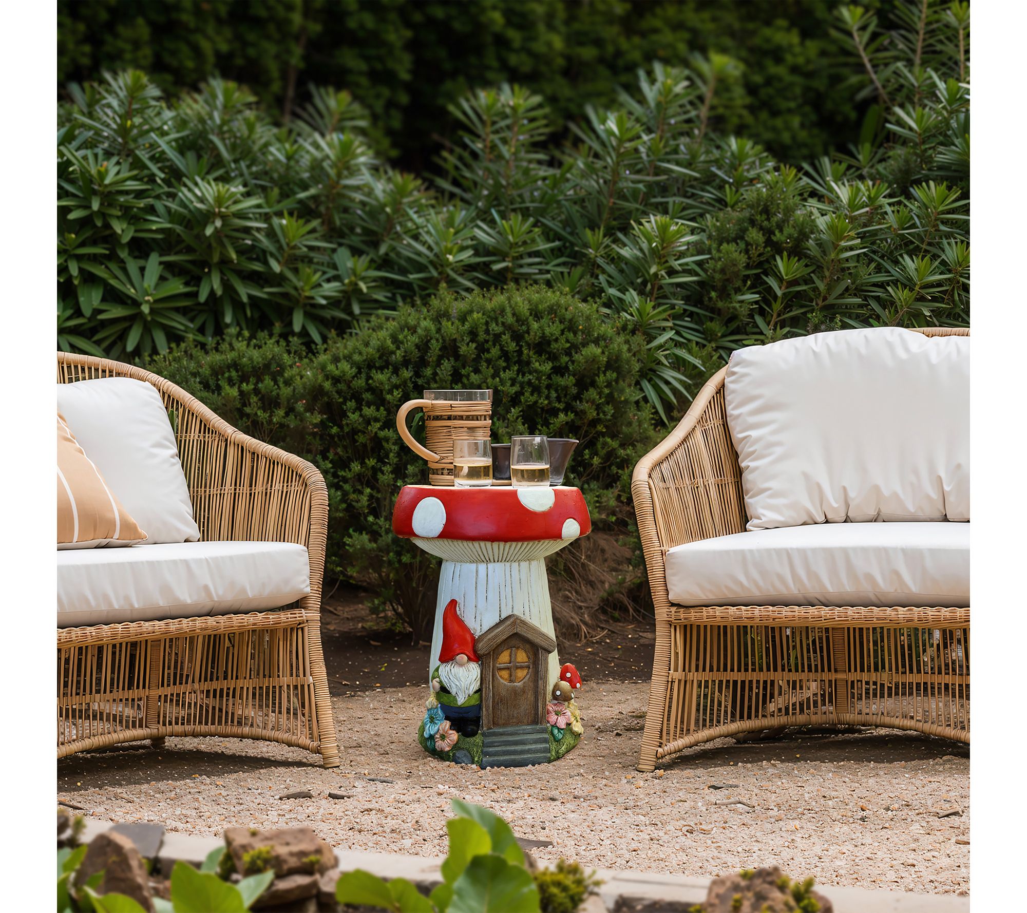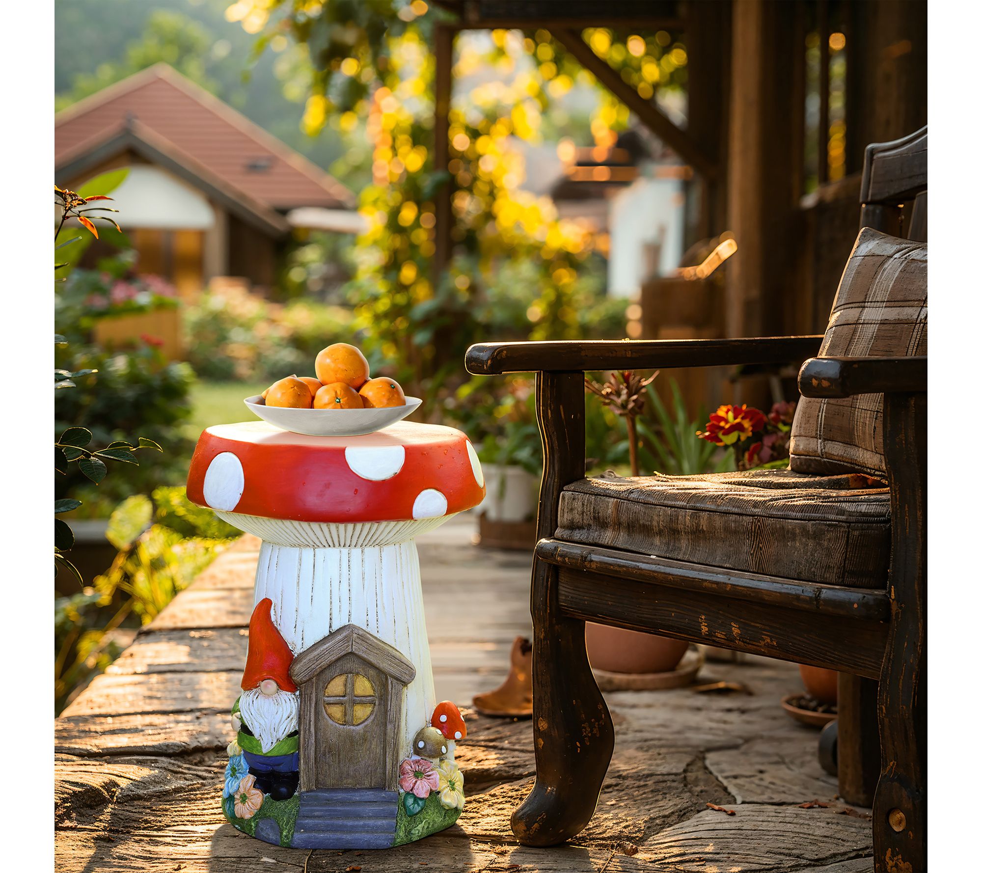 Bring a storybook scene to life on your patio or sunroom with this gnome mushroom outdoor accent table. Designed to evoke smiles, its playful sculpted details invite a sense of enchantment, while the sturdy construction provides a handy spot for your morning coffee, planter, or a whimsical welcome by your front door. From LuxenHome.