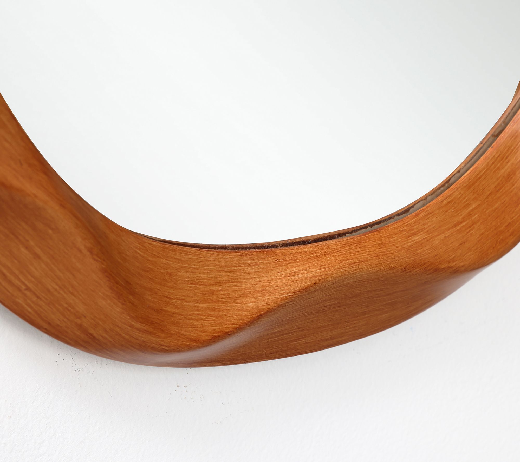 A modern wall mirror can transform any room with its intriguing shape and contemporary golden brown frame, creating a functional piece that doubles as wall art. The crisp glass welcomes in natural light, visually expanding your space whether placed in an entryway, bedroom, or living room. From LuxenHome.