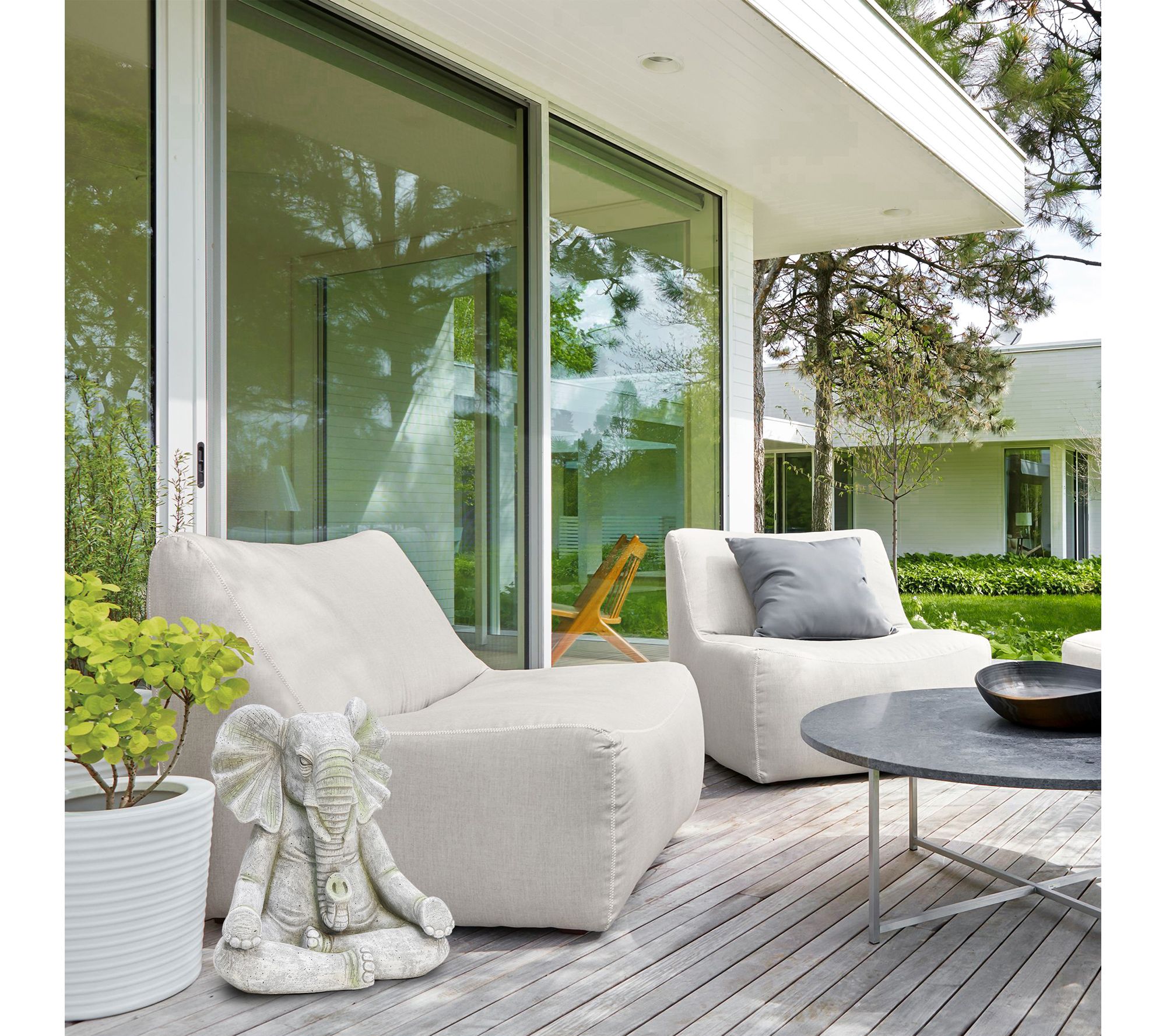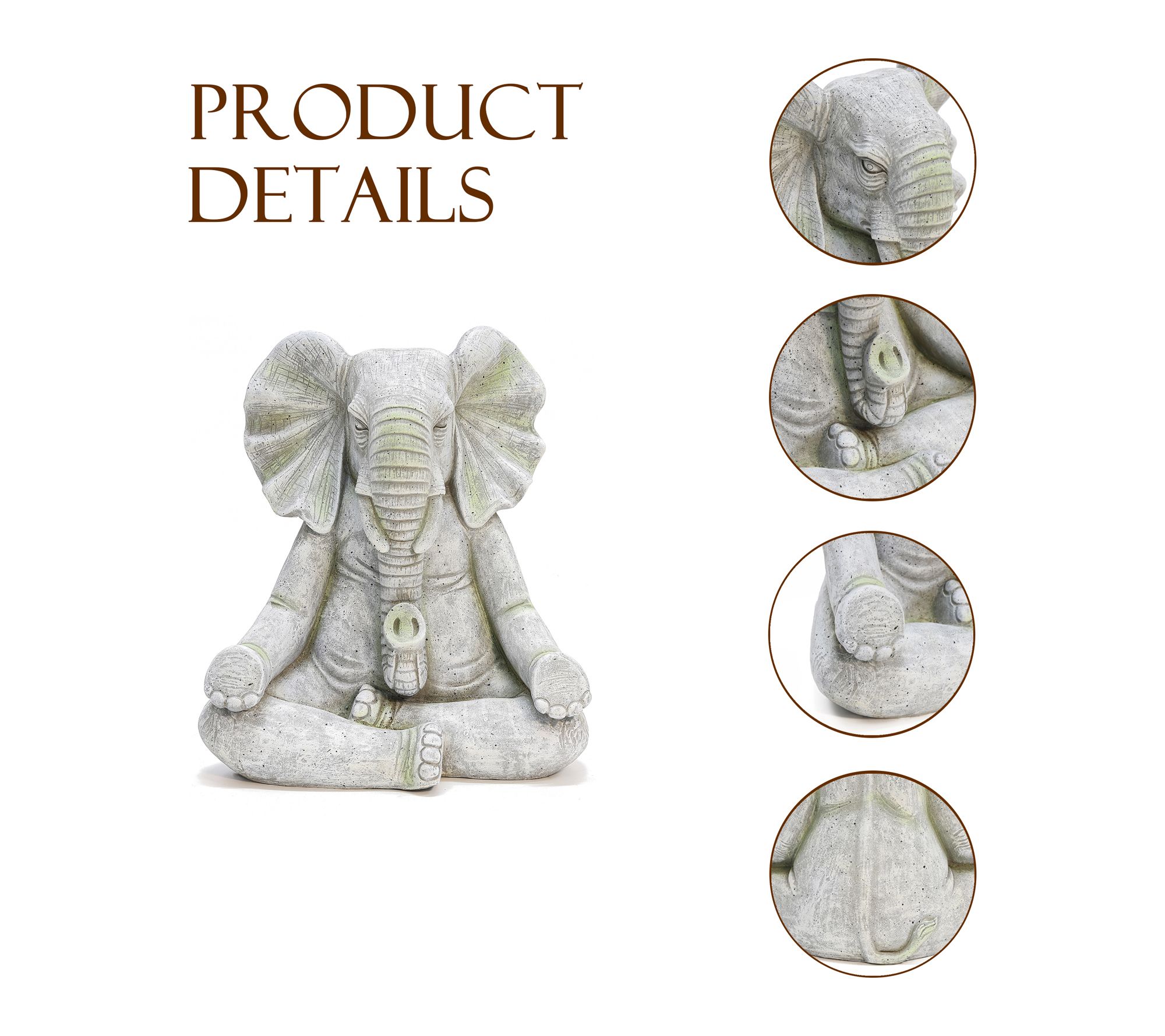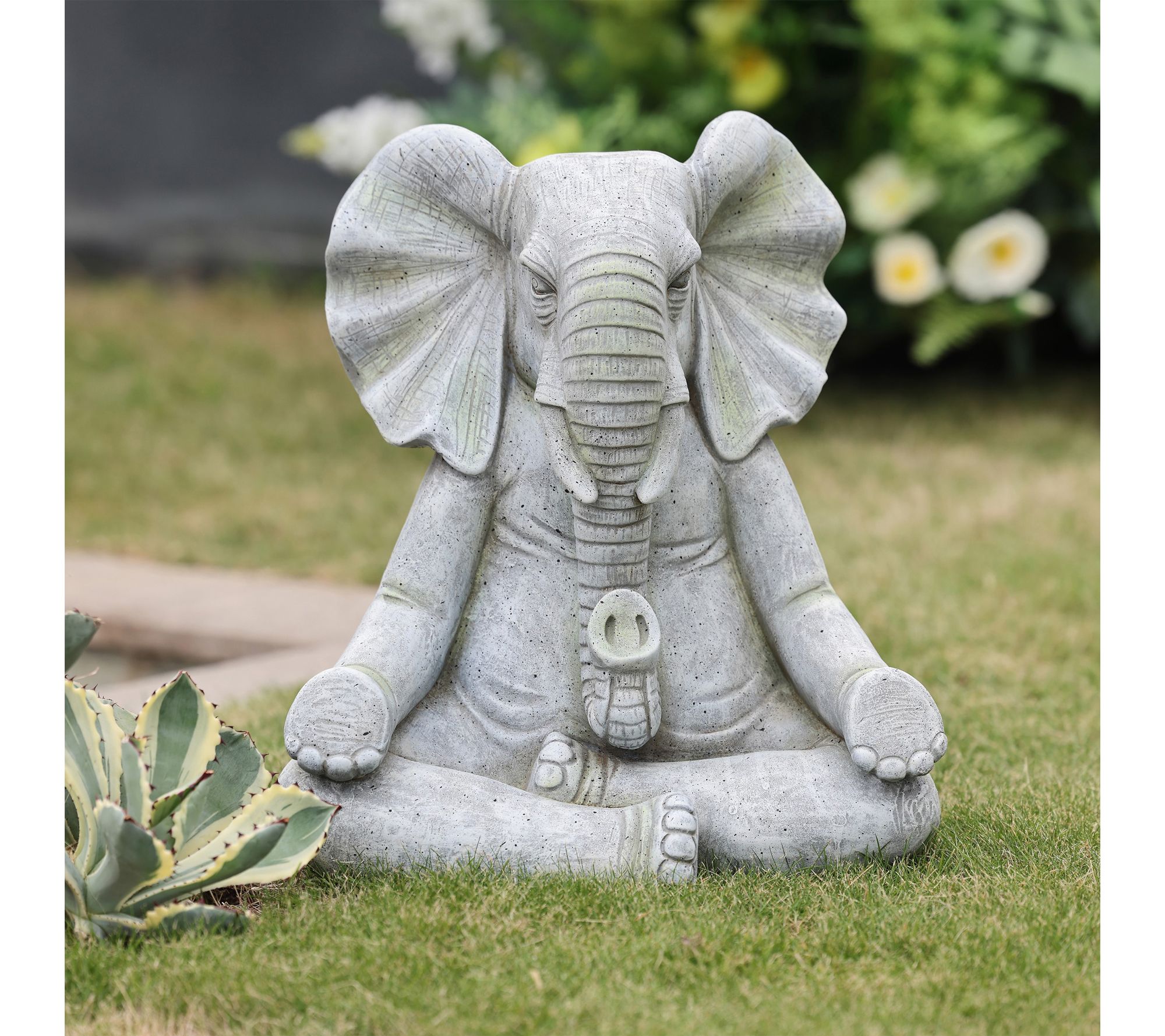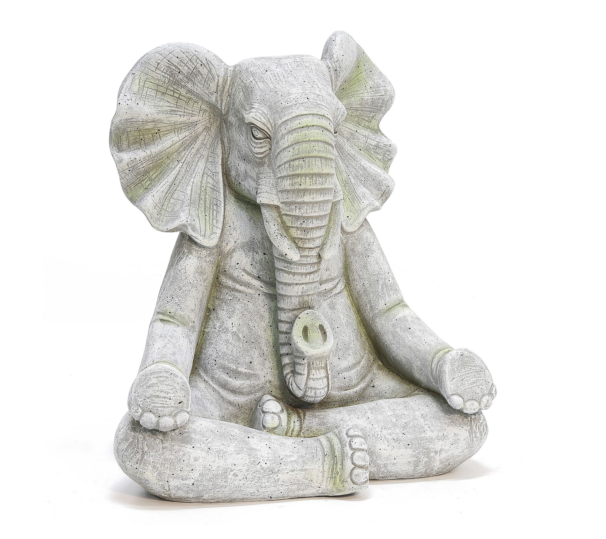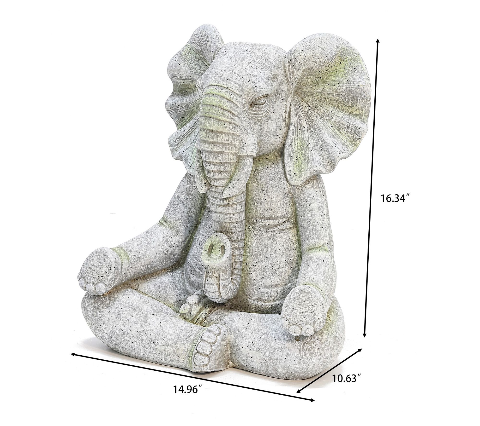 Bring a peaceful ambiance to your outdoor space with this meditating elephant statue. Crafted from magnesium oxide and finished in a soft gray with subtle green highlights, this lawn ornament creates a calming focal point whether placed on a patio, deck, or tucked among garden greenery. Let this sculpture invite serenity and charm into your landscape. From LuxenHome.