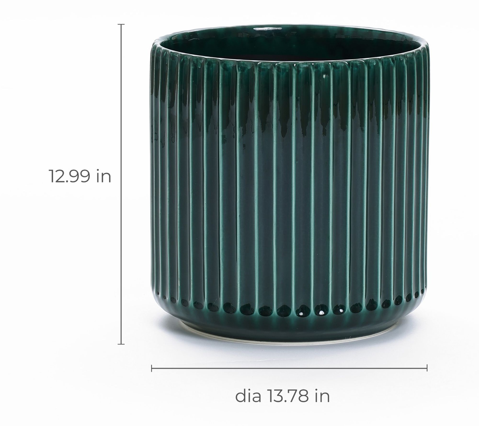 LuxenHome Jade Green Ribbed 13.8-Inch Round Ceramic Planter