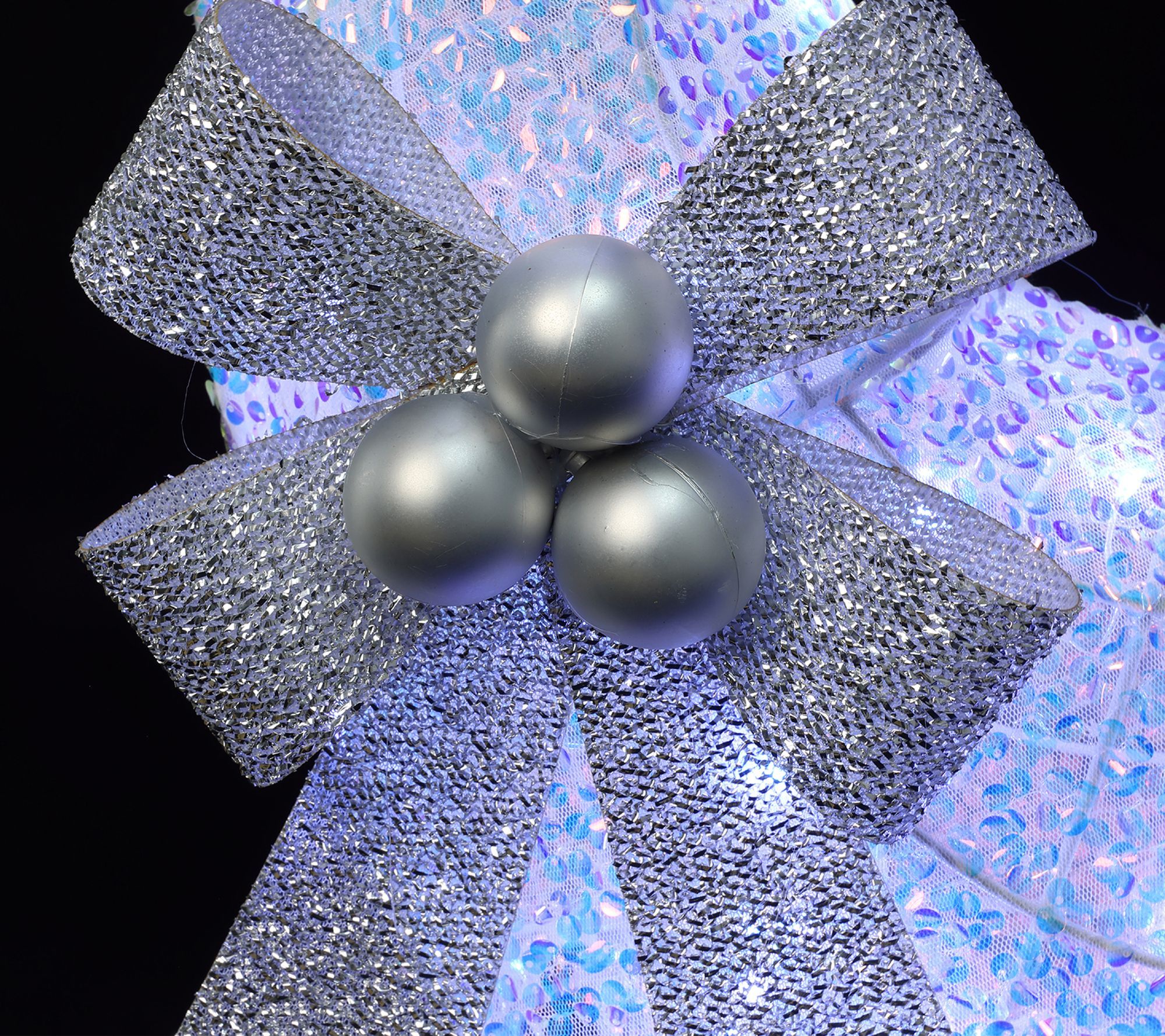 Silver bows and shimmering finish