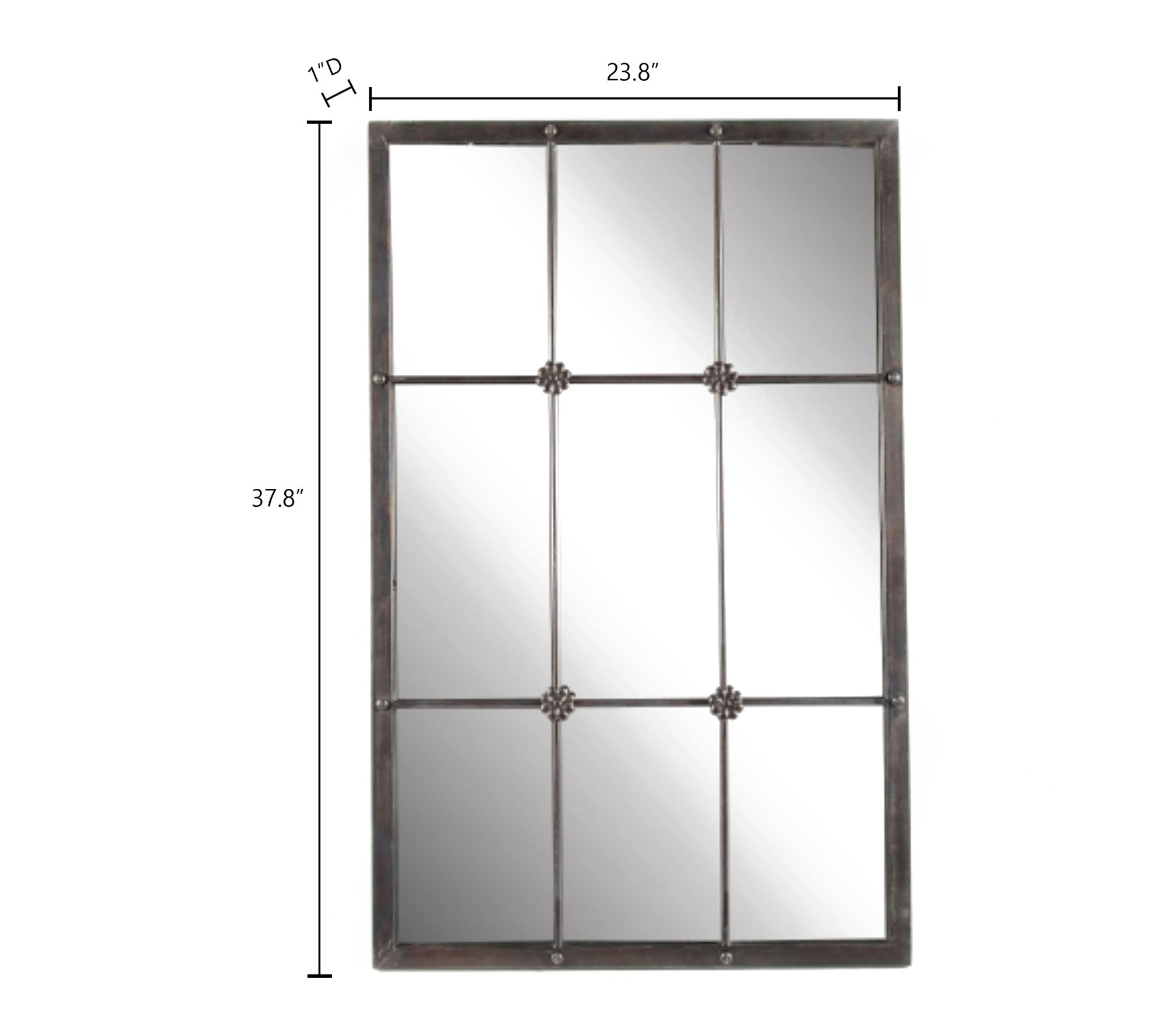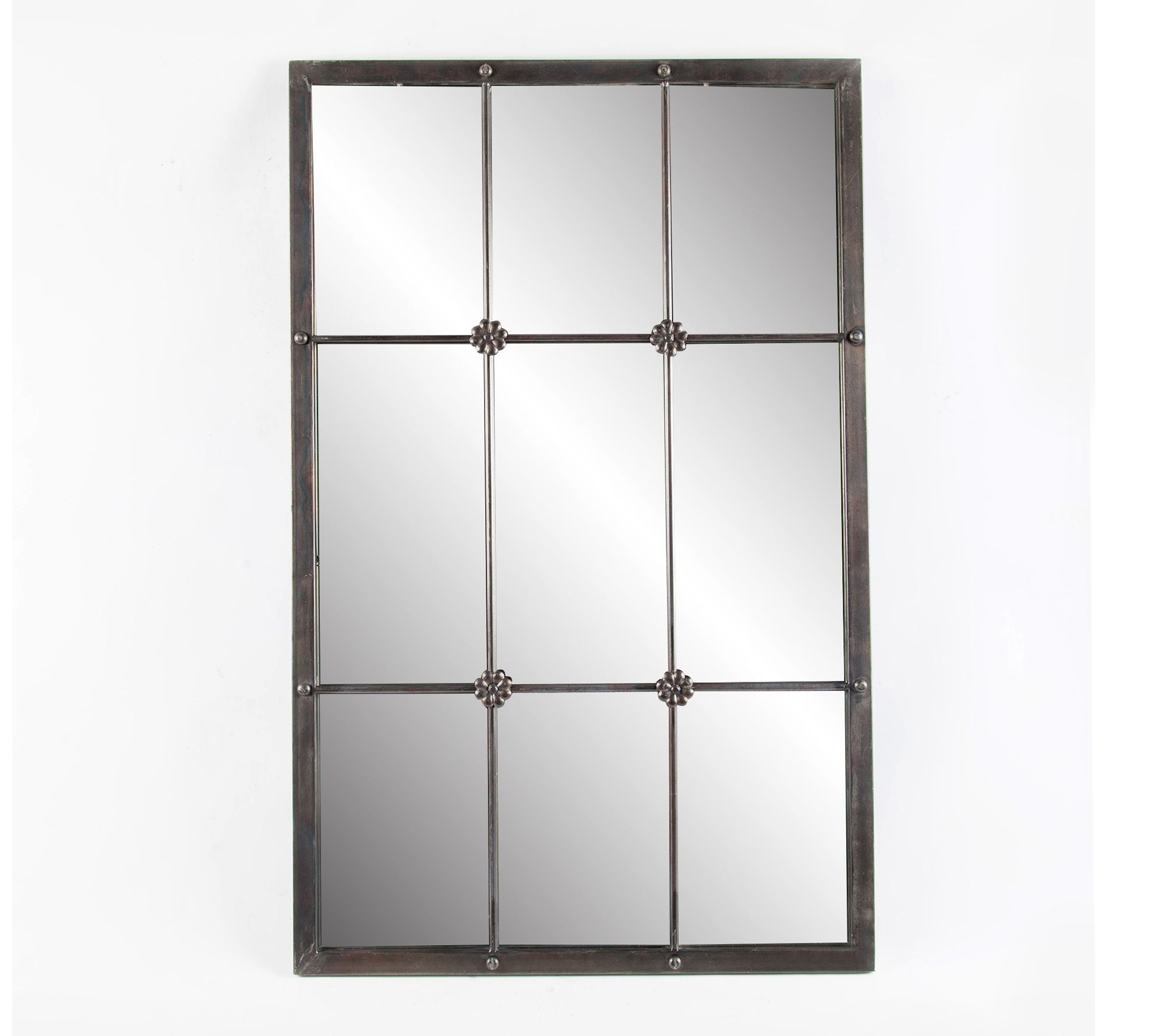 • Metal frame in rustic brown finish; glass mirror with nine windowpane sections