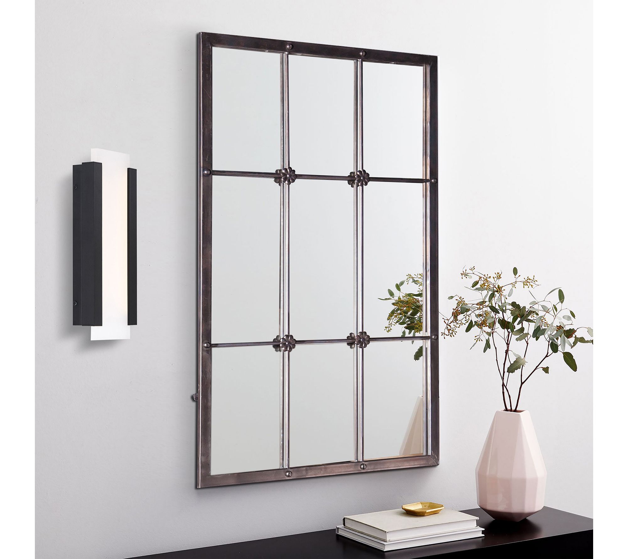 Welcome a warm, light-filled touch to your favorite space with this elegant windowpane wall mirror. With a metal frame in a rustic brown finish and nine pane sections set behind a mirrored glass, this decorative accent beautifully reflects light and enhances the feeling of openness. Hang it vertically in your entryway or horizontally over a console to create a welcoming focal point. From LuxenHome.