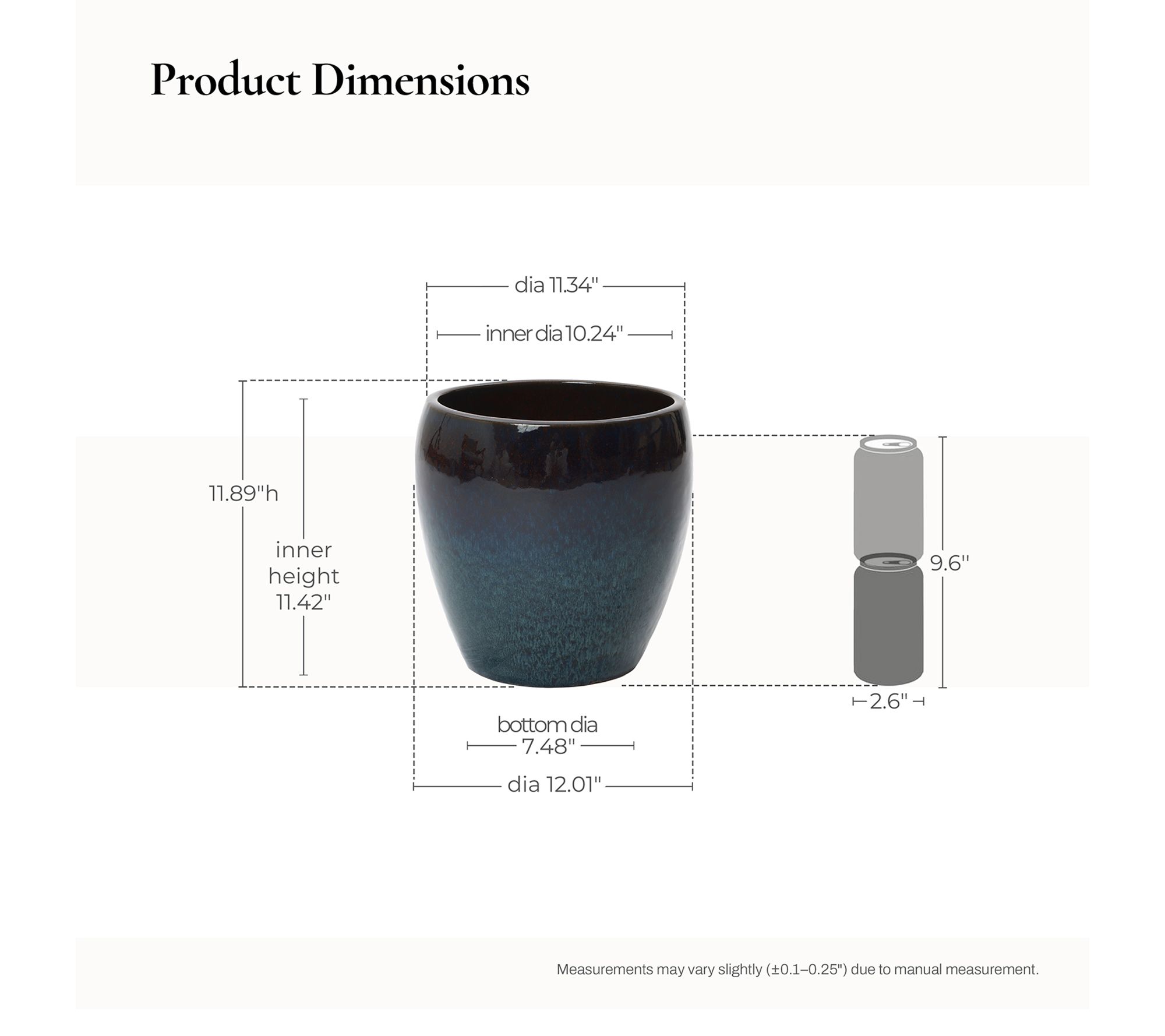 LuxenHome Midnight Flame Glazed Ceramic Planter, 12" Round