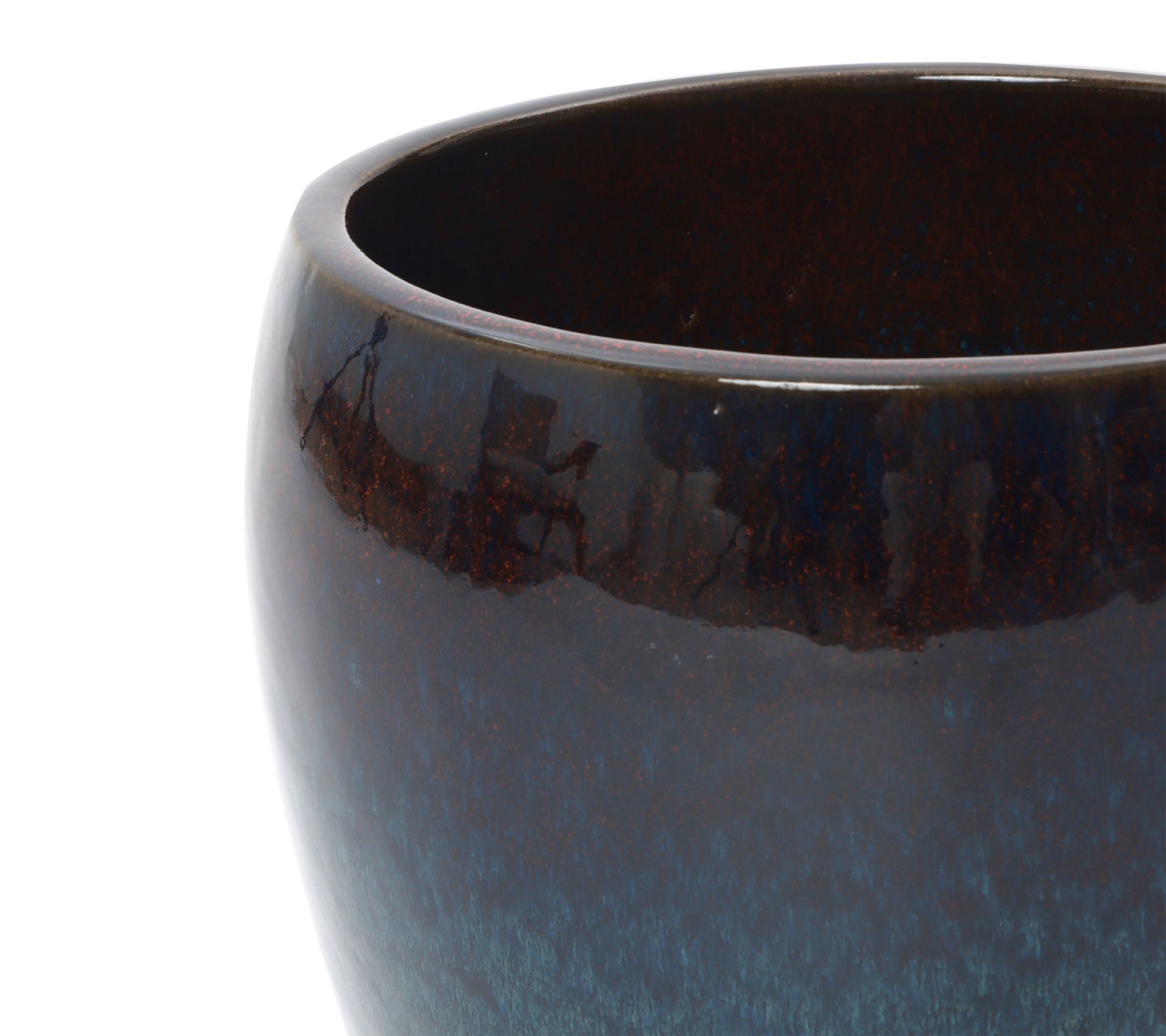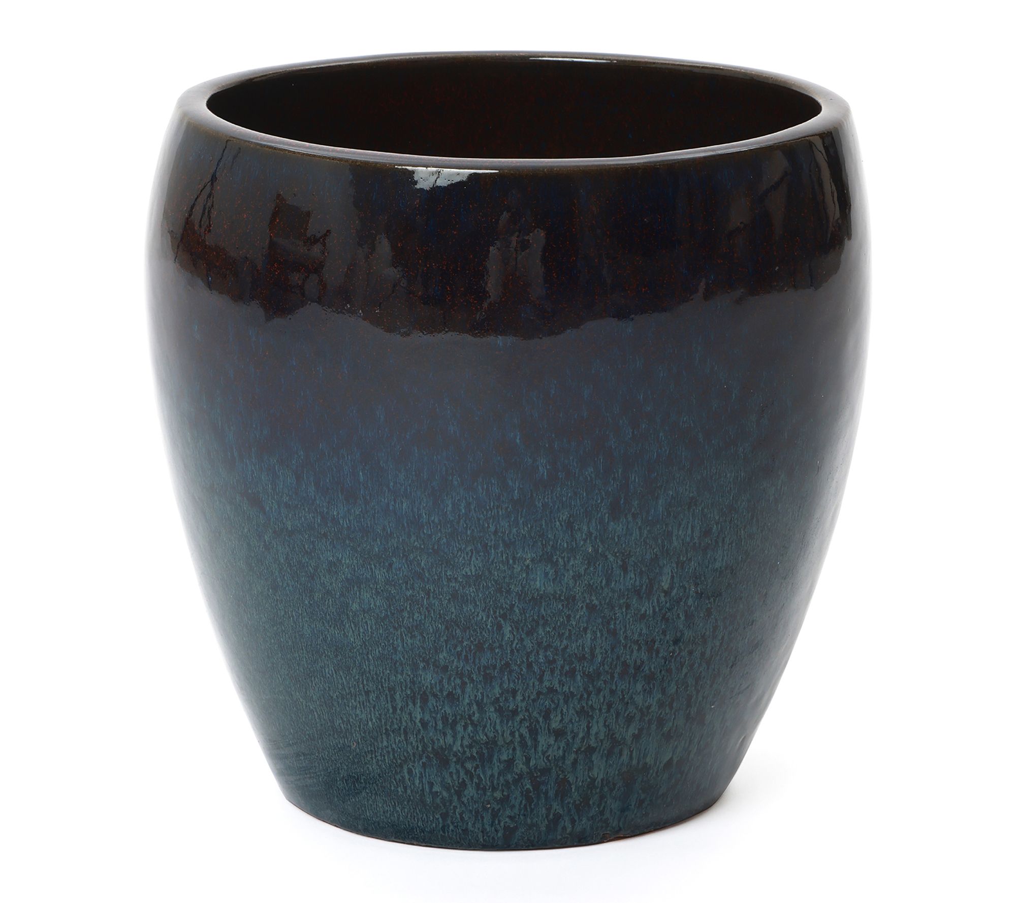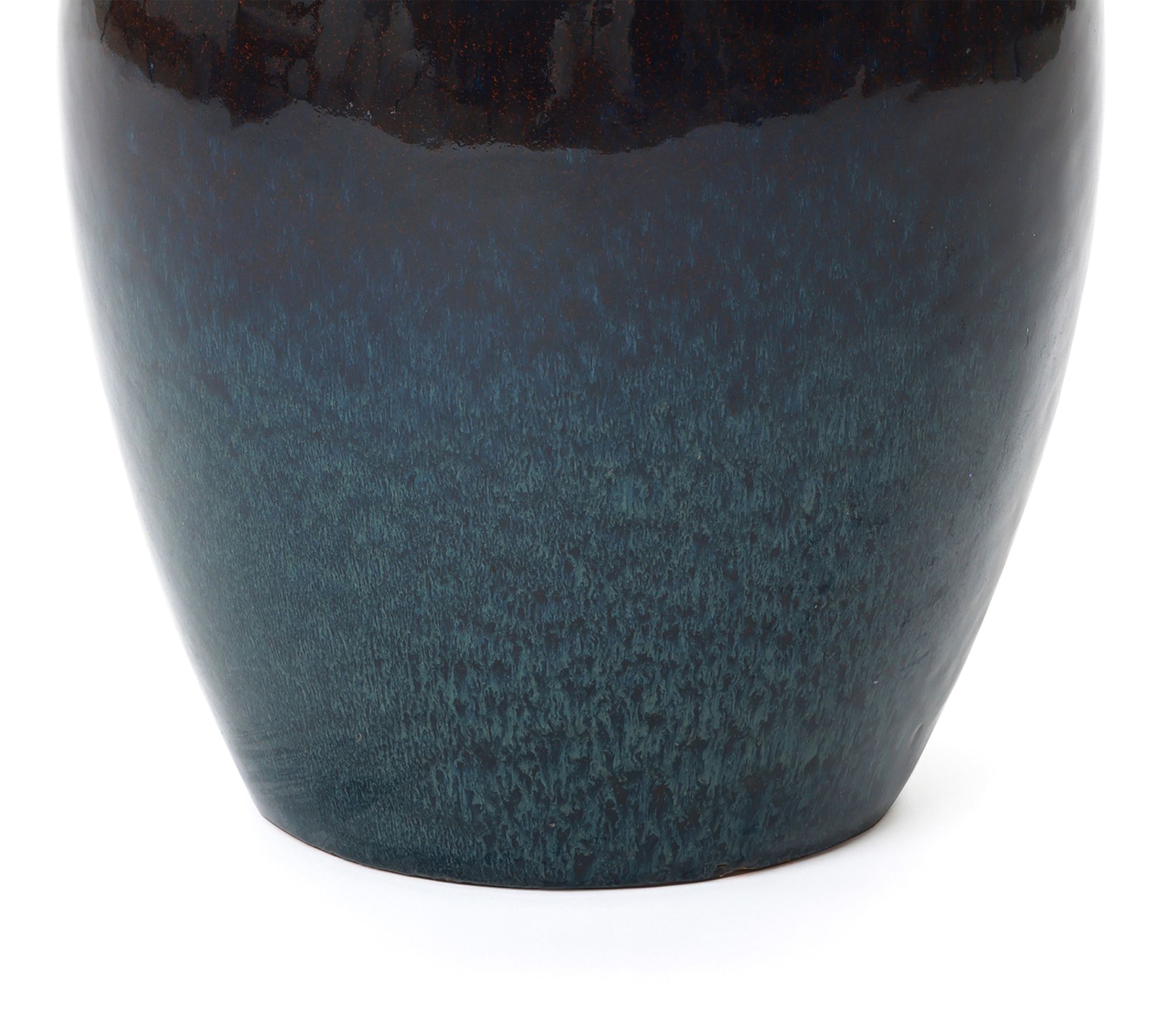 Infuse your home or garden with sculptural elegance that stands out, courtesy of this glazed ceramic planter. Designed with a dramatic Midnight Flame gradient featuring deep blue and dark brown tones, it effortlessly creates a striking focal point for patios, balconies, or living rooms. A smooth glazed finish and drainage hole with removable plug support healthy plant roots, blending style and function for your decor. From LuxenHome.