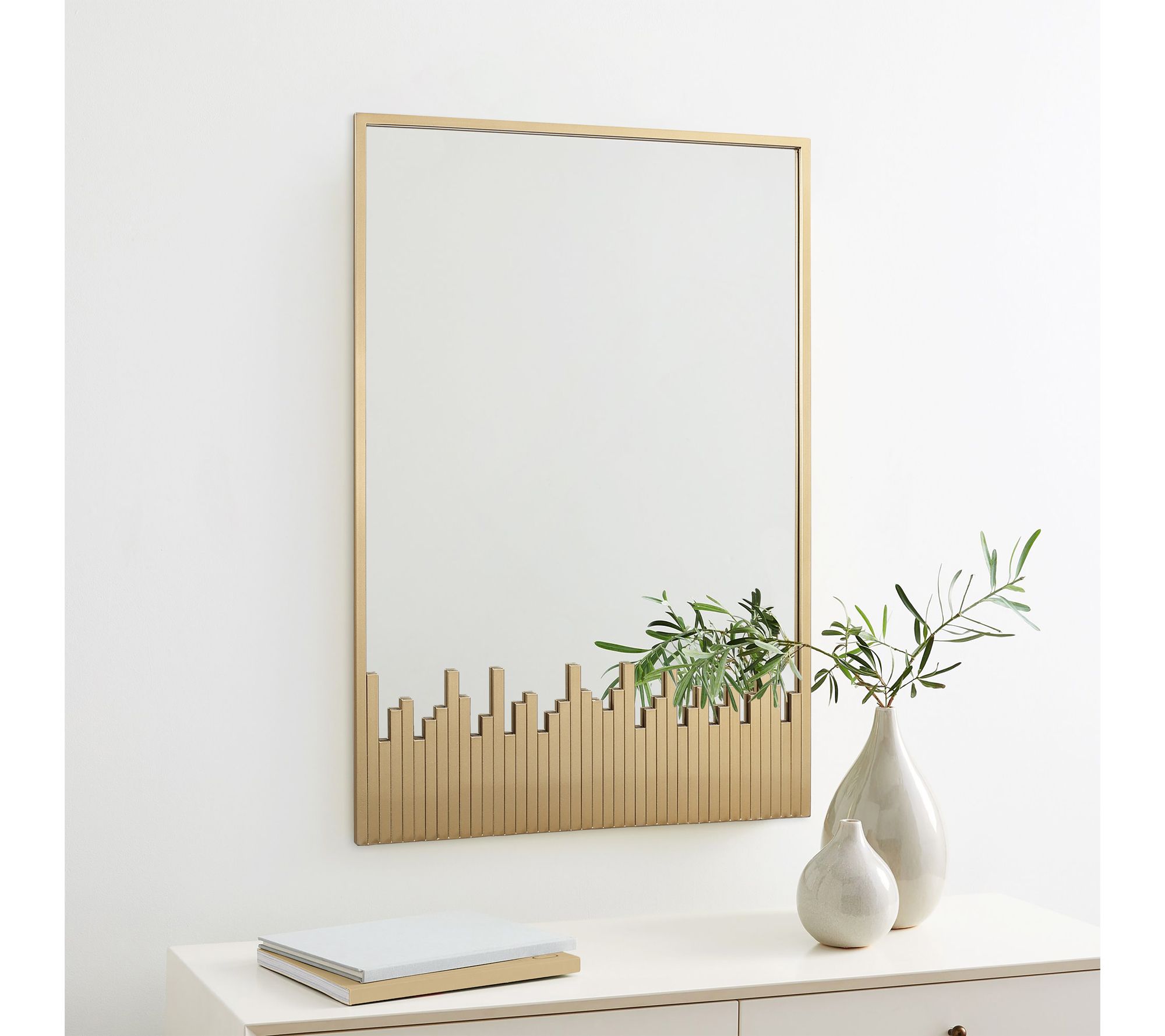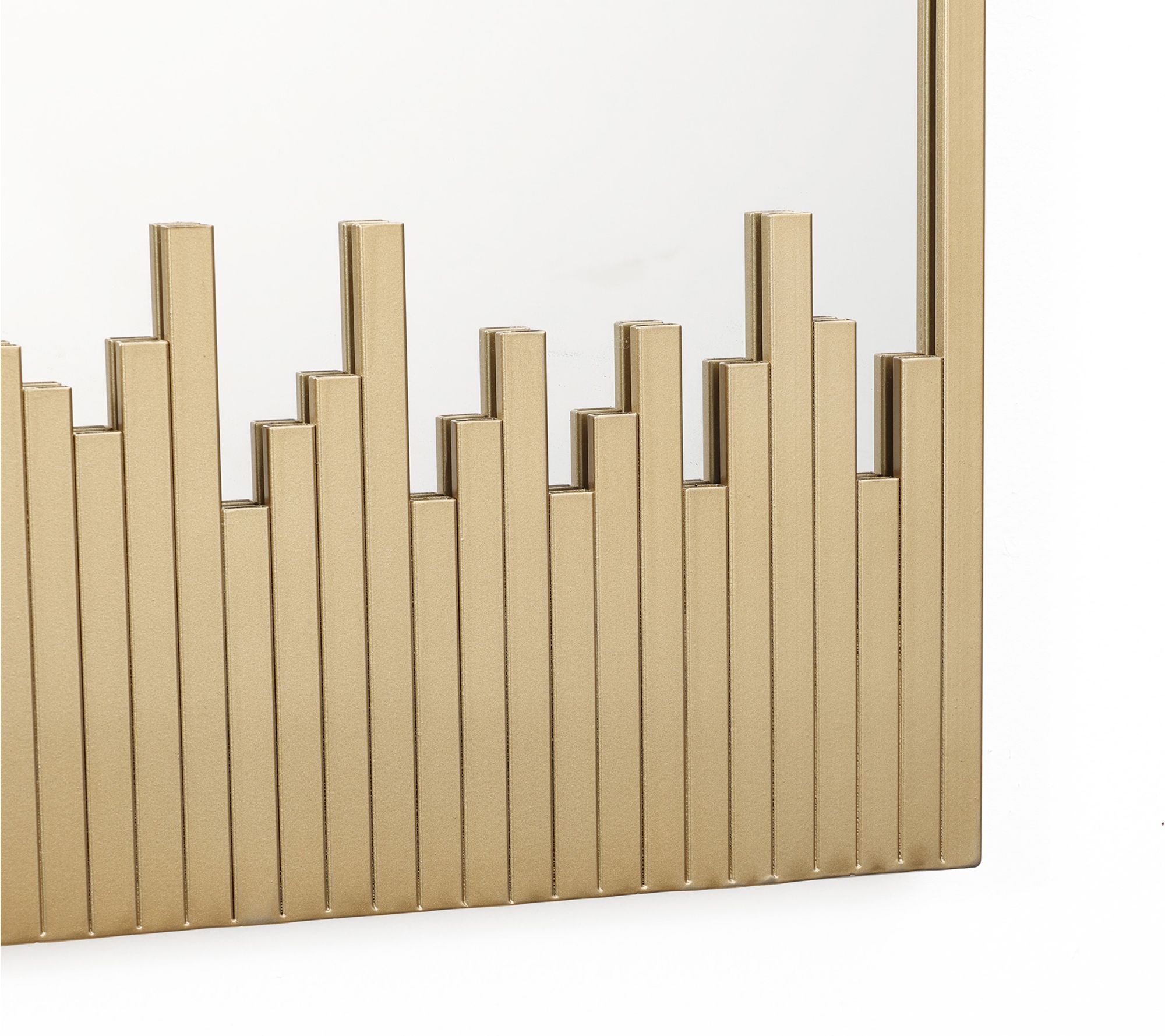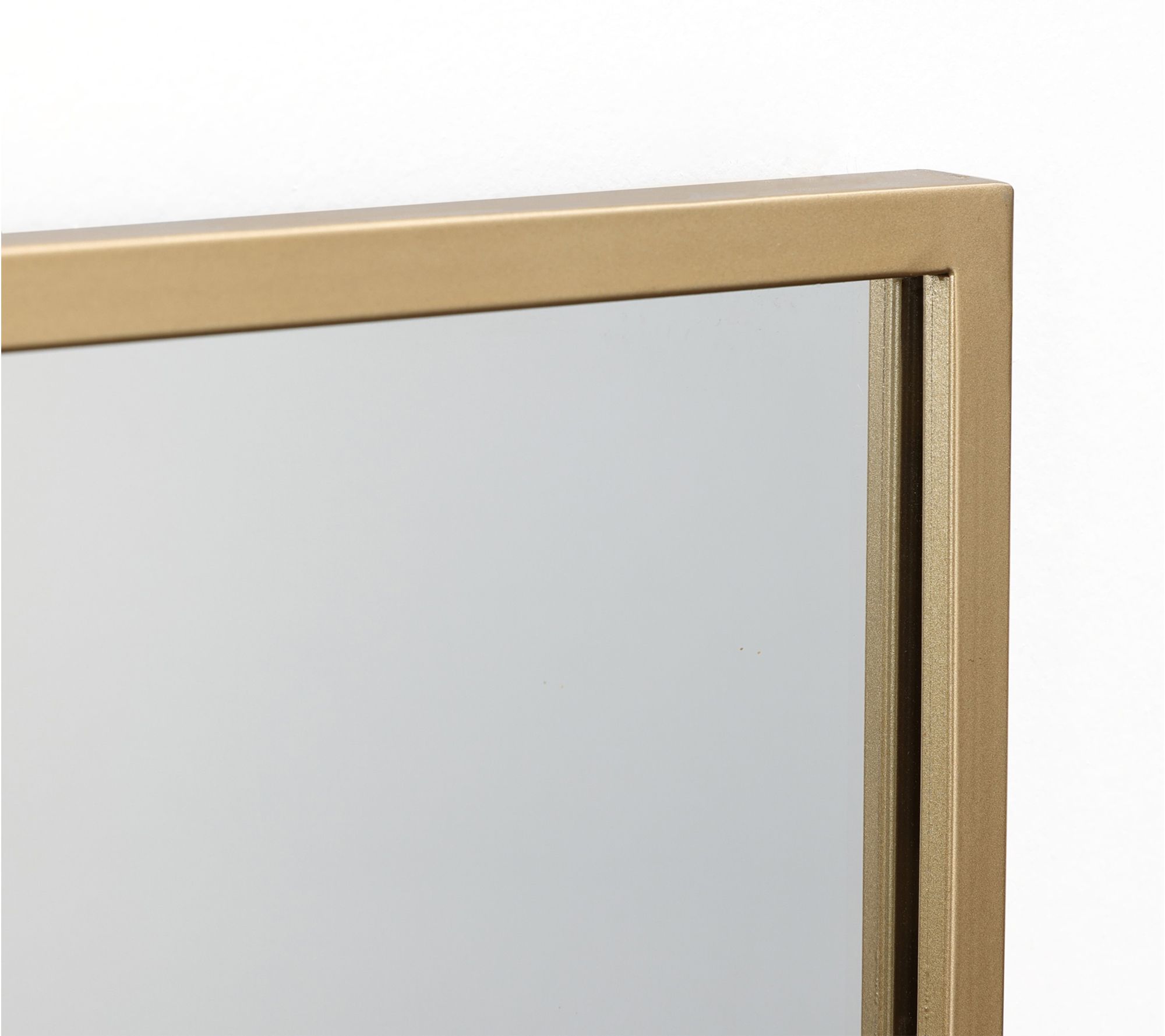 A sleek wall mirror with a champagne gold finish brings a touch of elegance and purpose to any space. The architectural-inspired lines complement modern decor, creating an inviting atmosphere whether it's placed in an entryway, above a console table, or brightening up a hallway. From LuxenHome.