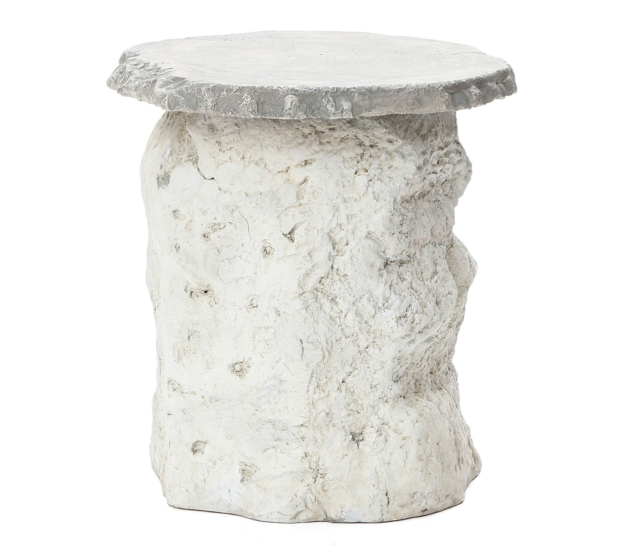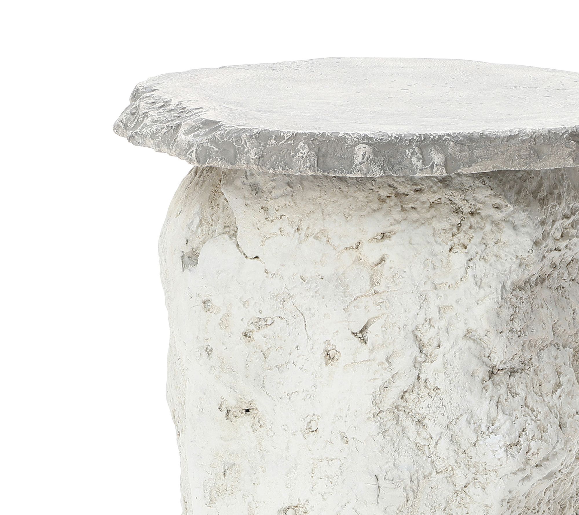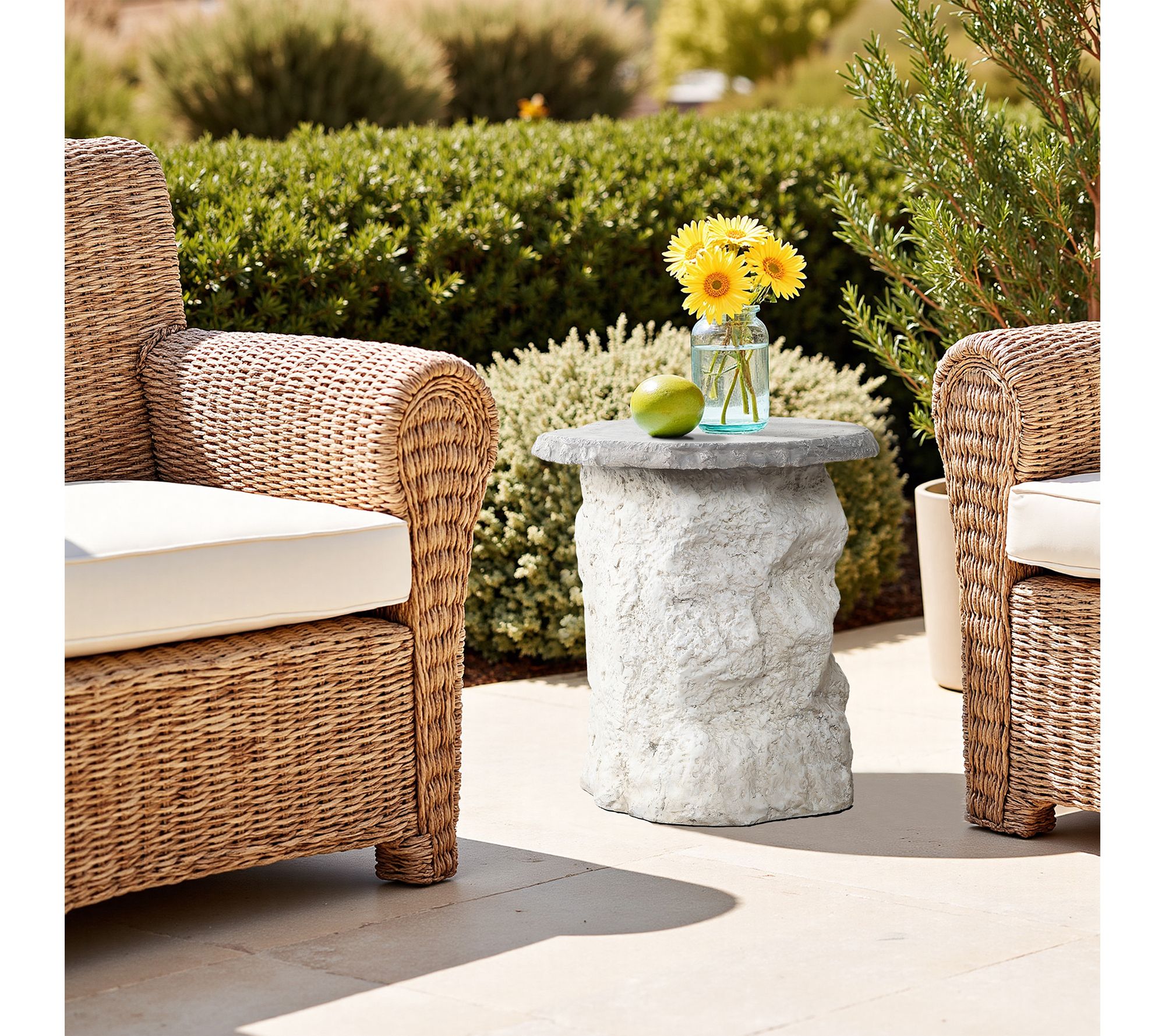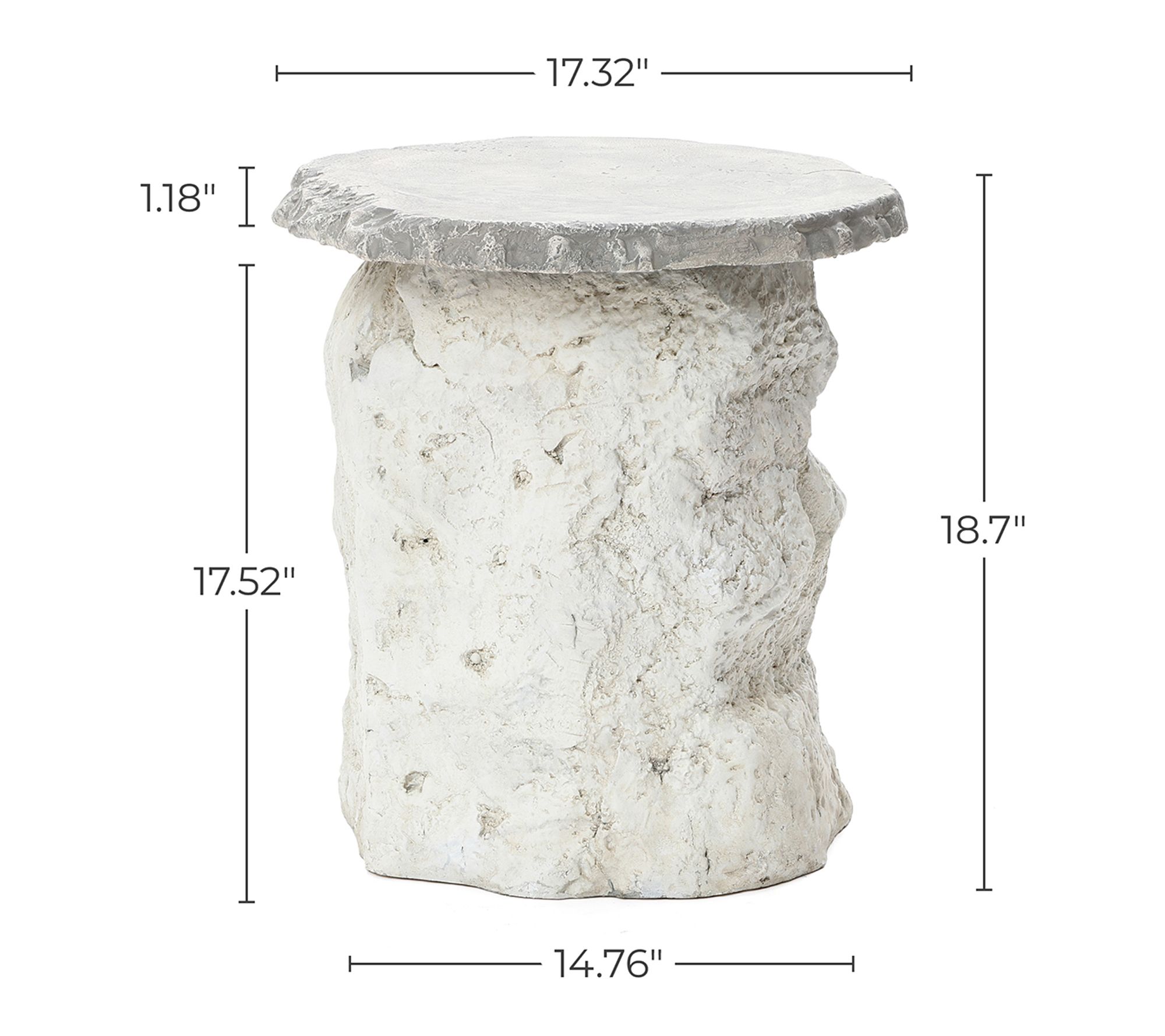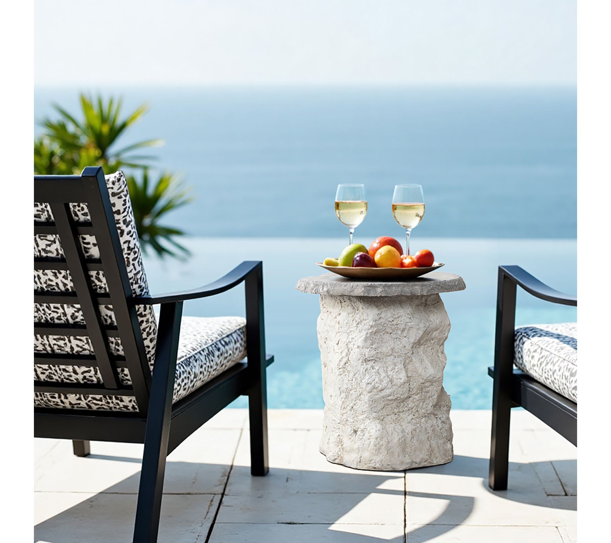 Let evenings on the patio or afternoons in the sunroom come alive with the artistic texture and sculpted stone-inspired look of this outdoor side table. The off-white finish and rock-like base bring a touch of modern minimalism and earthy elegance to any setting, offering an ideal spot for your favorite beverage, a potted plant, or a good book. From LuxenHome.