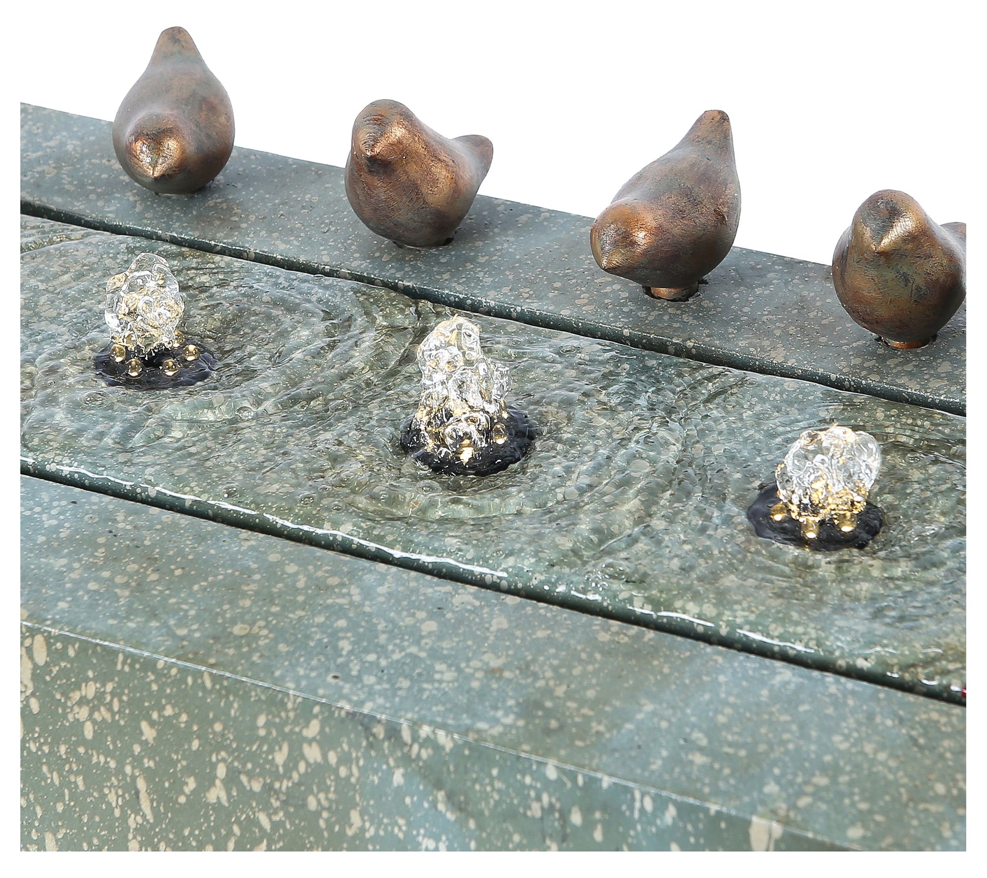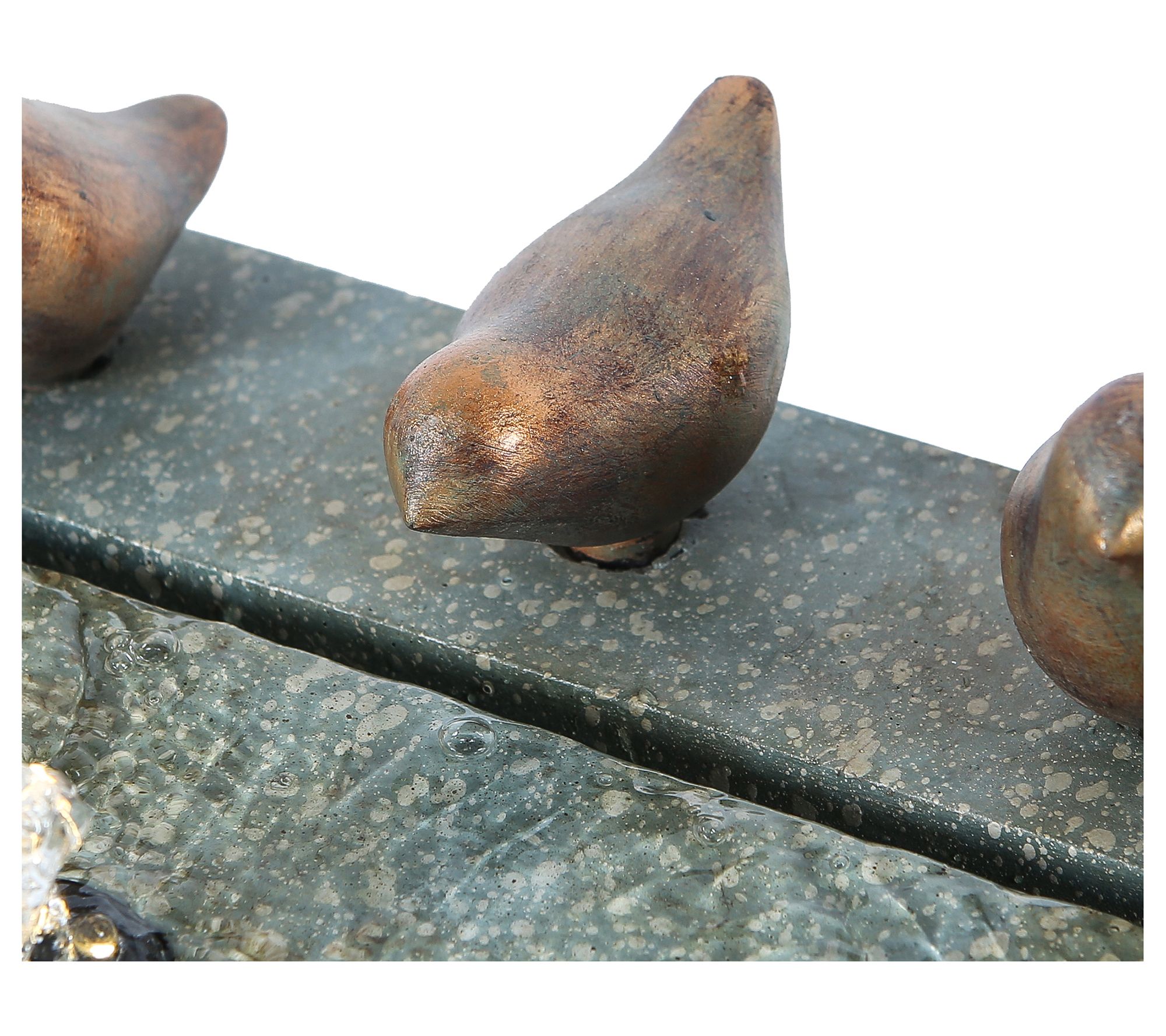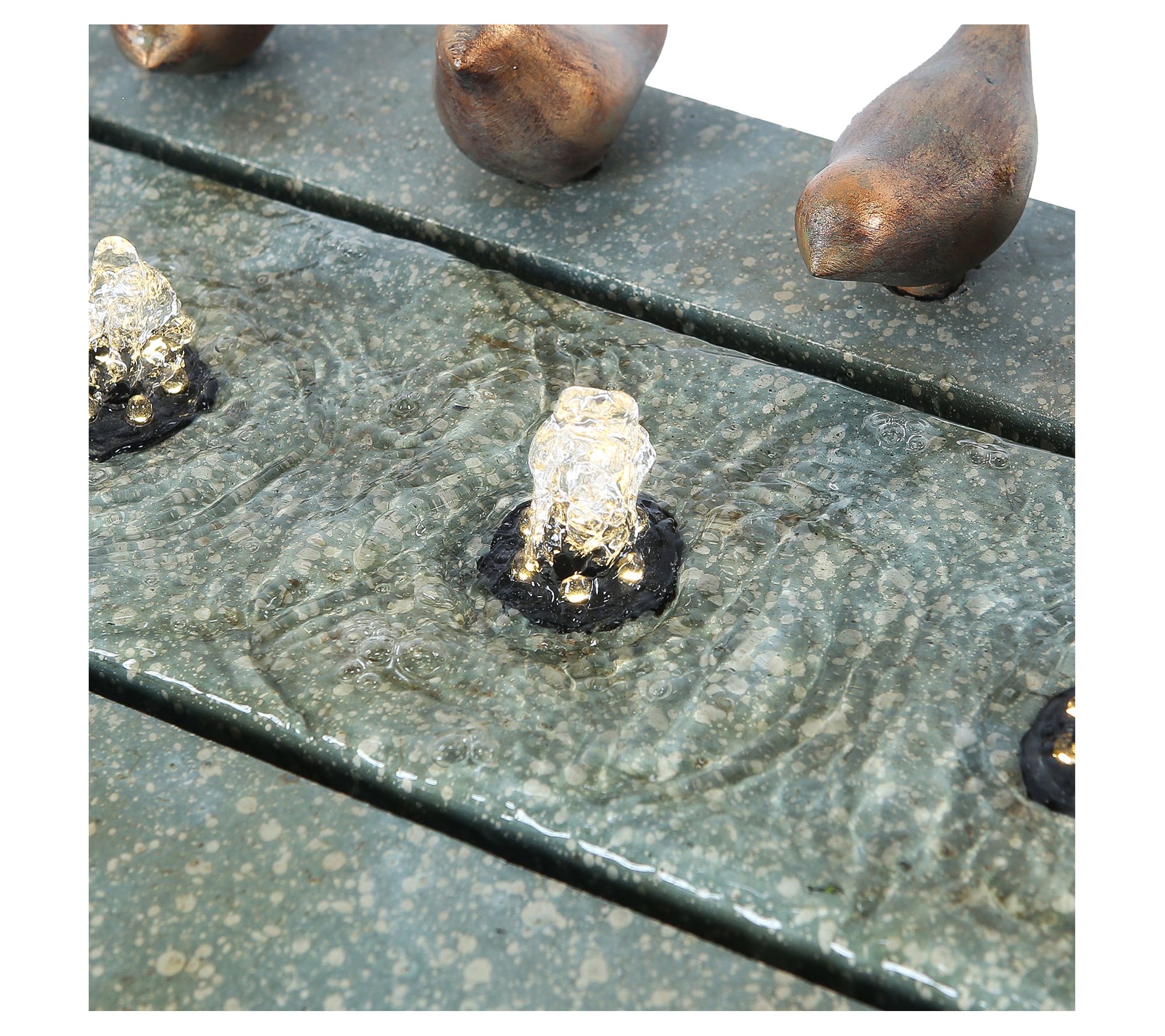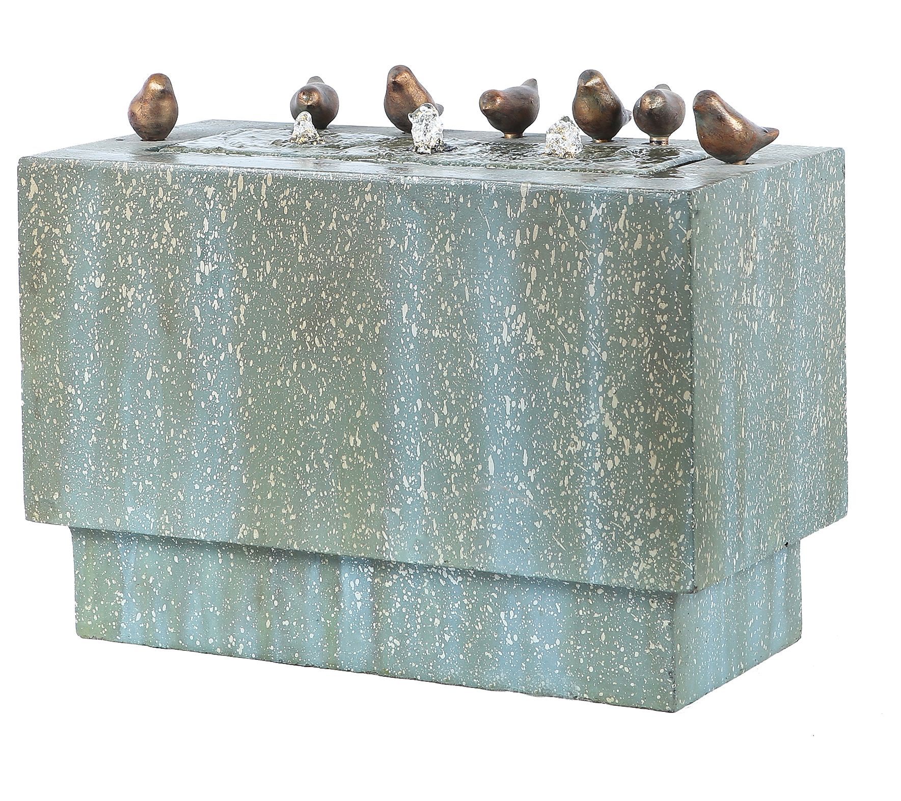 A beautiful blend of vintage-inspired style and earthy beauty, this fountain offers a rich patina-look finish, LED lights that shine as the water bubbles, and bronze-colored birds that add a fun, playful touch. From Luxen Home.
