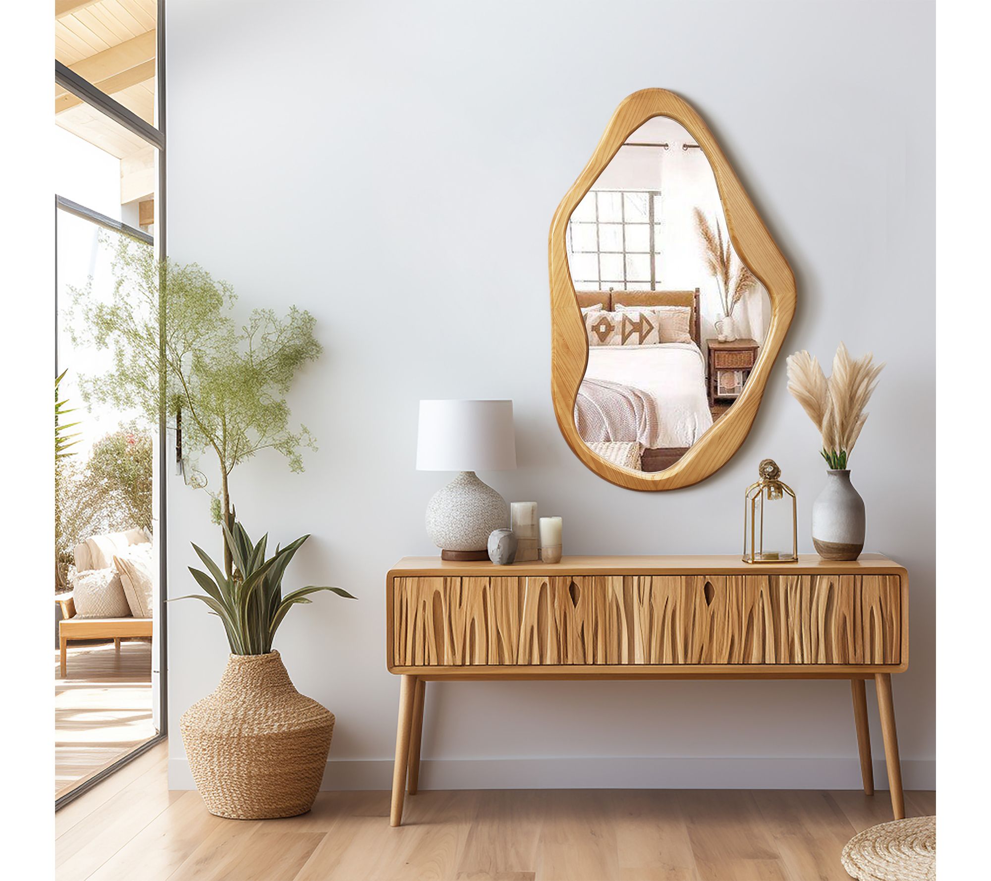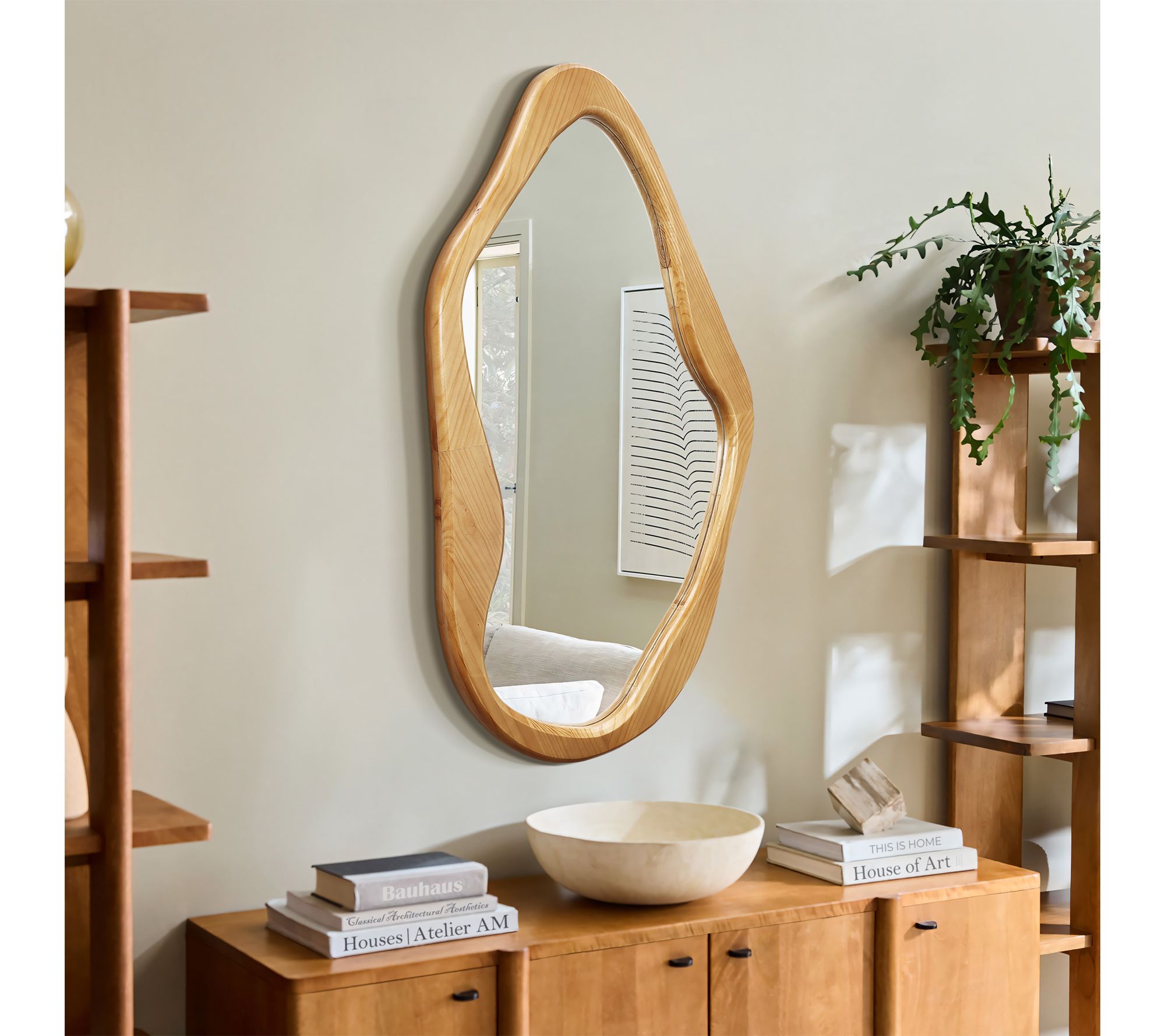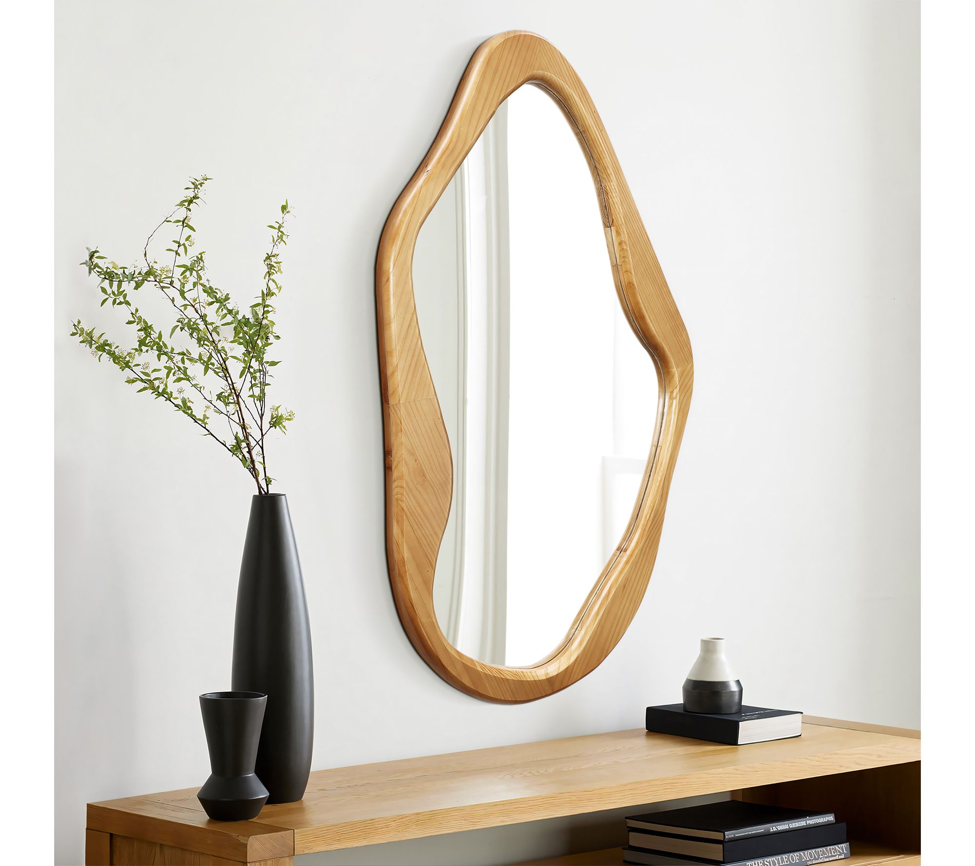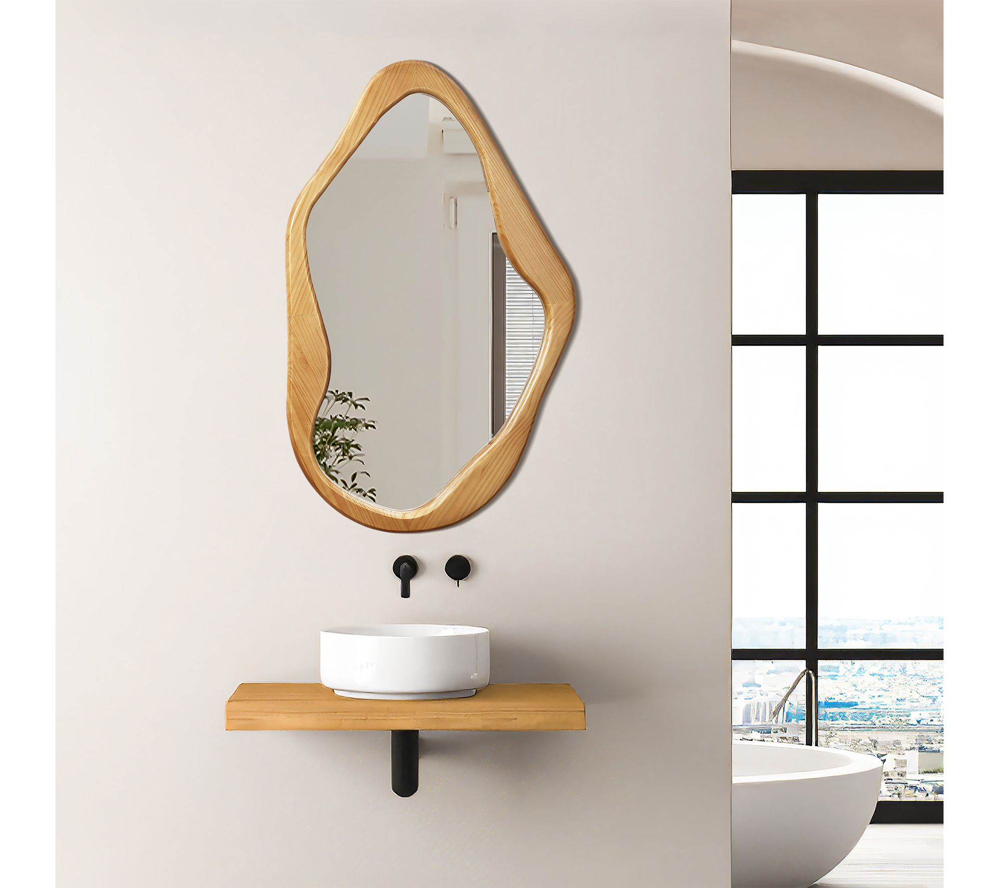 Add instant dimension and style to your home with this irregular wall mirror. Framed by pine wood with a flowing silhouette, it energizes your space while reflecting light and texture wherever it hangs -- whether brightening up your entryway or making a striking statement in a bedroom. From LuxenHome.
