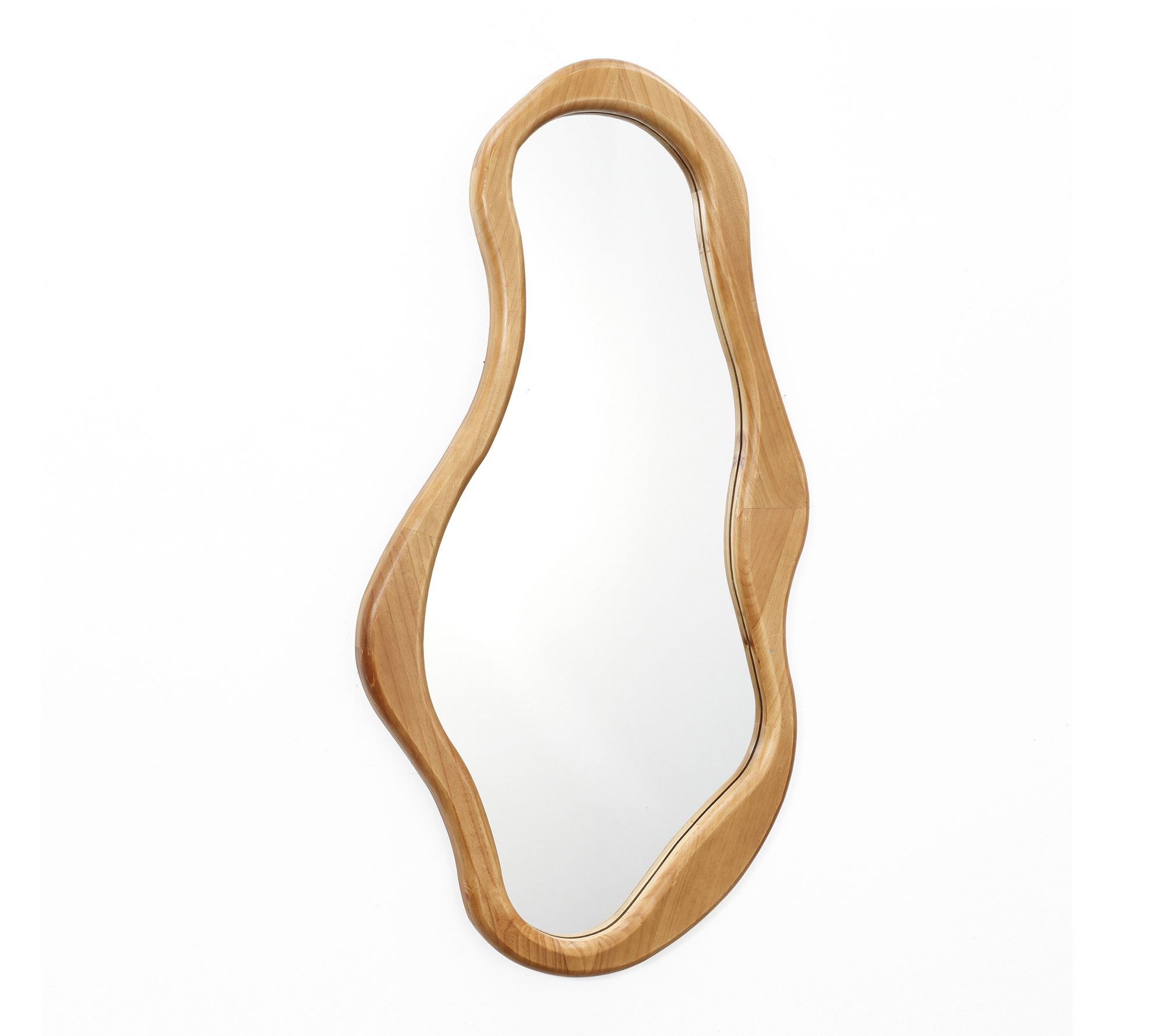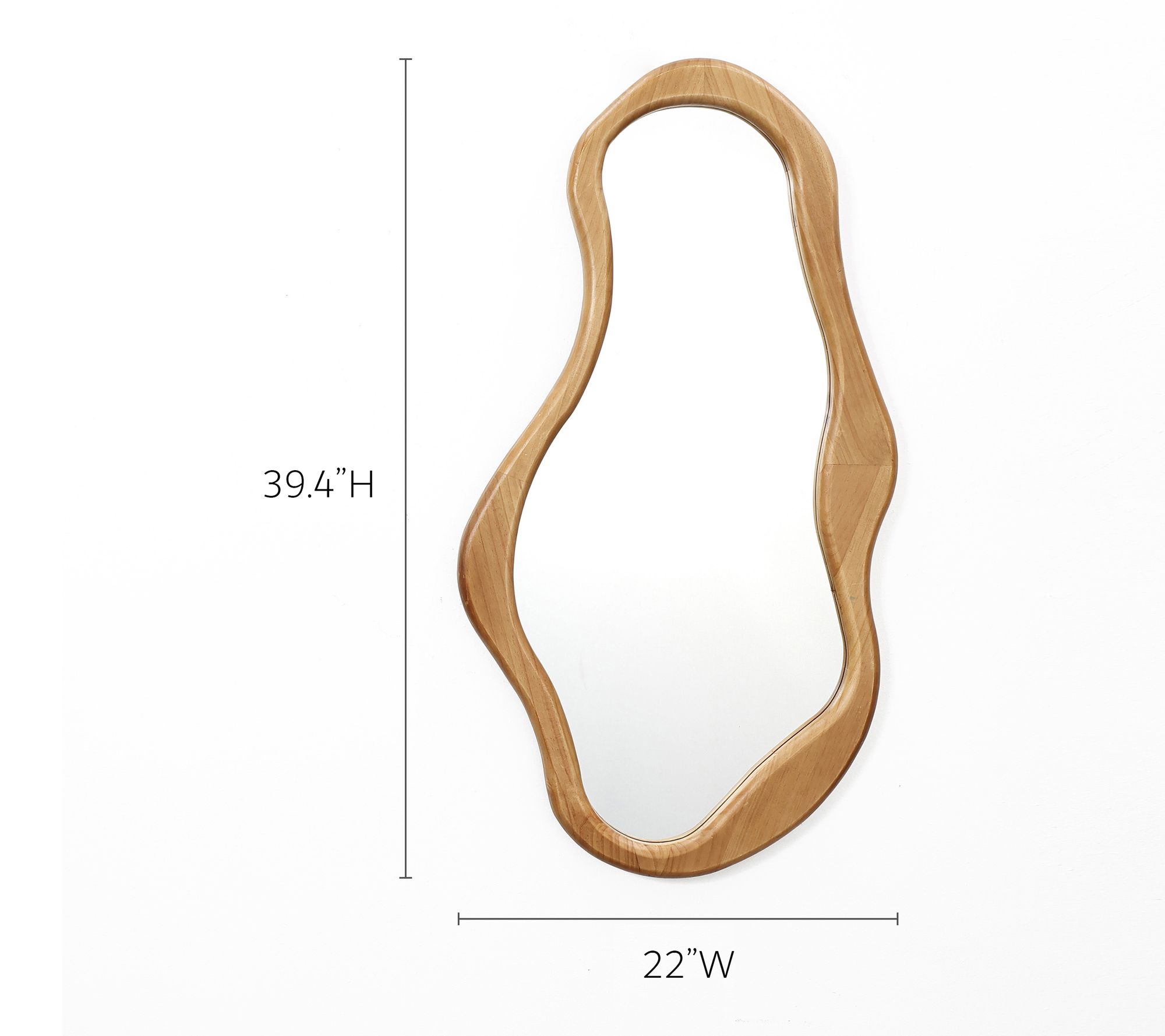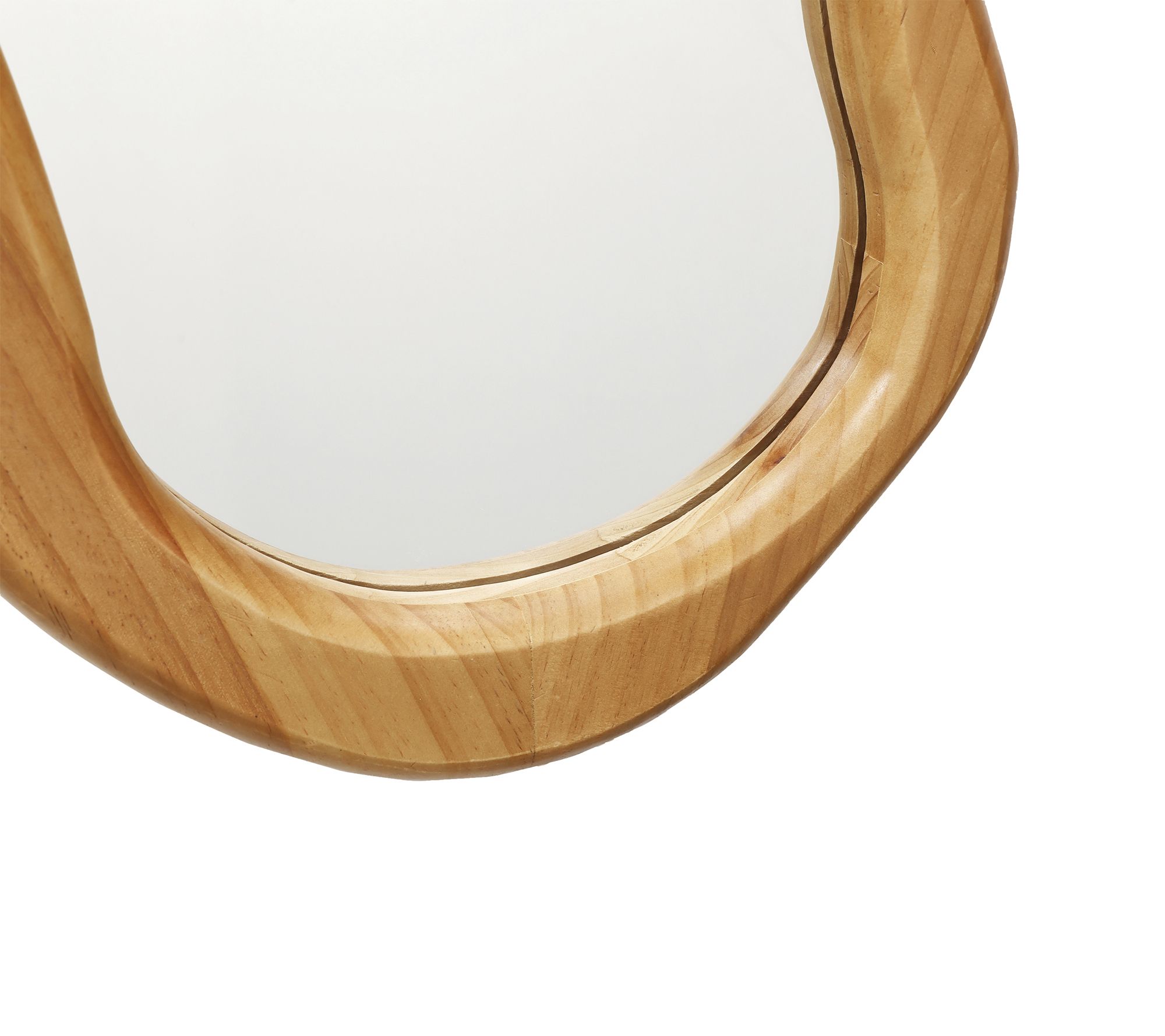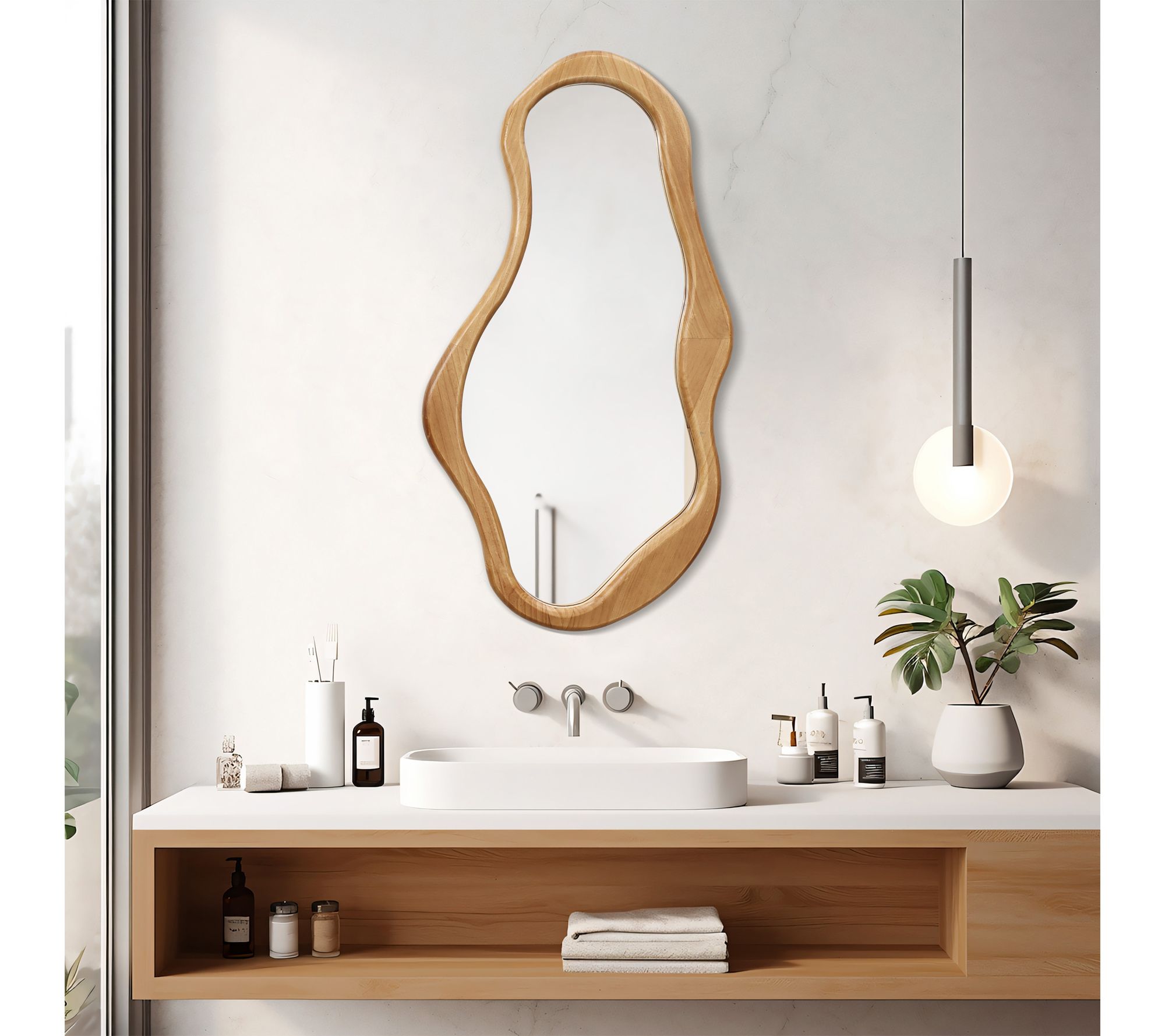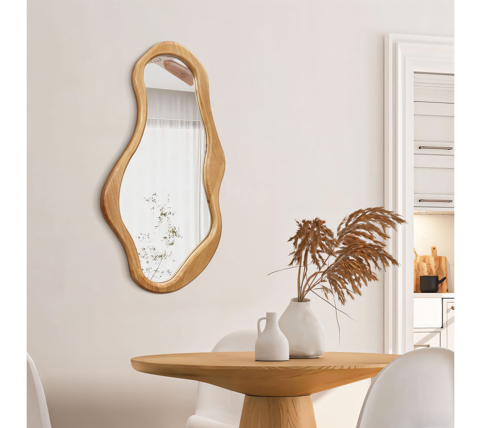 Find a new focal point in your home with this striking wall mirror, designed with an irregular oval silhouette and authentic pine wood frame. The flowing curves and warm finish add texture and vitality to your entryway, bedroom, or living room, while its versatile style helps brighten any space and blends seamlessly with modern decor. From LuxenHome.
