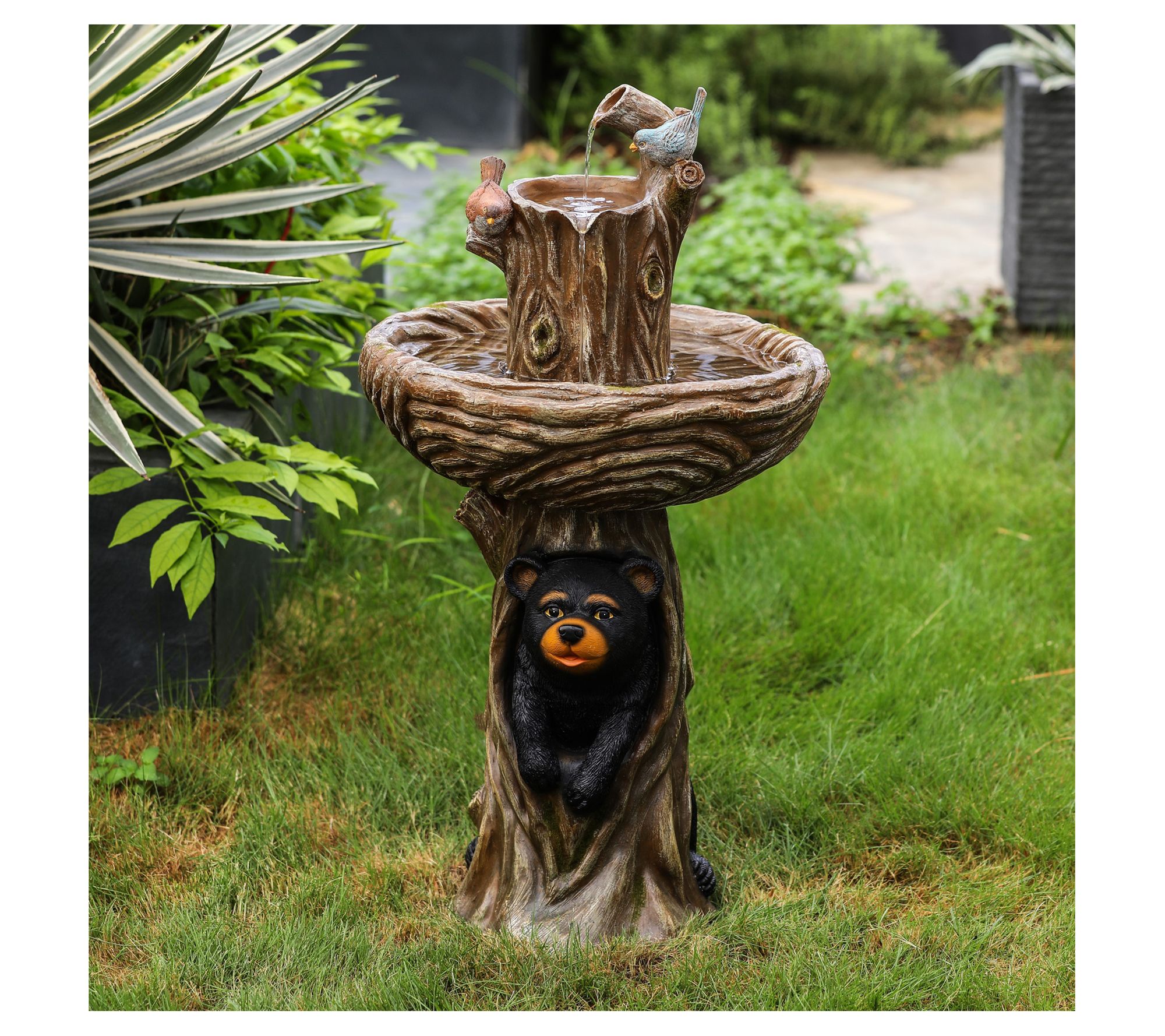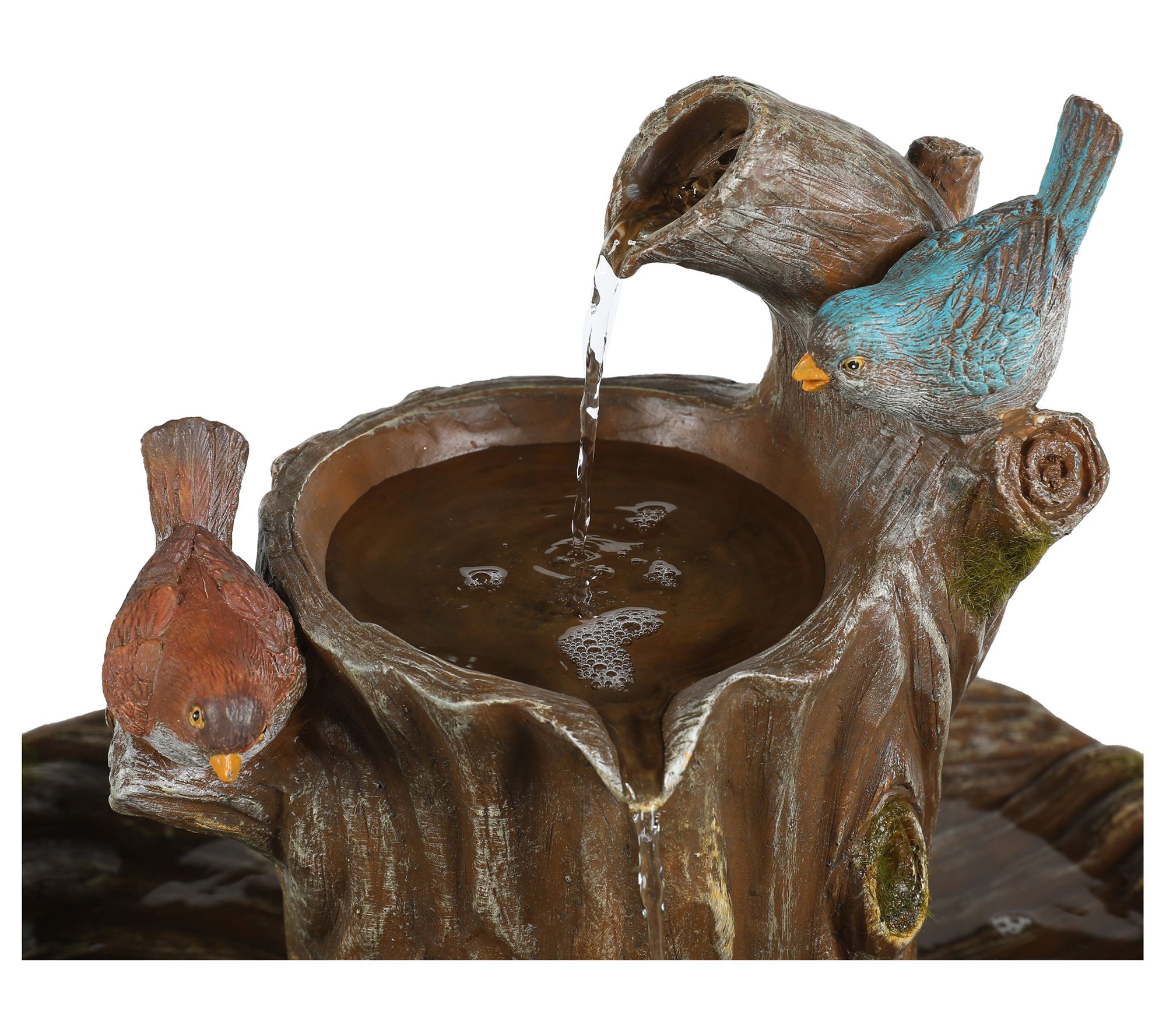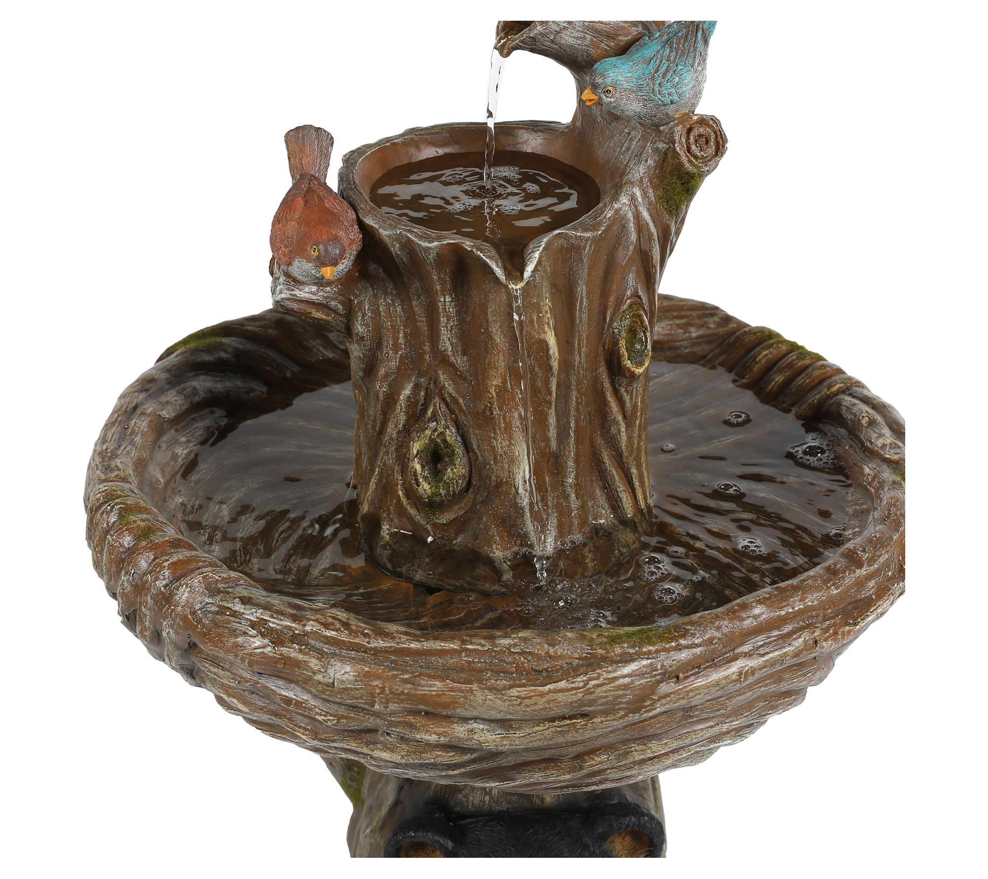 LuxenHome Resin Carved Tree Birdbath Fountain