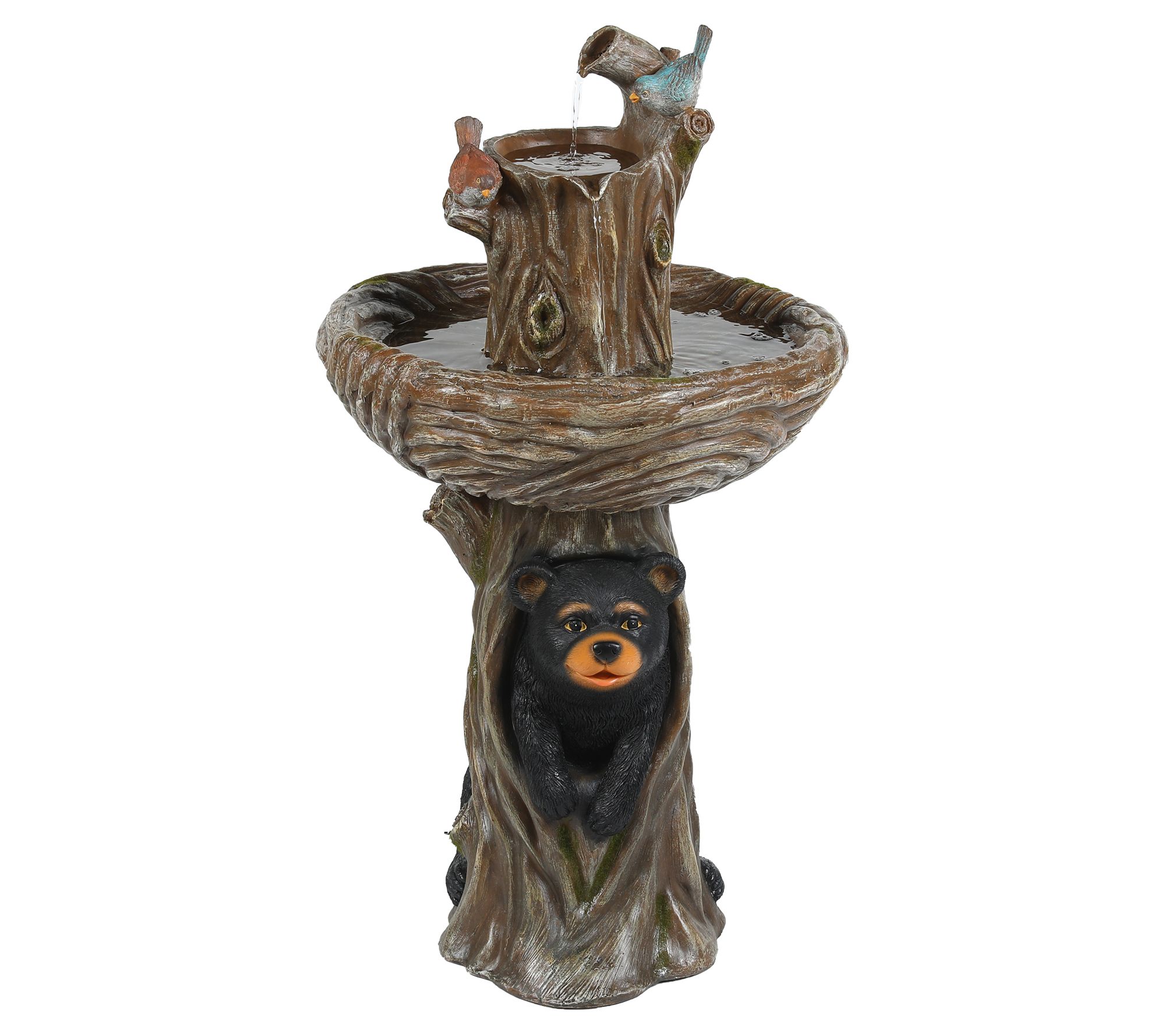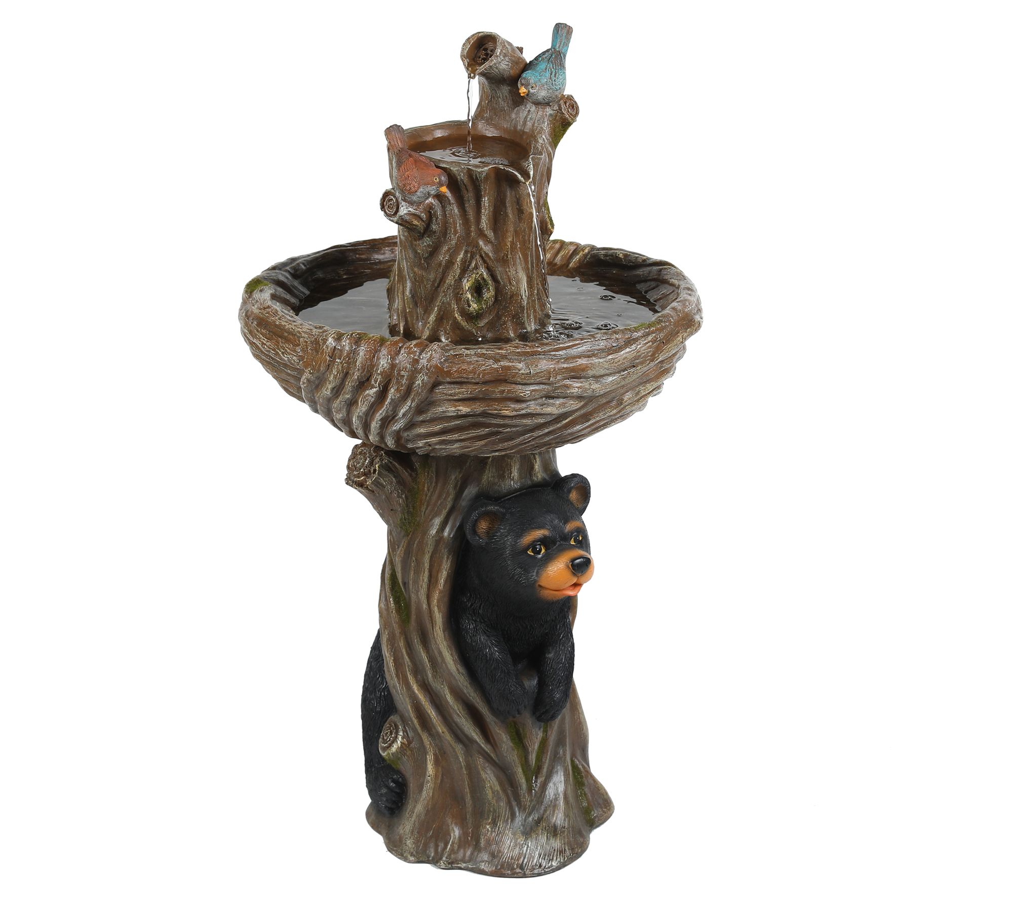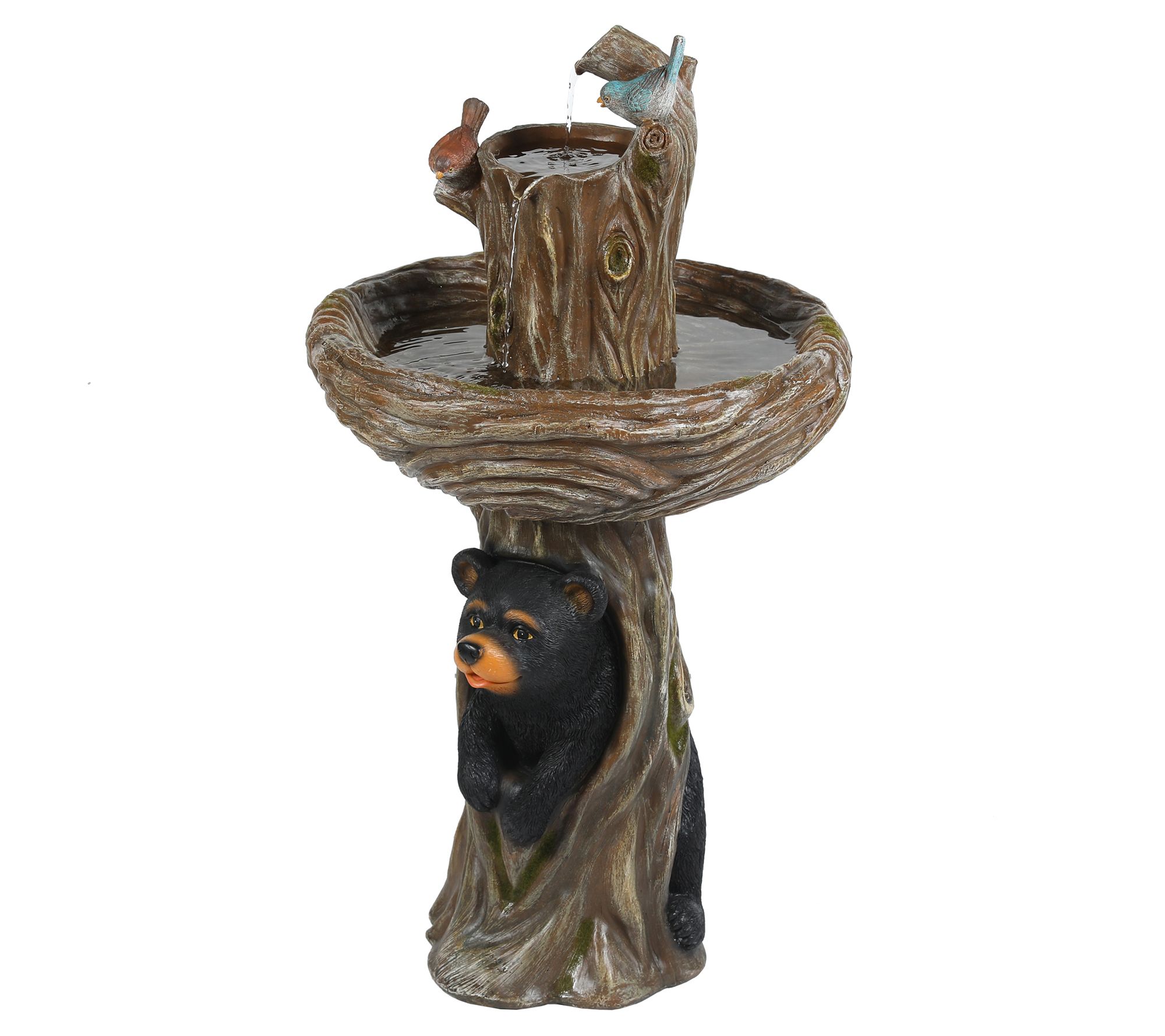 LuxenHome Resin Carved Tree Birdbath Fountain