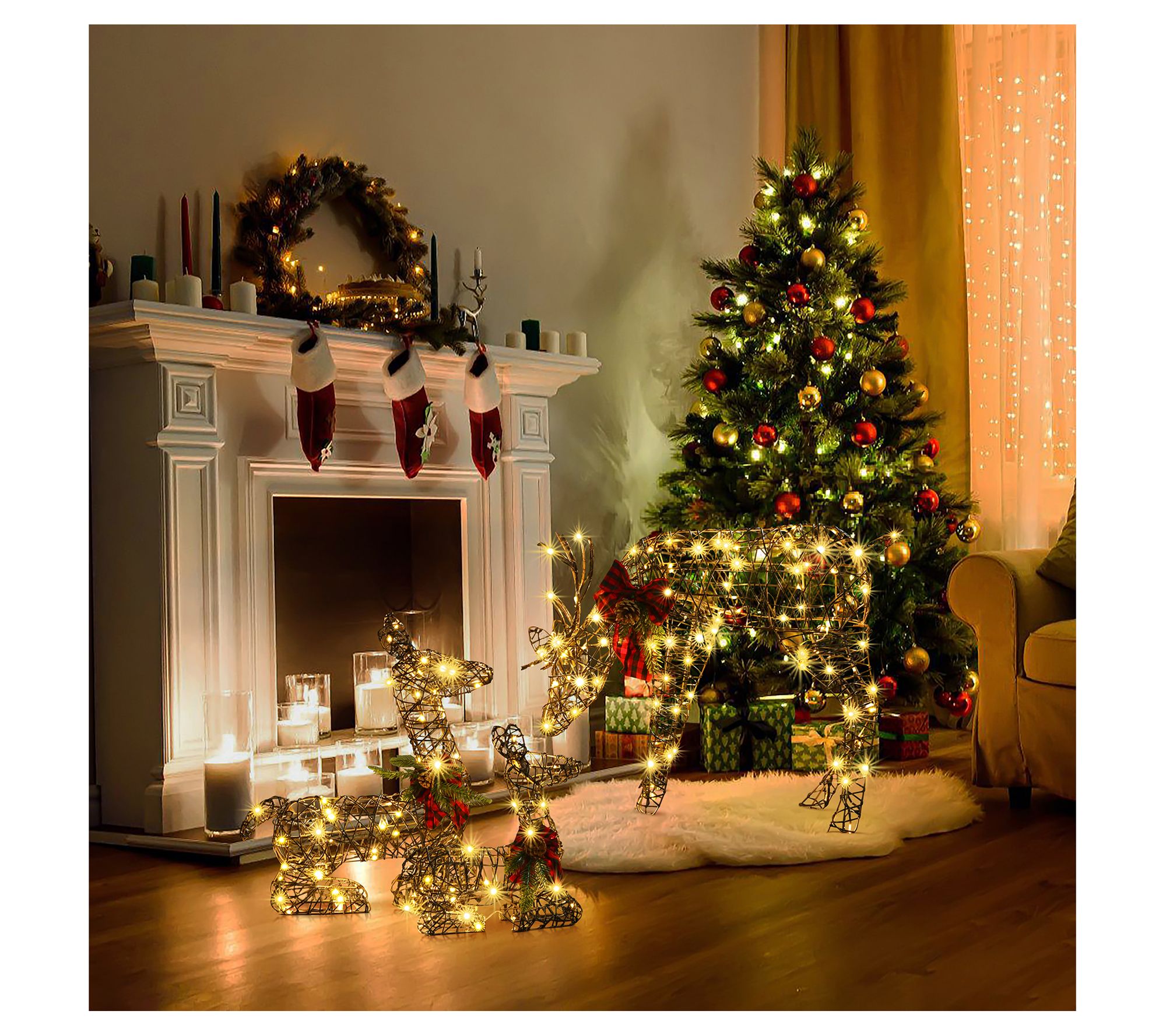 • Includes buck, doe, and fawn reindeer decorations