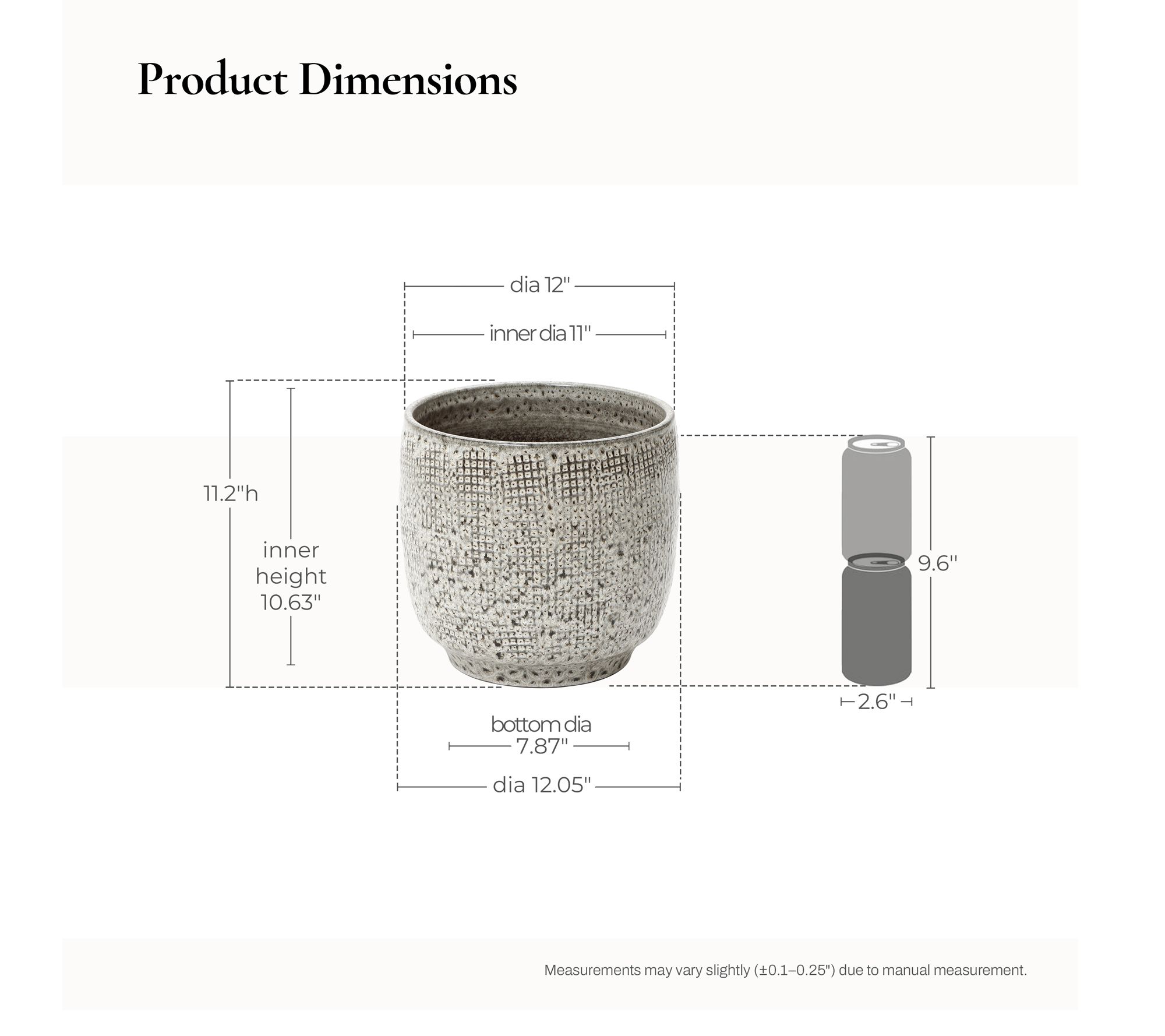 LuxenHome Speckled Ceramic Planter, 12" Gray Grid Pattern