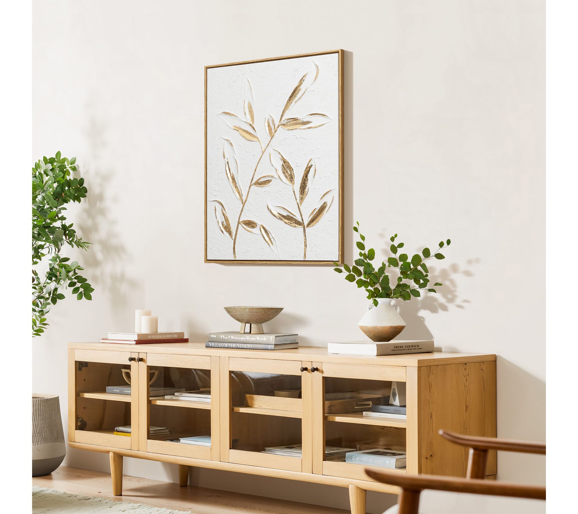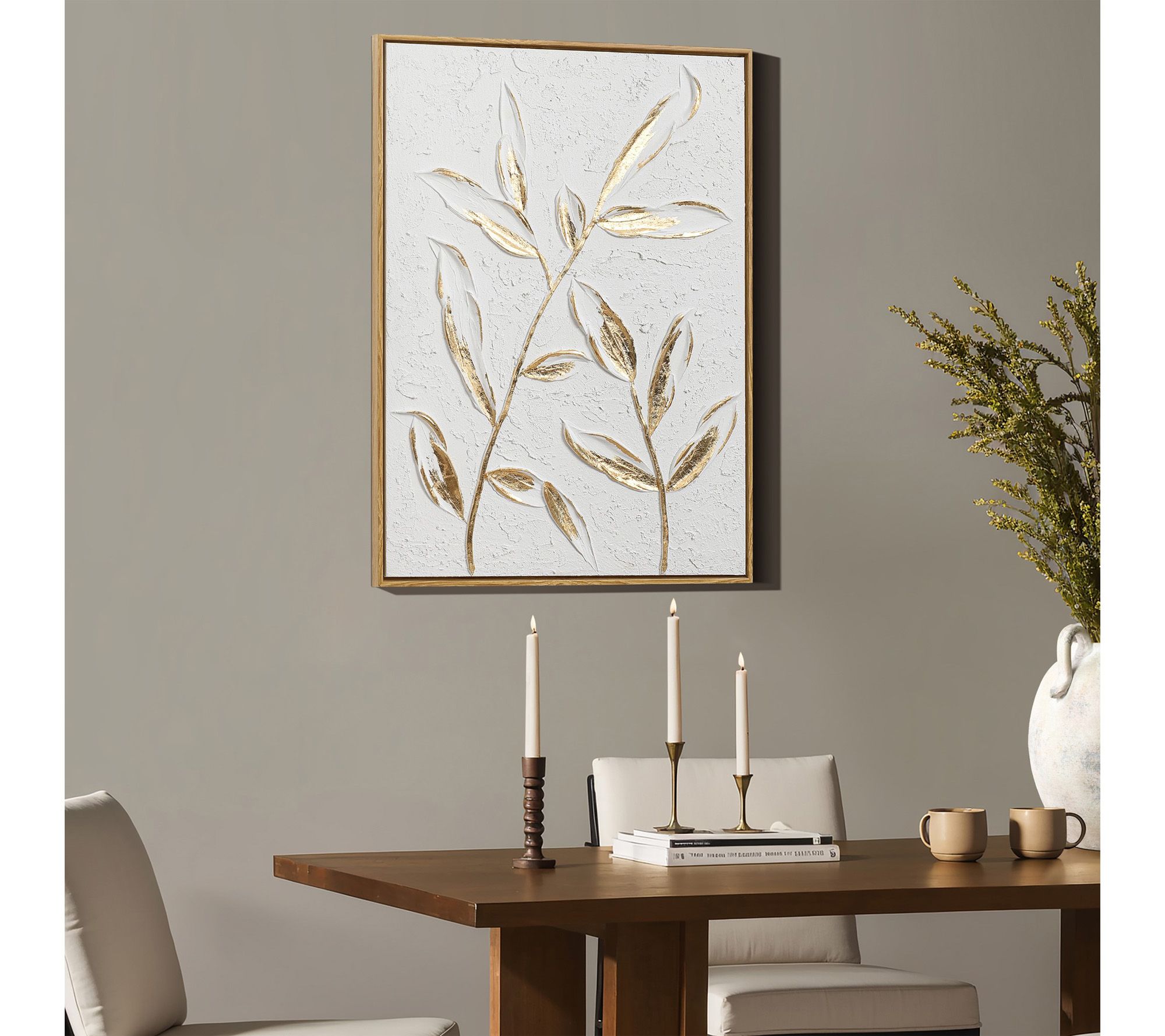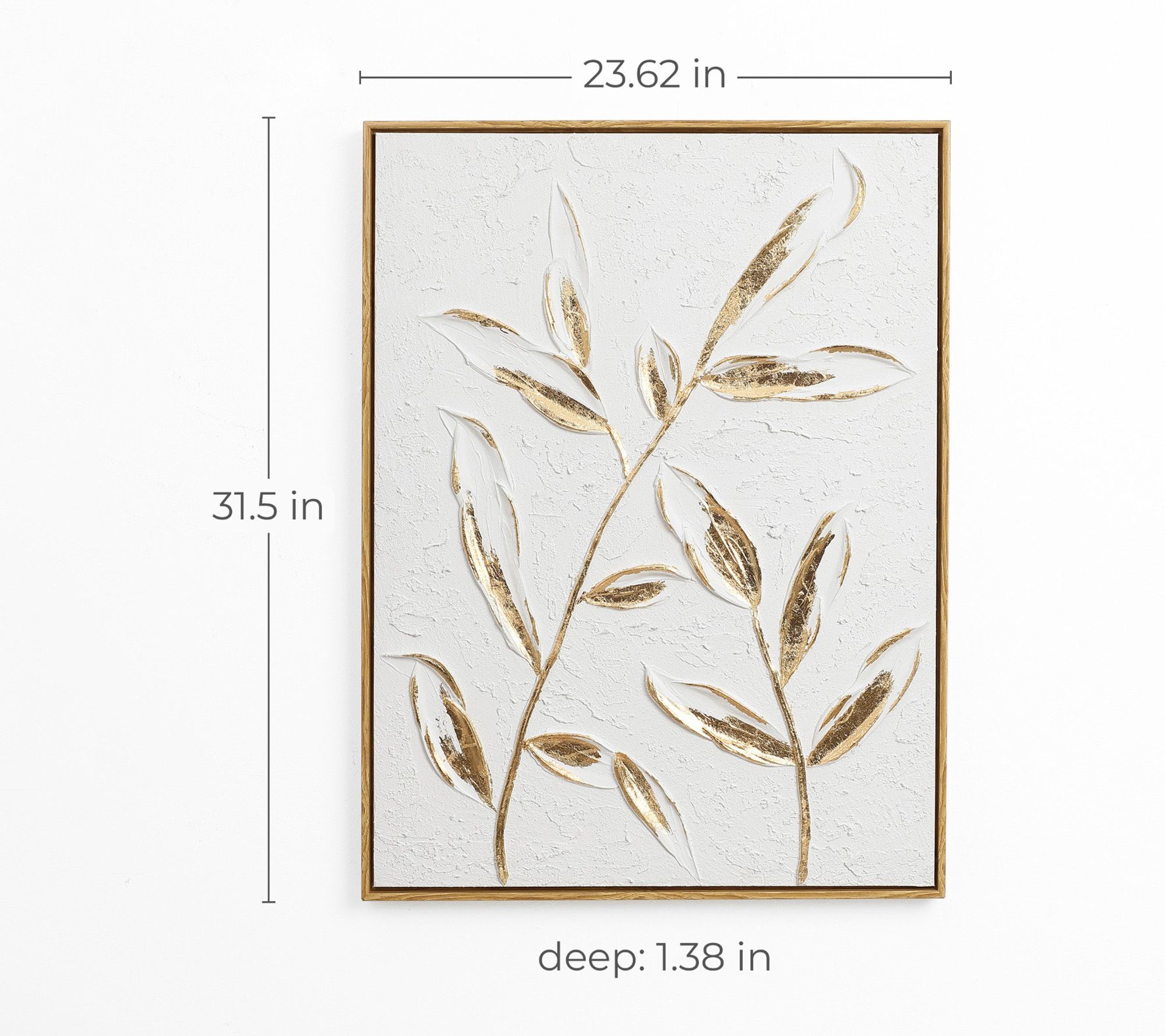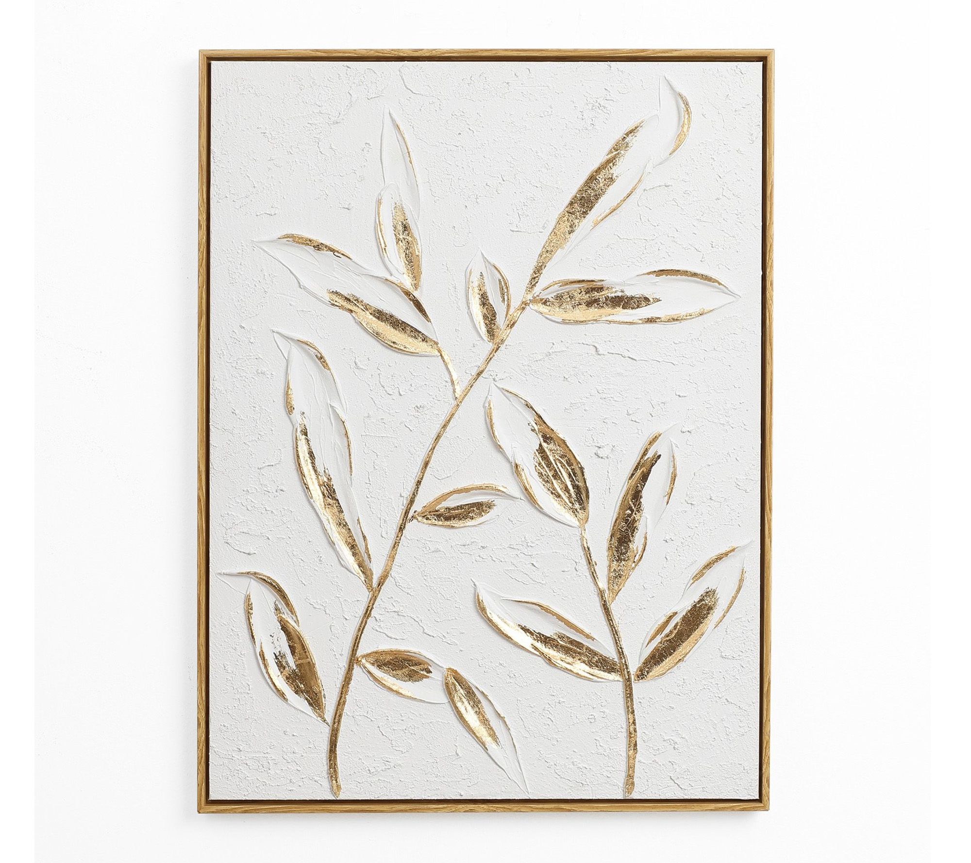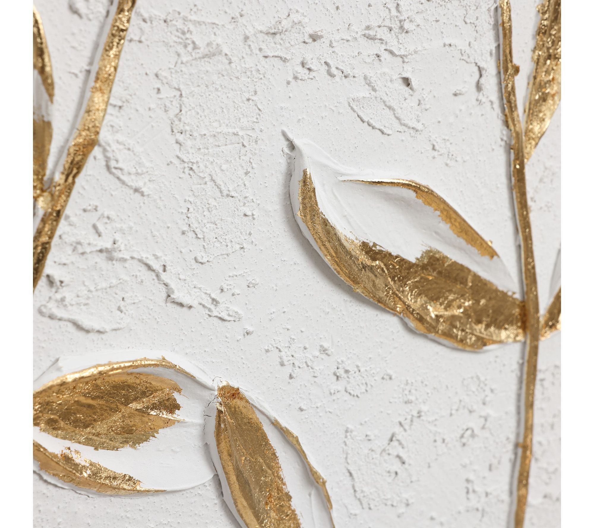 Transform any wall into an eye-catching gallery with this flower canvas wall decor, featuring a striking mix of white and gold accents. Abstract gold leaves and vivid 3D textures, highlighted by a classic frame, bring a sense of modern elegance and depth to your living room, bedroom, or office. From LuxenHome.
