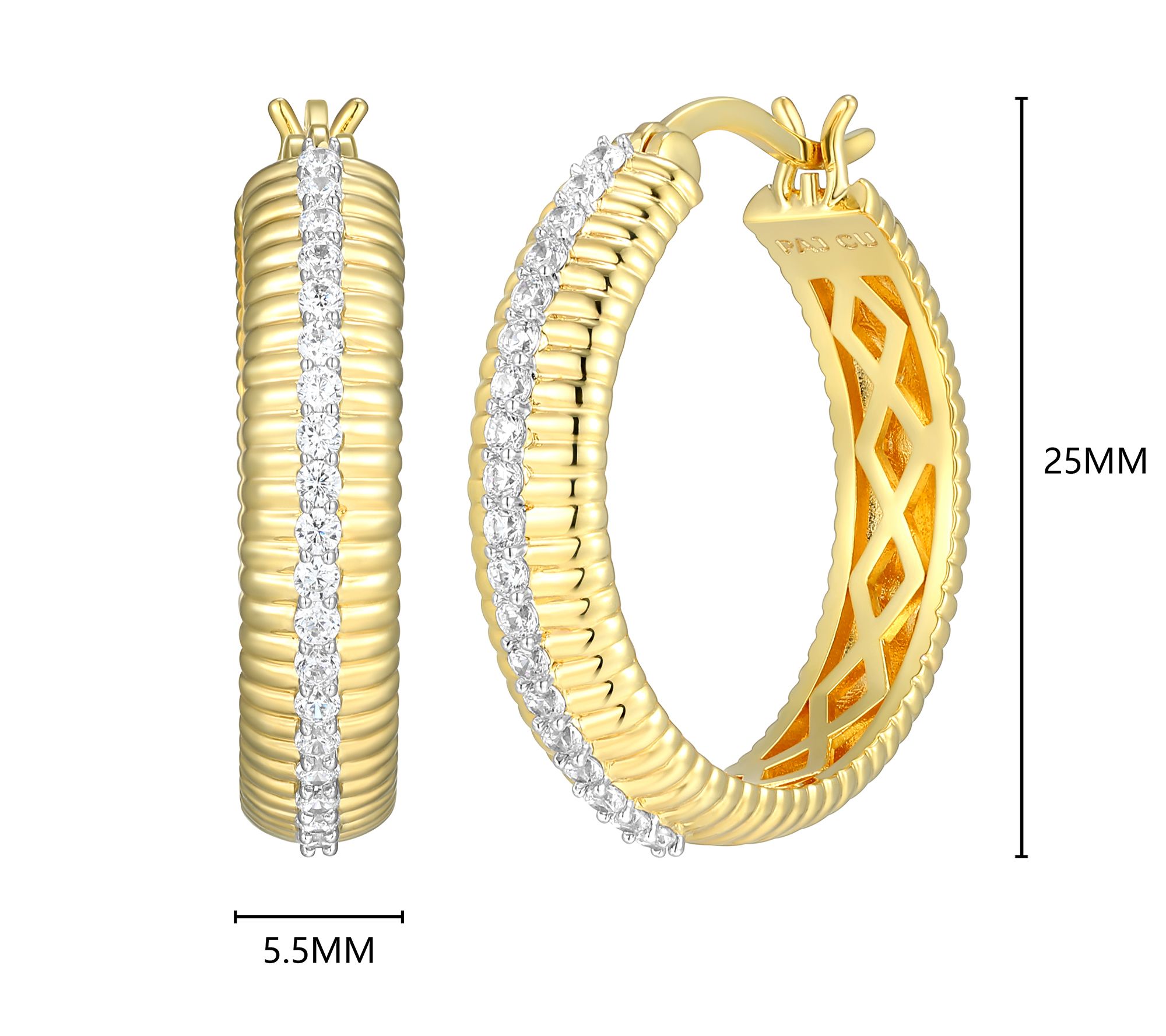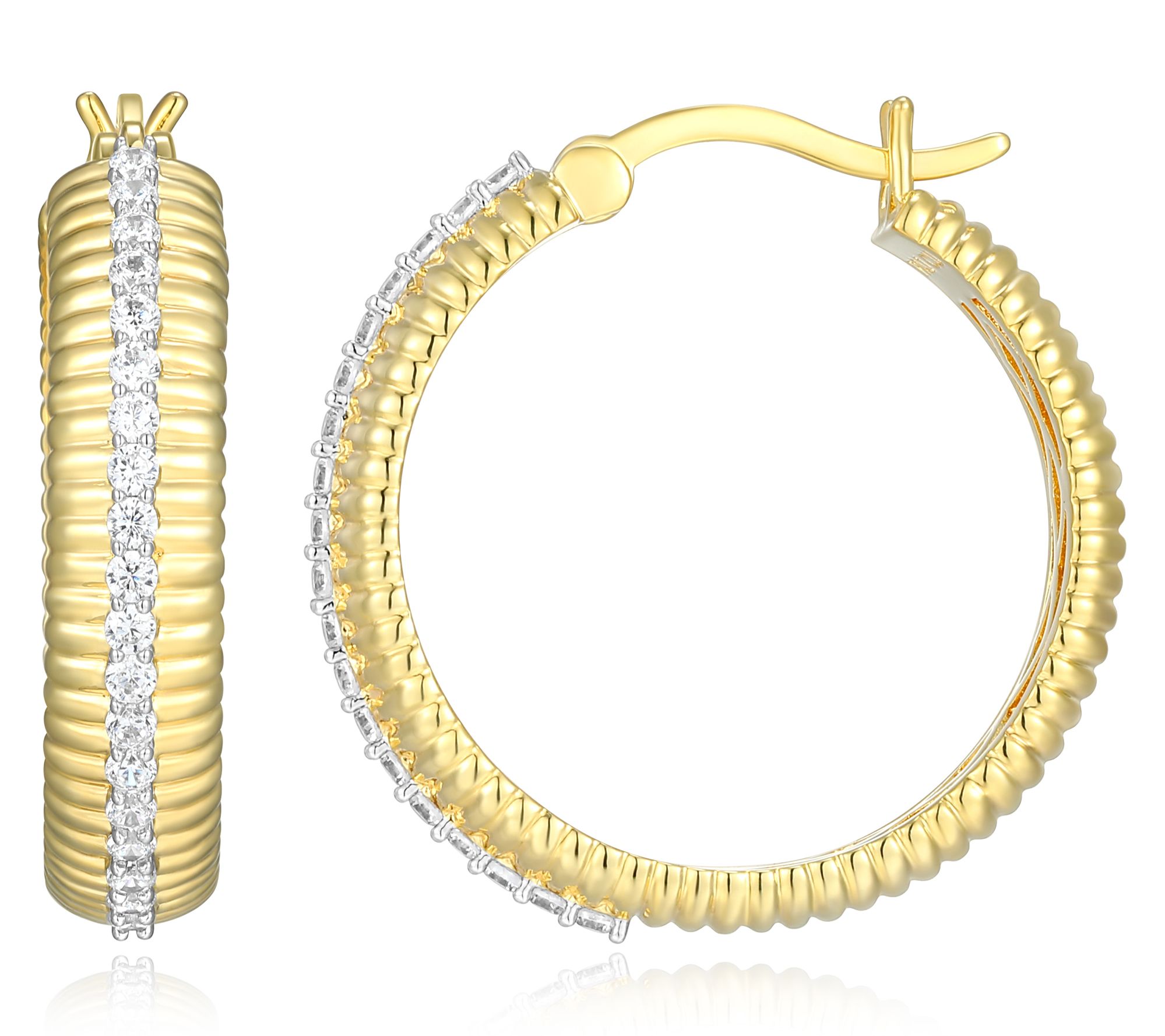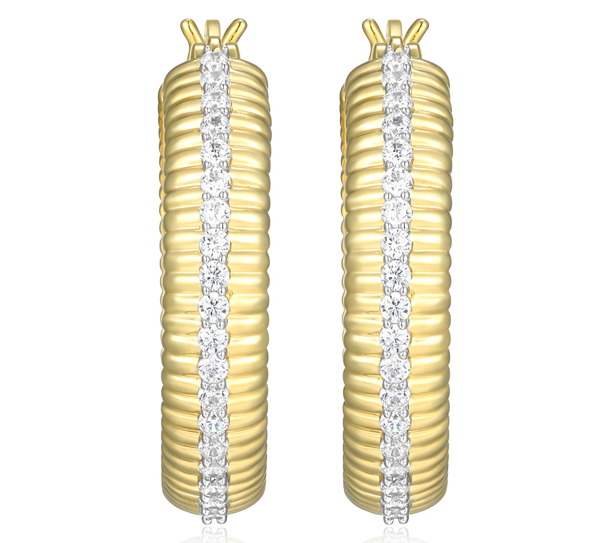 Whether you're heading to an important meeting, dressing up for date night, or simply running errands, these lab-grown diamond hoops bring luminous sparkle to any moment. The pave-set stones catch the light from all angles, while the 18K yellow gold-plated sterling silver adds a hint of modern warmth and versatility. From LuxLab.