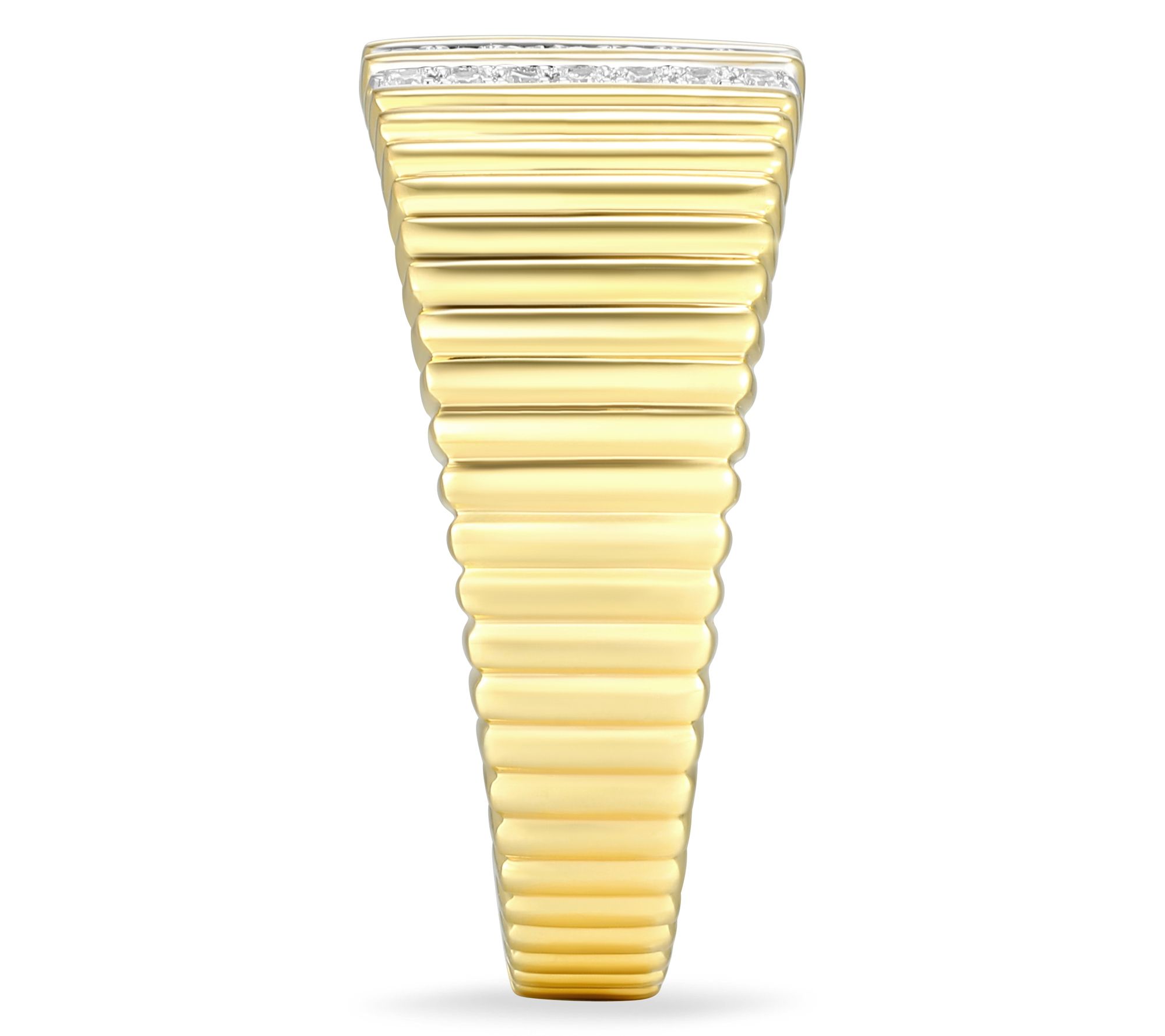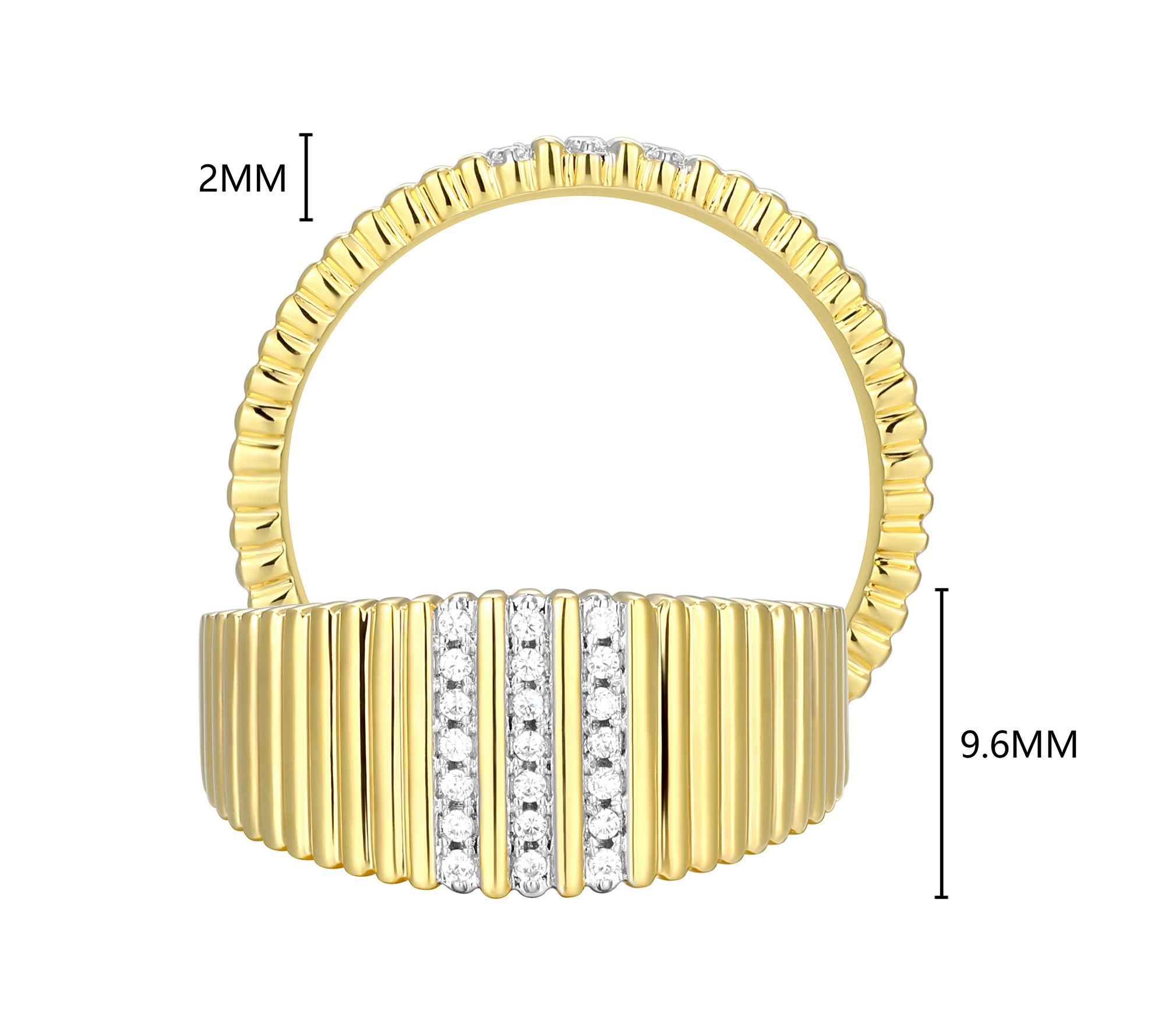 Celebrate every day in sparkle with this wide band ring that radiates modern glamour, thanks to a scattering of round, lab-grown diamonds. Whether it's slipped on for brunch with friends or as an everyday signature piece, the gleaming 18K gold-plated sterling silver setting brings a warm glow to every gesture. From LuxLab.