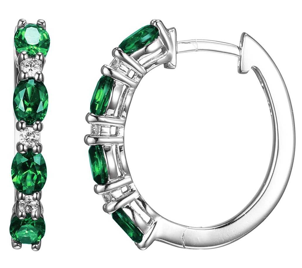 Oval-cut prong-set lab-created emeralds and round prong-set lab-grown diamonds
