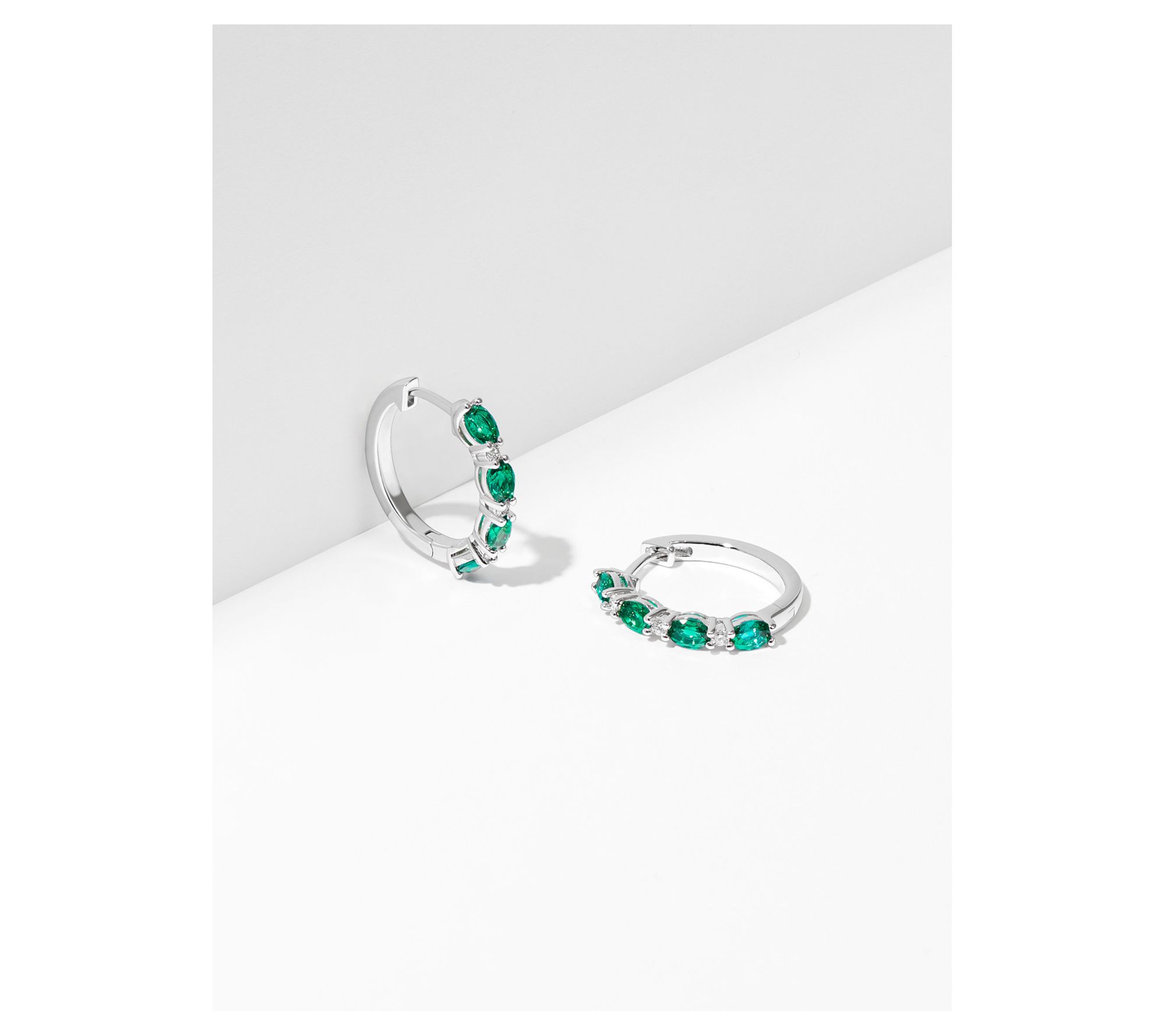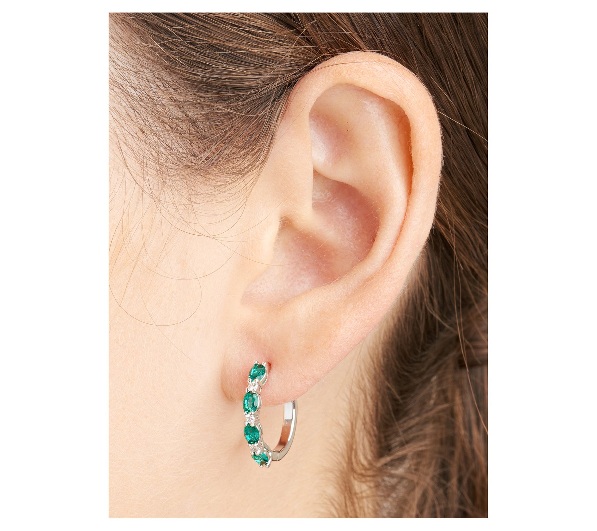 Bedeck your ears with these sophisticated hoop earrings set with richly hued lab-created emeralds and glittery lab-grown diamond accents. From LuxLab.