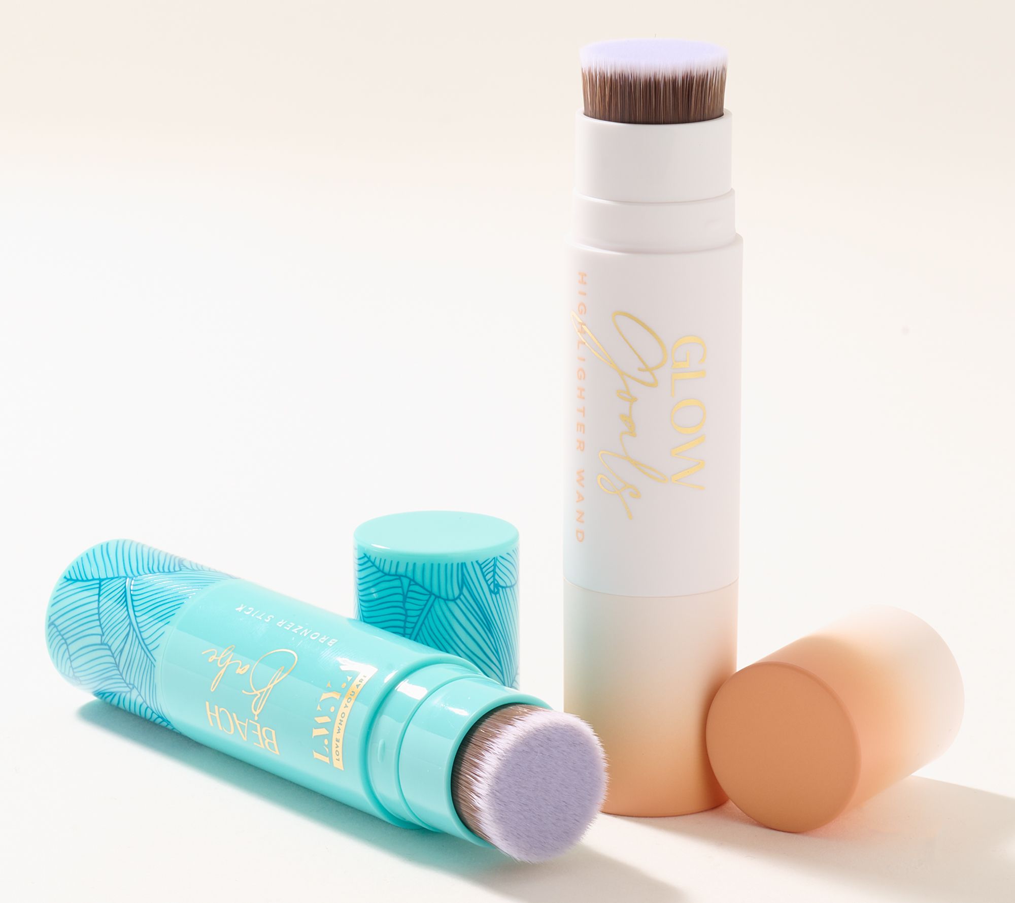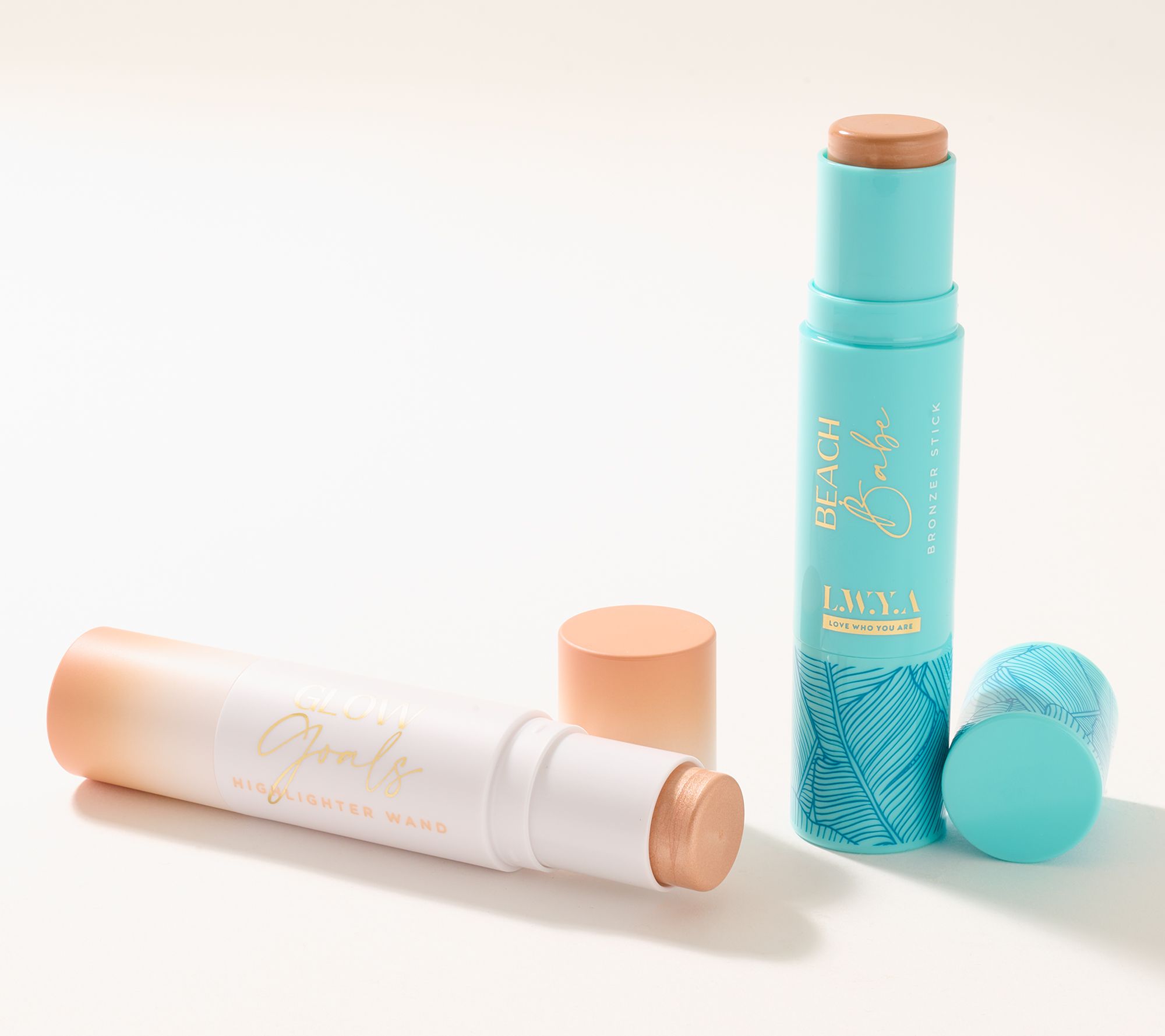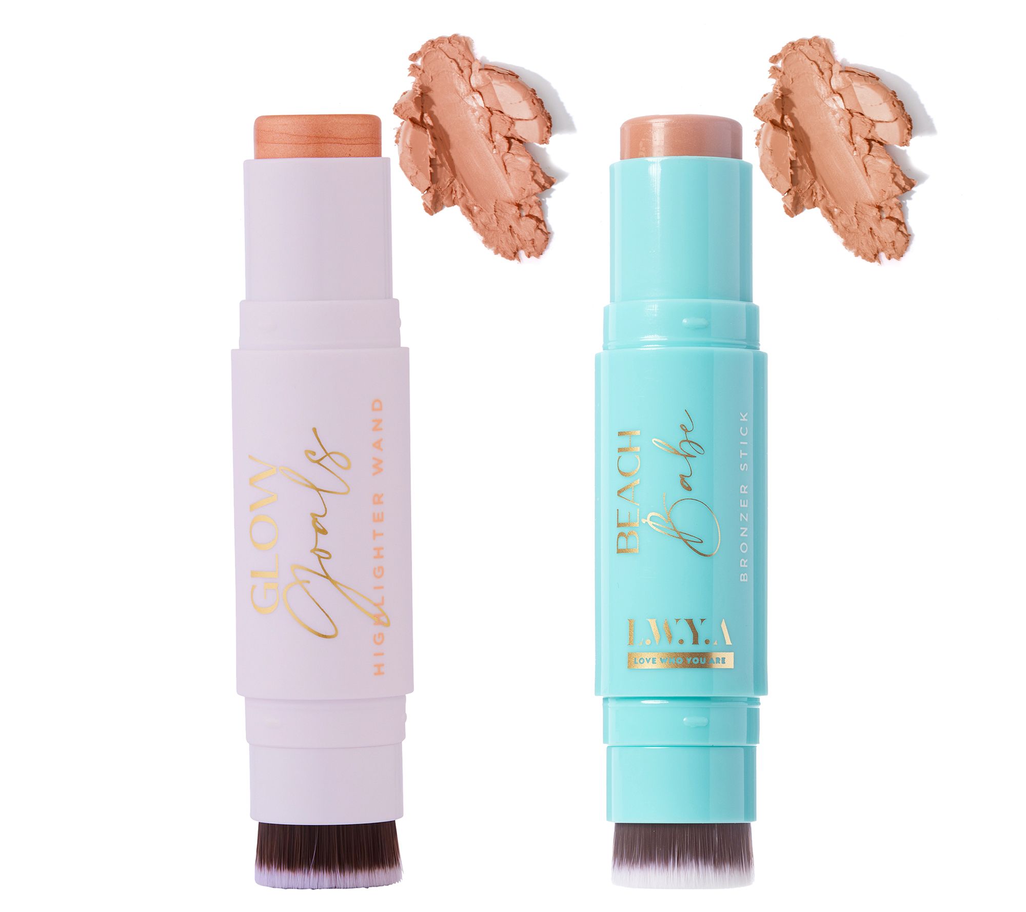 Brighten and bronze with this LWYA by Kim Gravel two-piece set. Glow Goals Highlighter Wand is a virtually mistake-proof cream that adds rich dimension to your look -- for day or night. Beach Babe Cream Bronzer Stick is for the appearance of a quick and visible sun-kissed glow with a smooth, seamless, second-skin finish -- just swipe on, blend, and go. The liquid-like cream bronzer stick melts into skin for the look of a beachy warmth that won't fade, blurring the appearance of imperfections for a natural-looking, beautiful finish. From LWYA by Kim Gravel.
