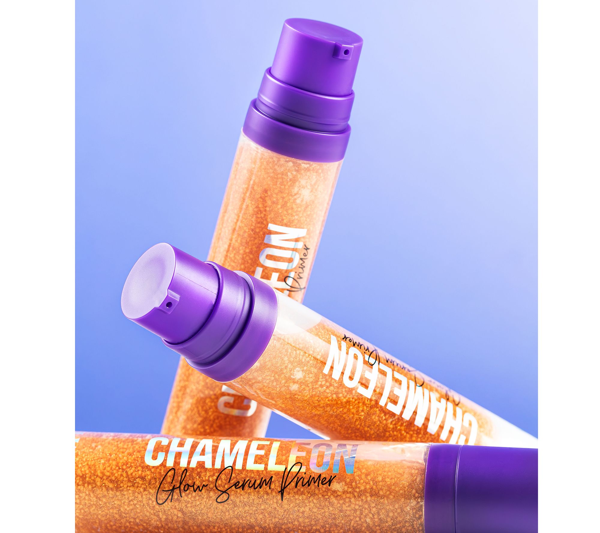 Chameleon Glow Serum Primer is a complexion enhancer and primer. Unique golden micro-beads blend to release an instant burst of hydration for a natural bare-skin filter effect. Use as a skin-hugging primer under your makeup or wear alone.