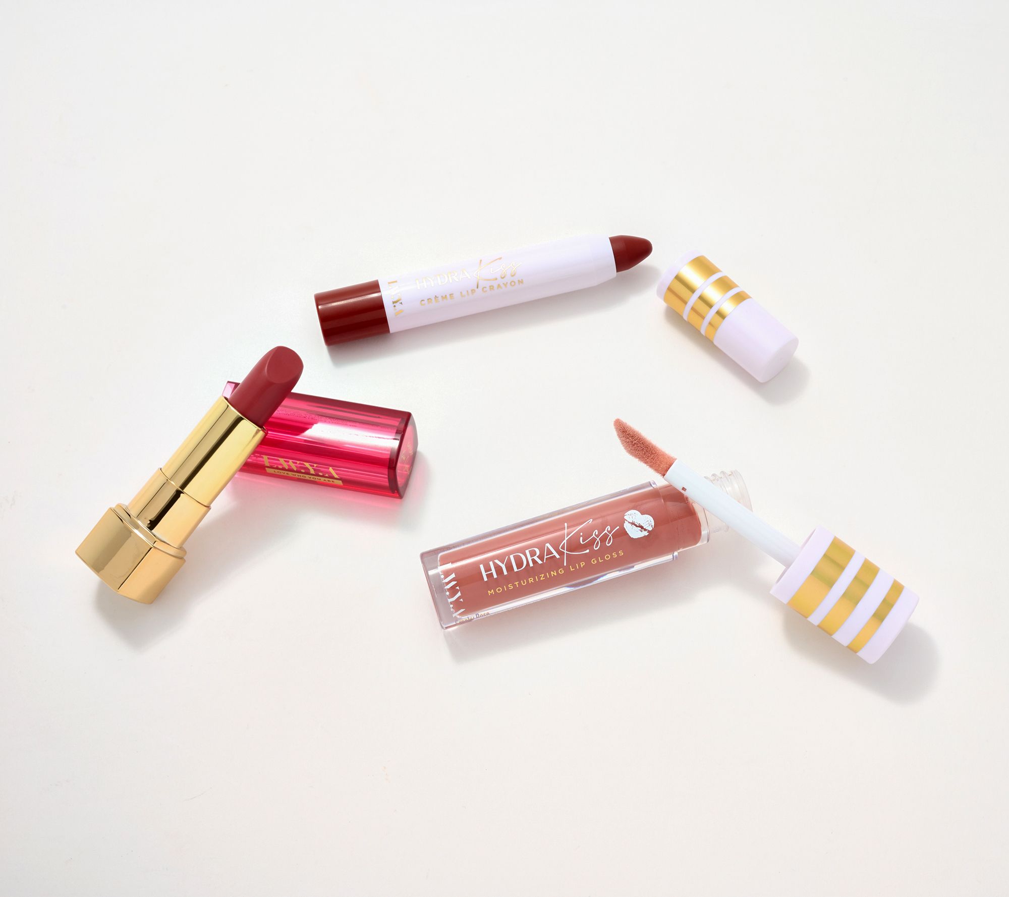 Luscious lips? They're on their way with LWYA! Take bare lips to beautiful with this three-piece Hydra Kiss lip kit from Kim Gravel.