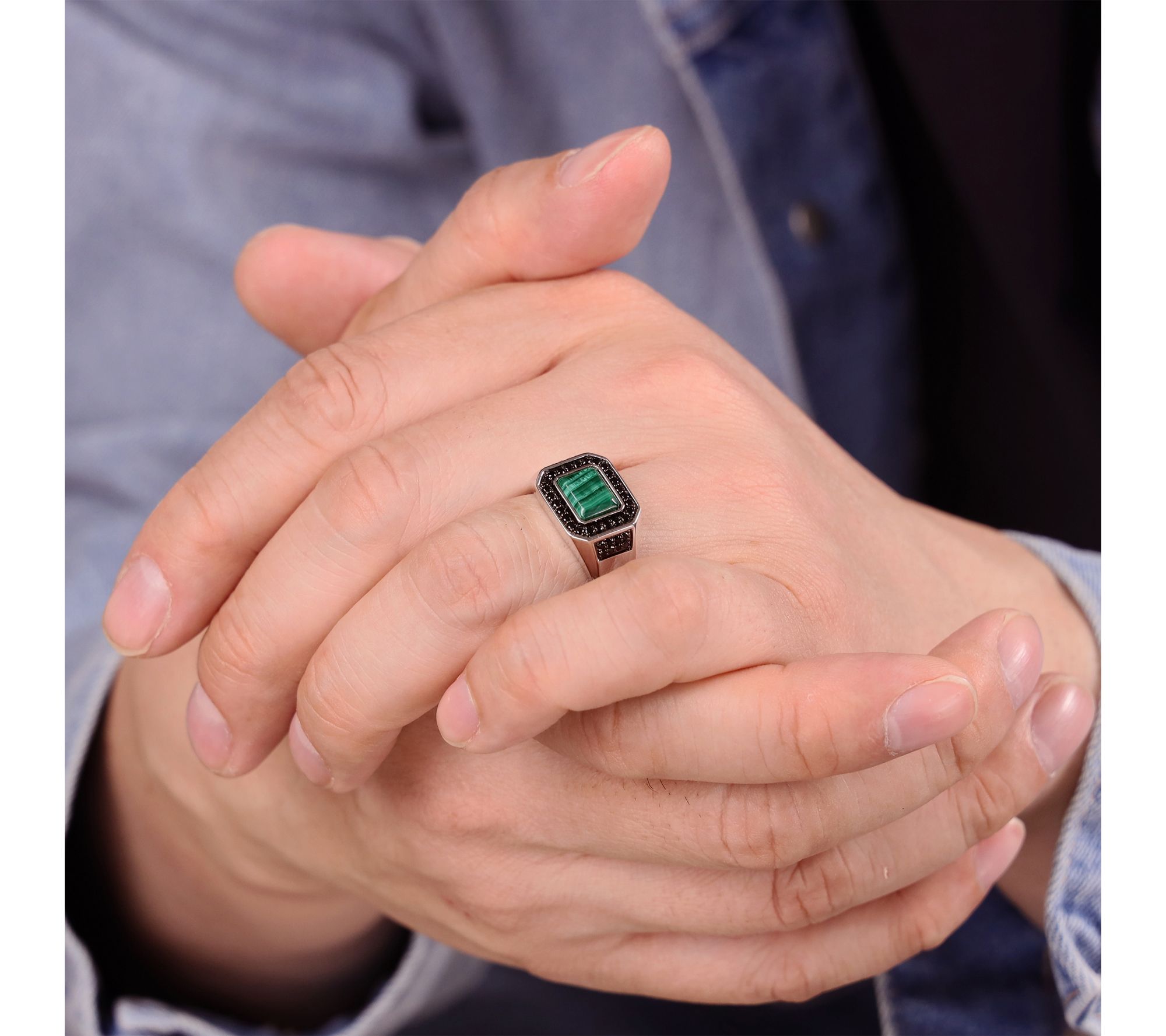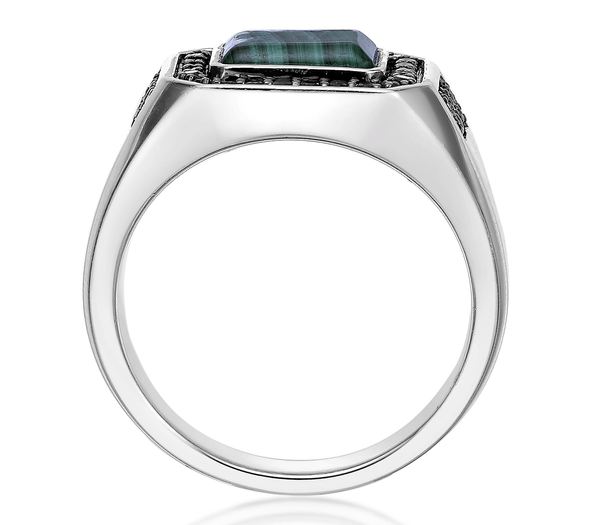 LYMX Men's Sterling Silver Malachite & Black Diamond Ring