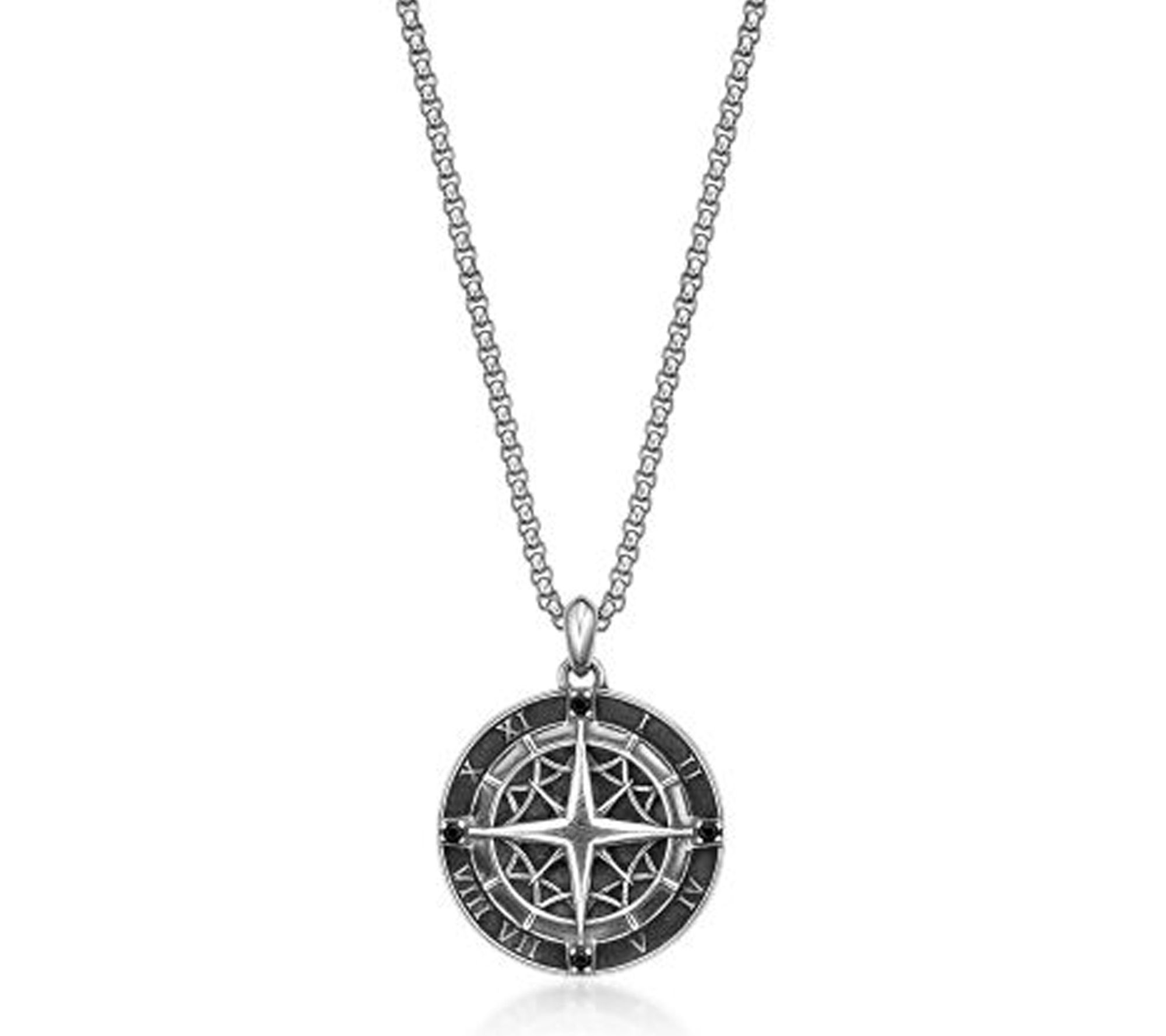 LYNX Men's Sterling Black Spinel Compass Pendant w/ Chain