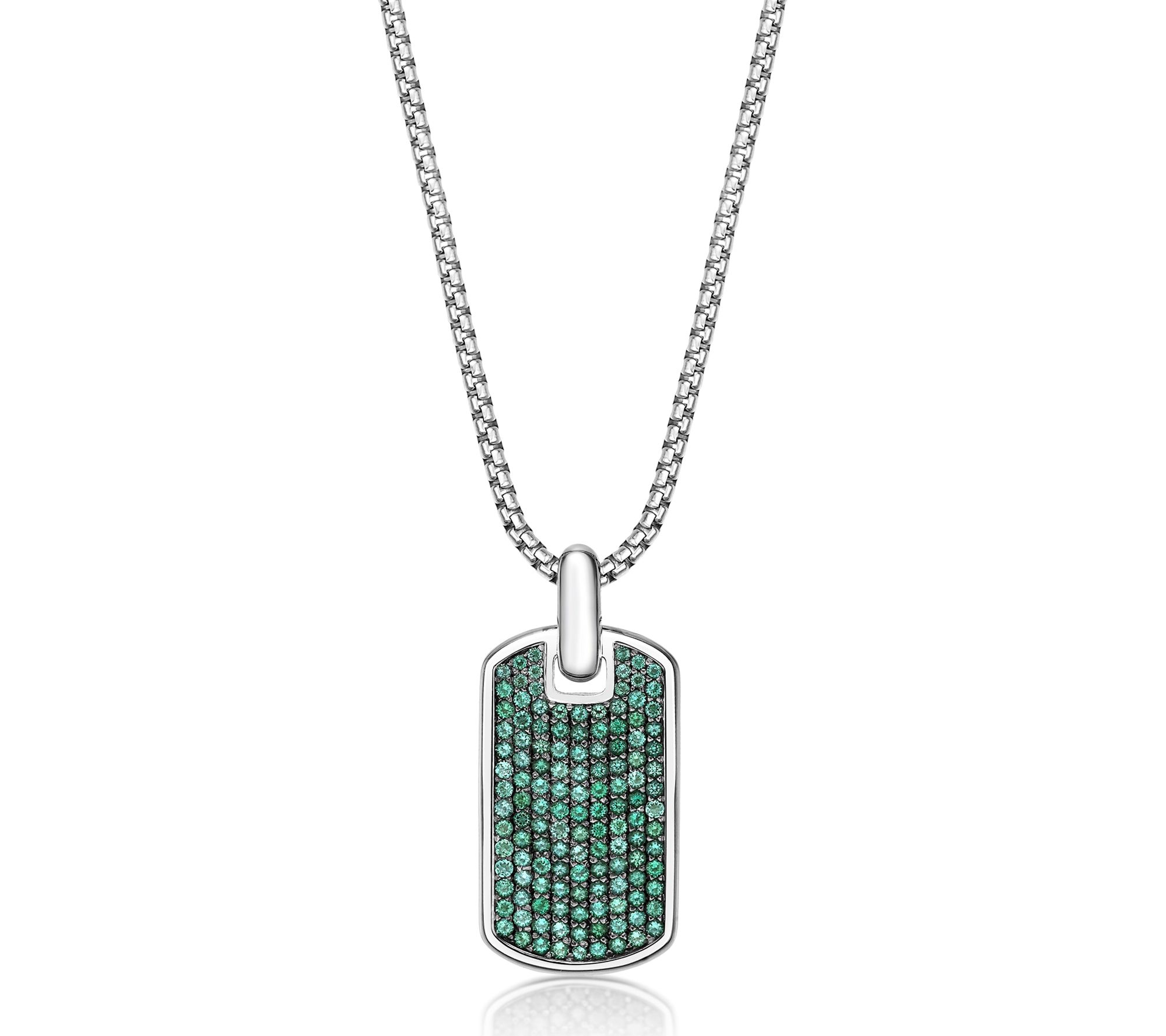 Bold lines and vibrant color come together in this men's dog tag necklace -- an ideal accent for polished outfits or casual weekends. The sleek sterling silver frame holds a field of lab-created gemstones, providing sparkle to match your mood or celebrate a milestone. From LYNX.