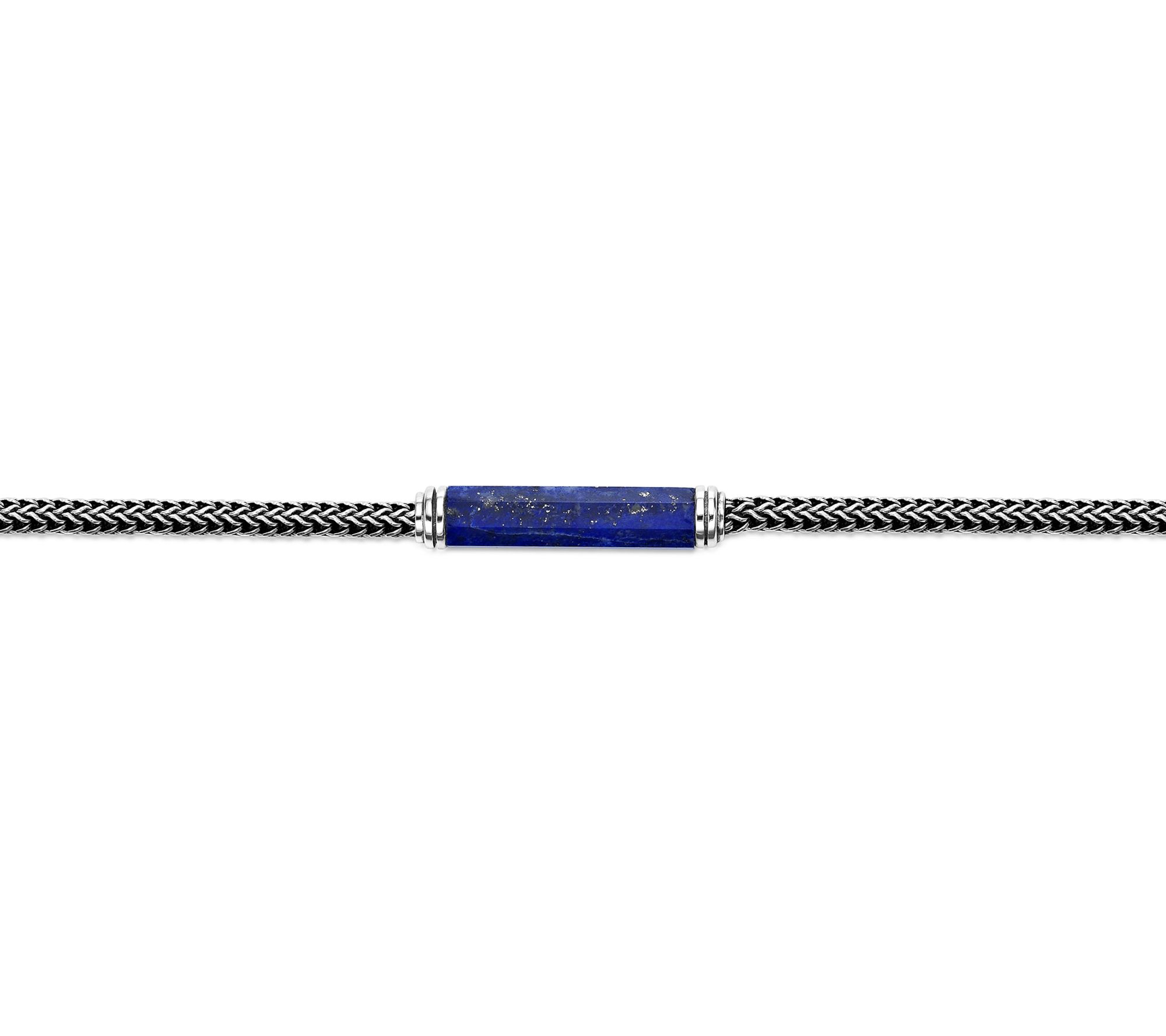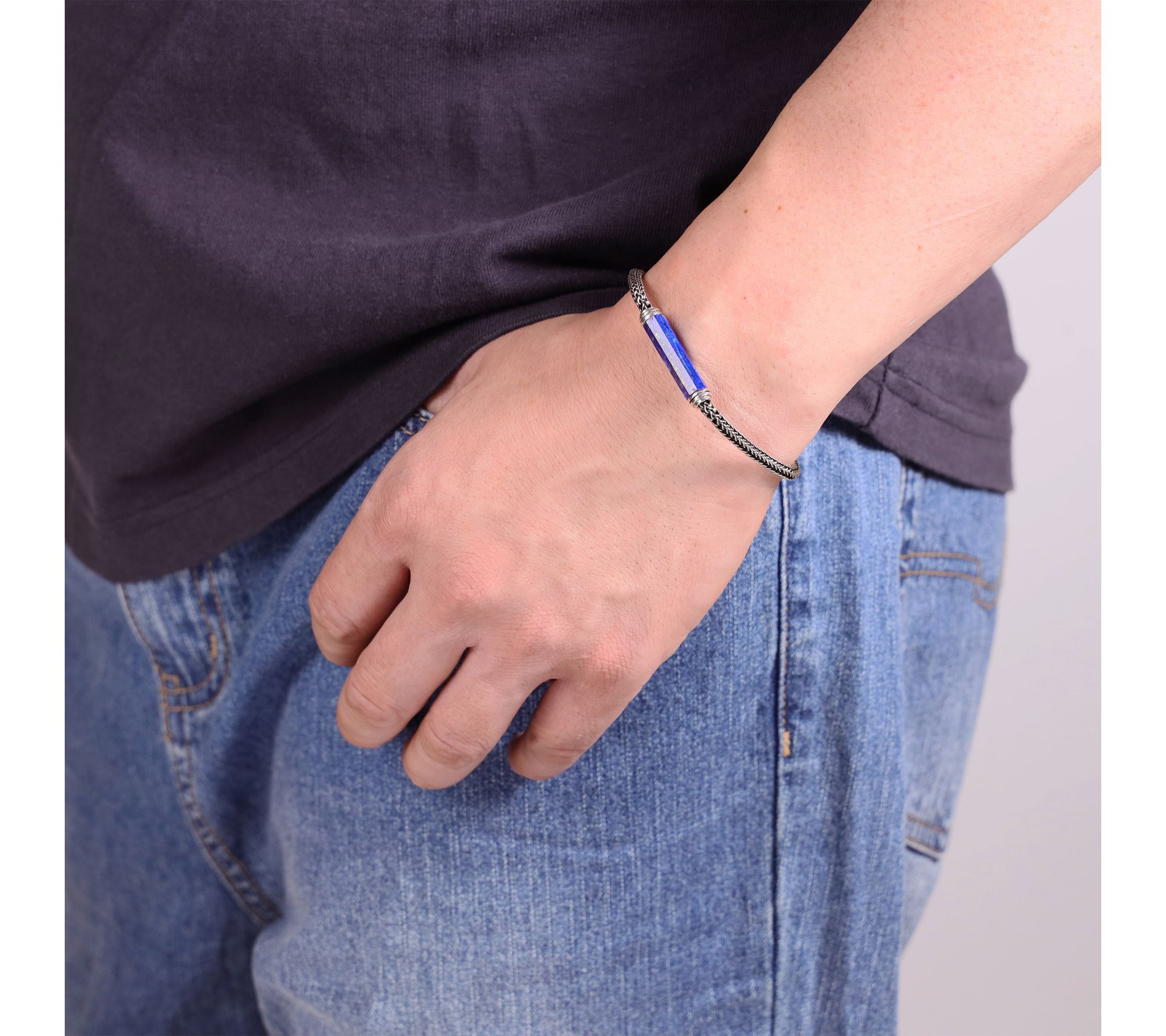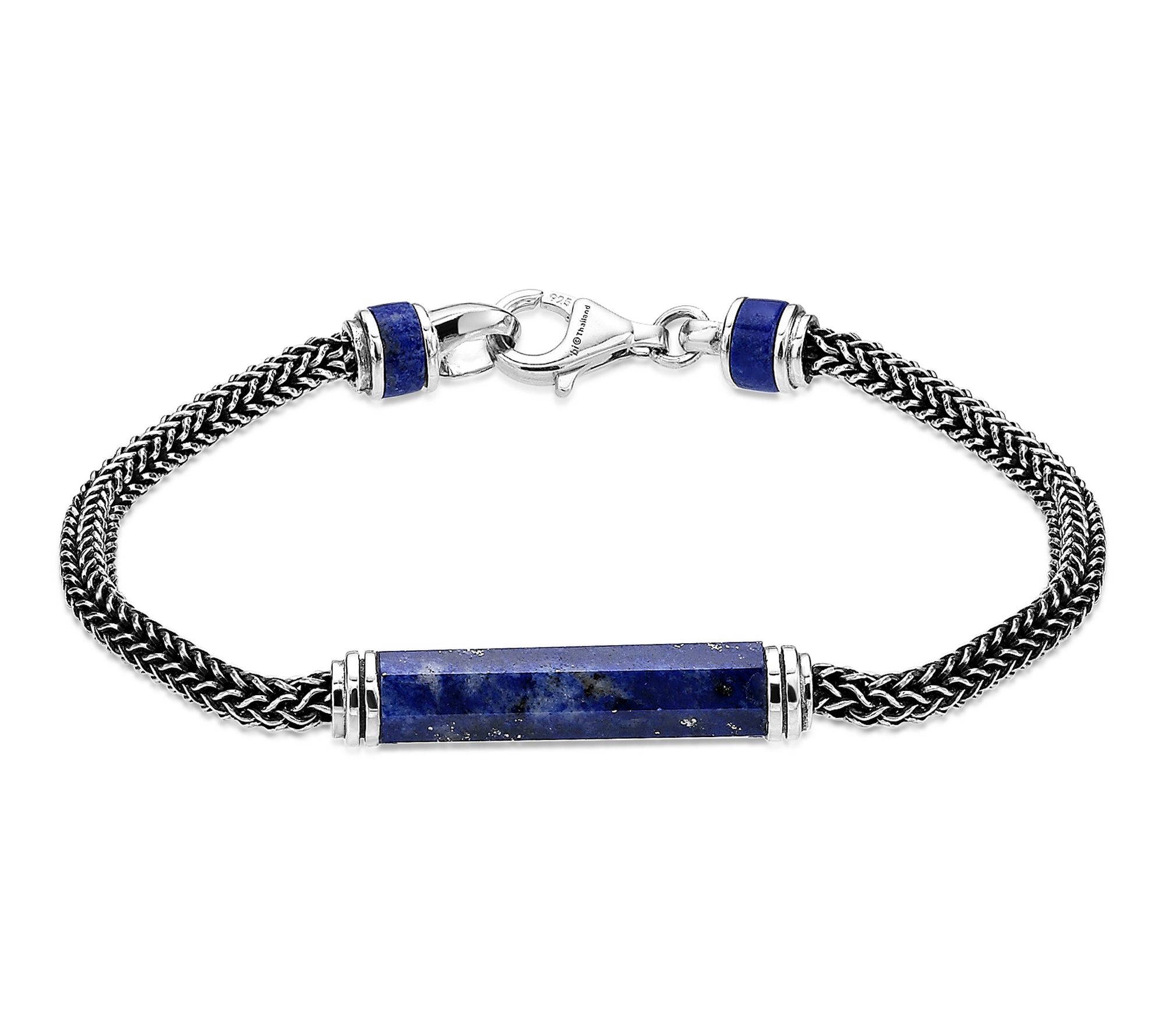 A bold expression of personal style, this men's sterling silver lapis bracelet makes a statement whether paired with a crisp button-down or an everyday tee. Polished sterling silver accents complement the striking blue lapis, giving your look an instant upgrade for day or night. From LYNX.