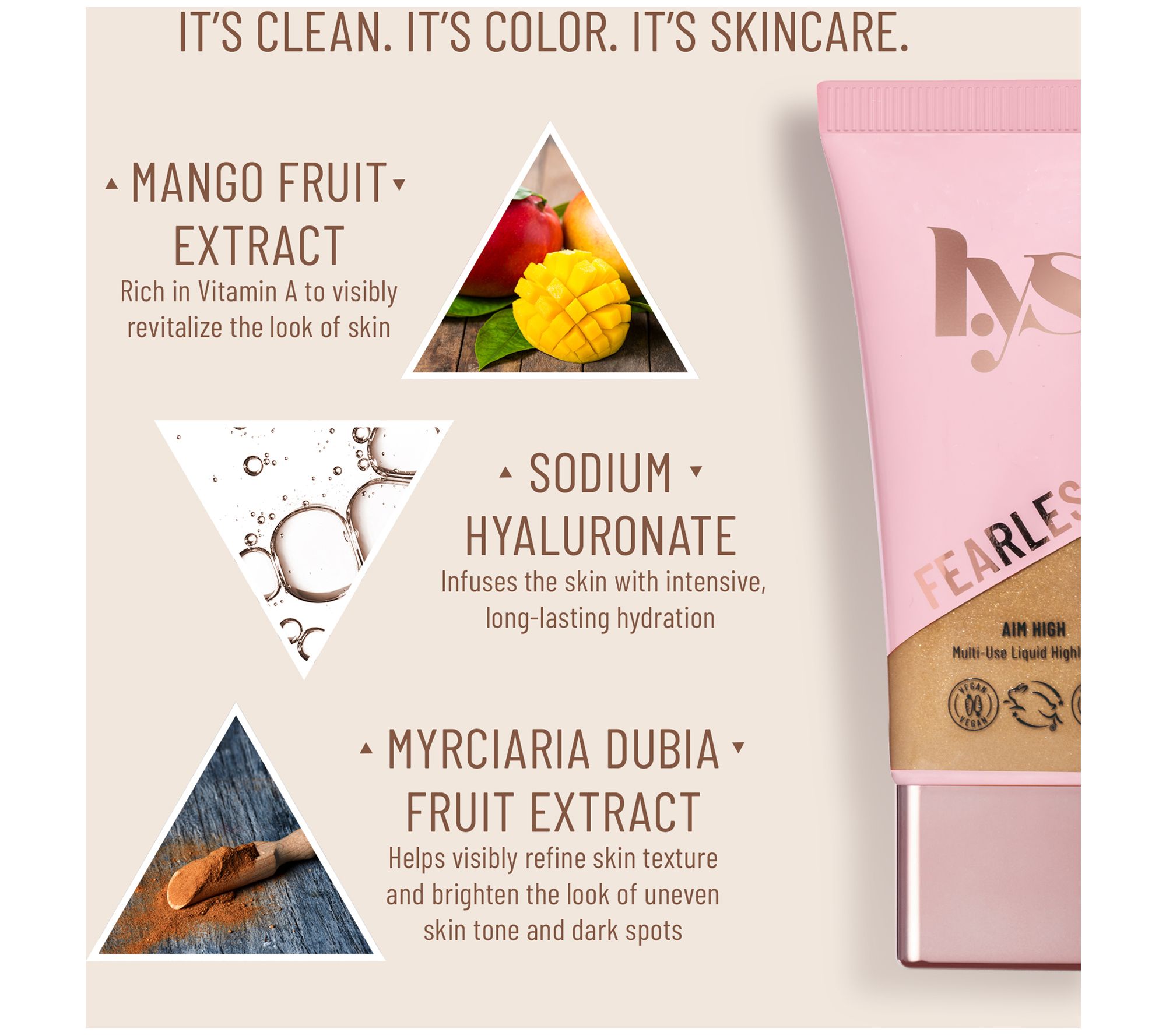 LYS Beauty Aim High Multi-Use Liquid Highlighter is formulated with mango fruit extract and hyaluronic acid. It helps to provide skin with hydration.