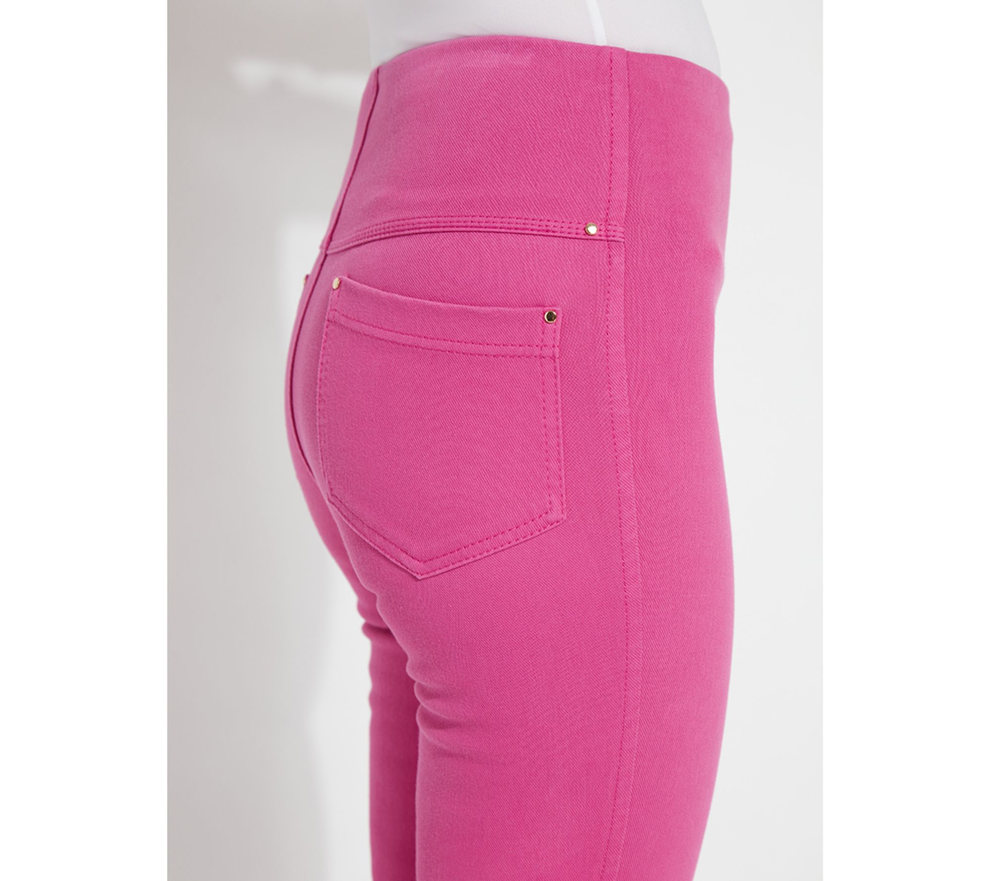 • Features: pull-on style, concealed patented waistband, back patch pockets with metal grommets, anatomical seaming
