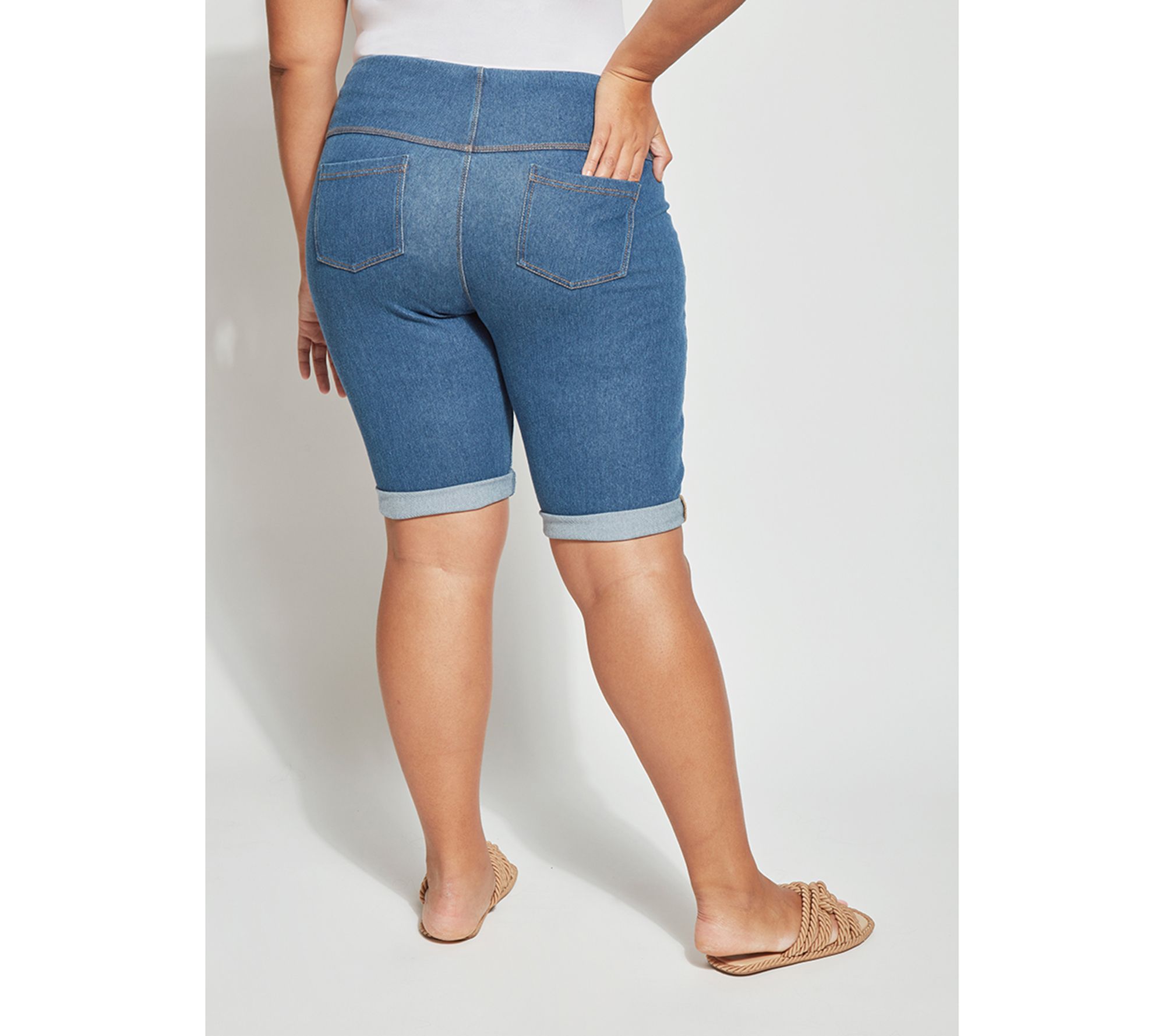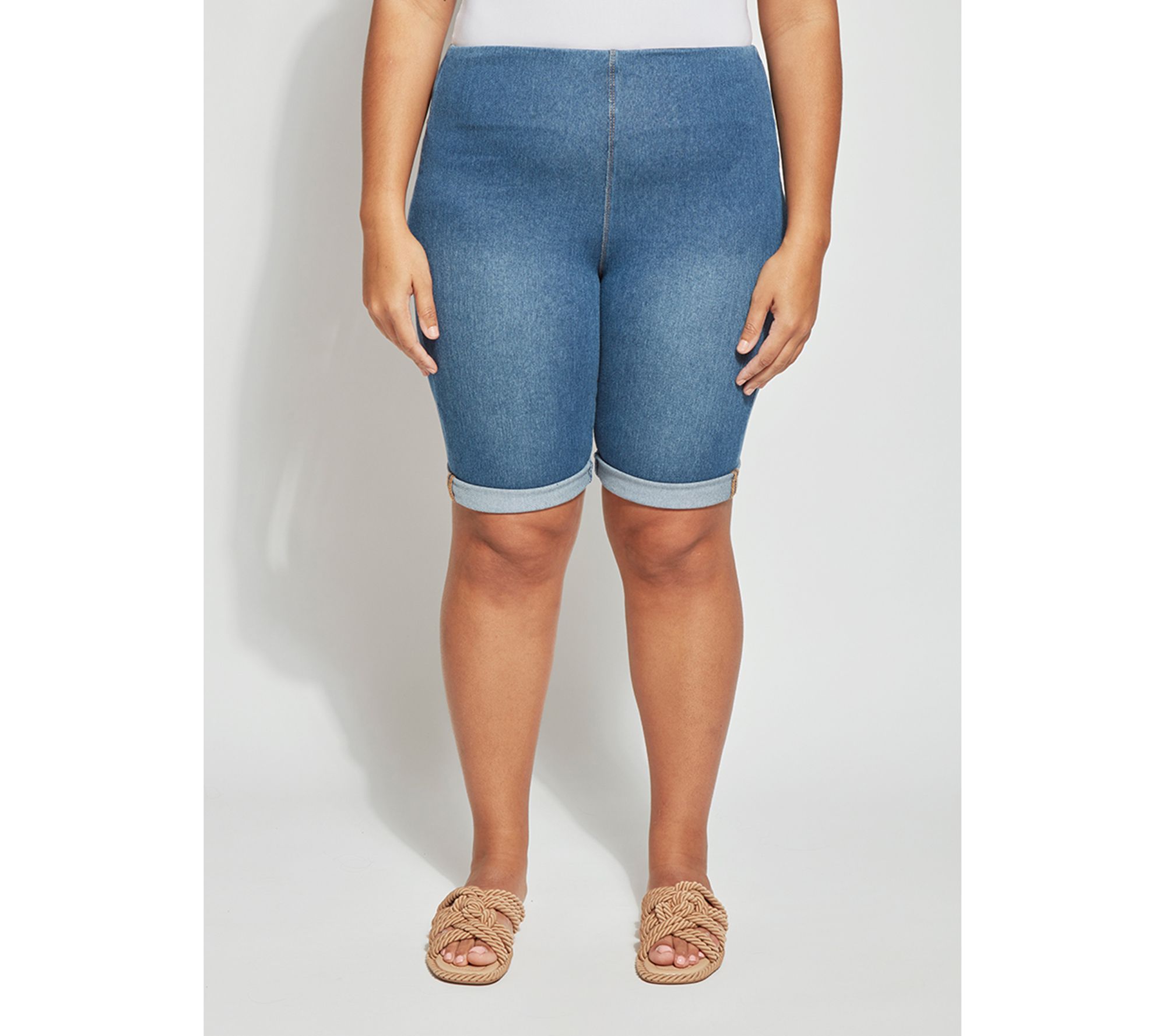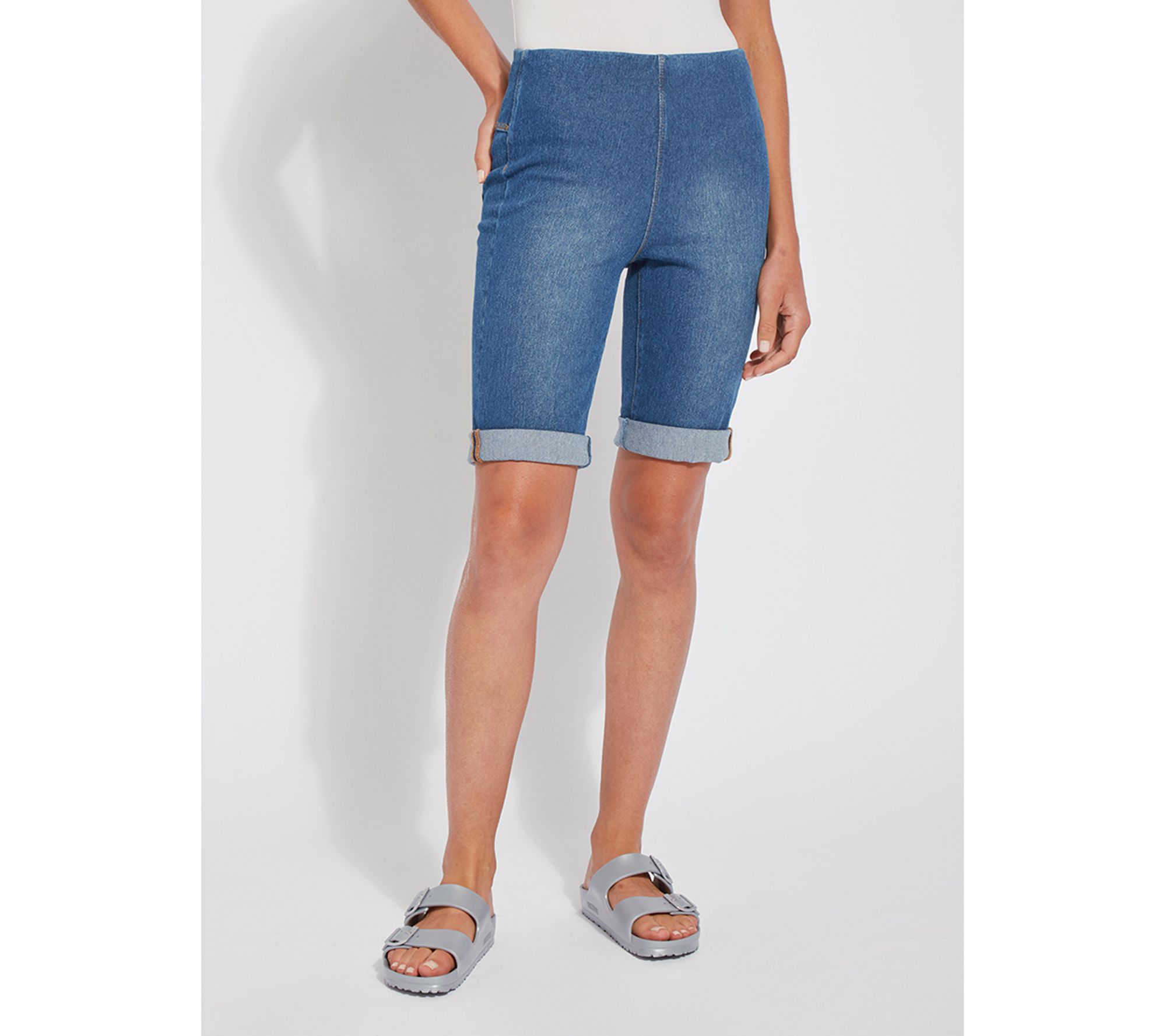 Relax in everyday comfort wearing these denim shorts that lend versatile style to any outfit with rollable hems and a concealed waistband. From Lysse.