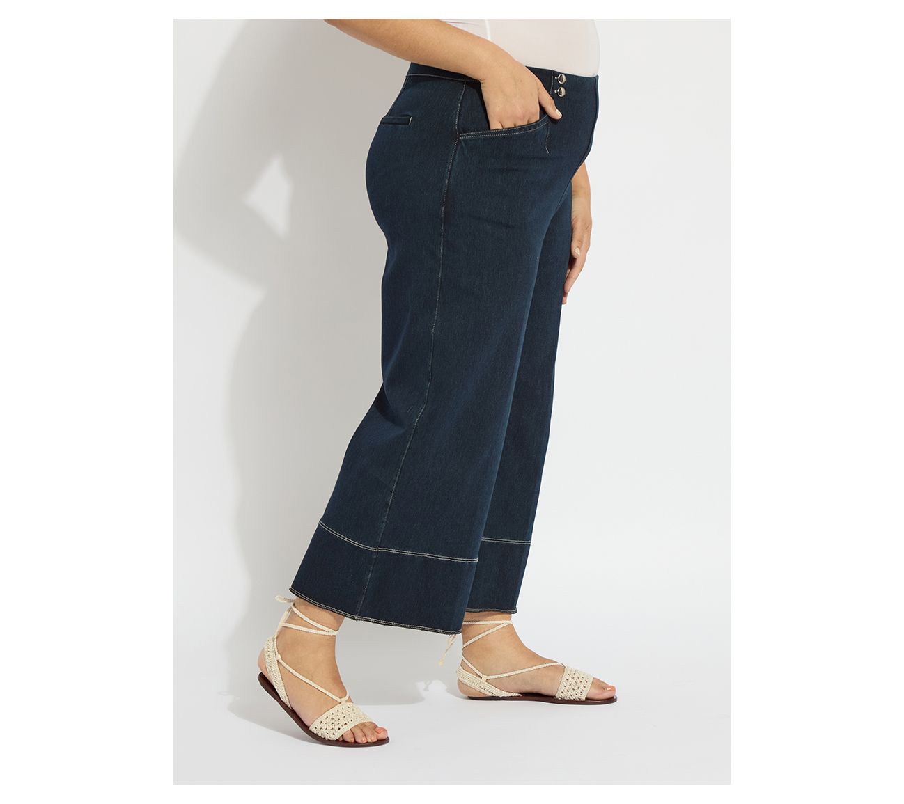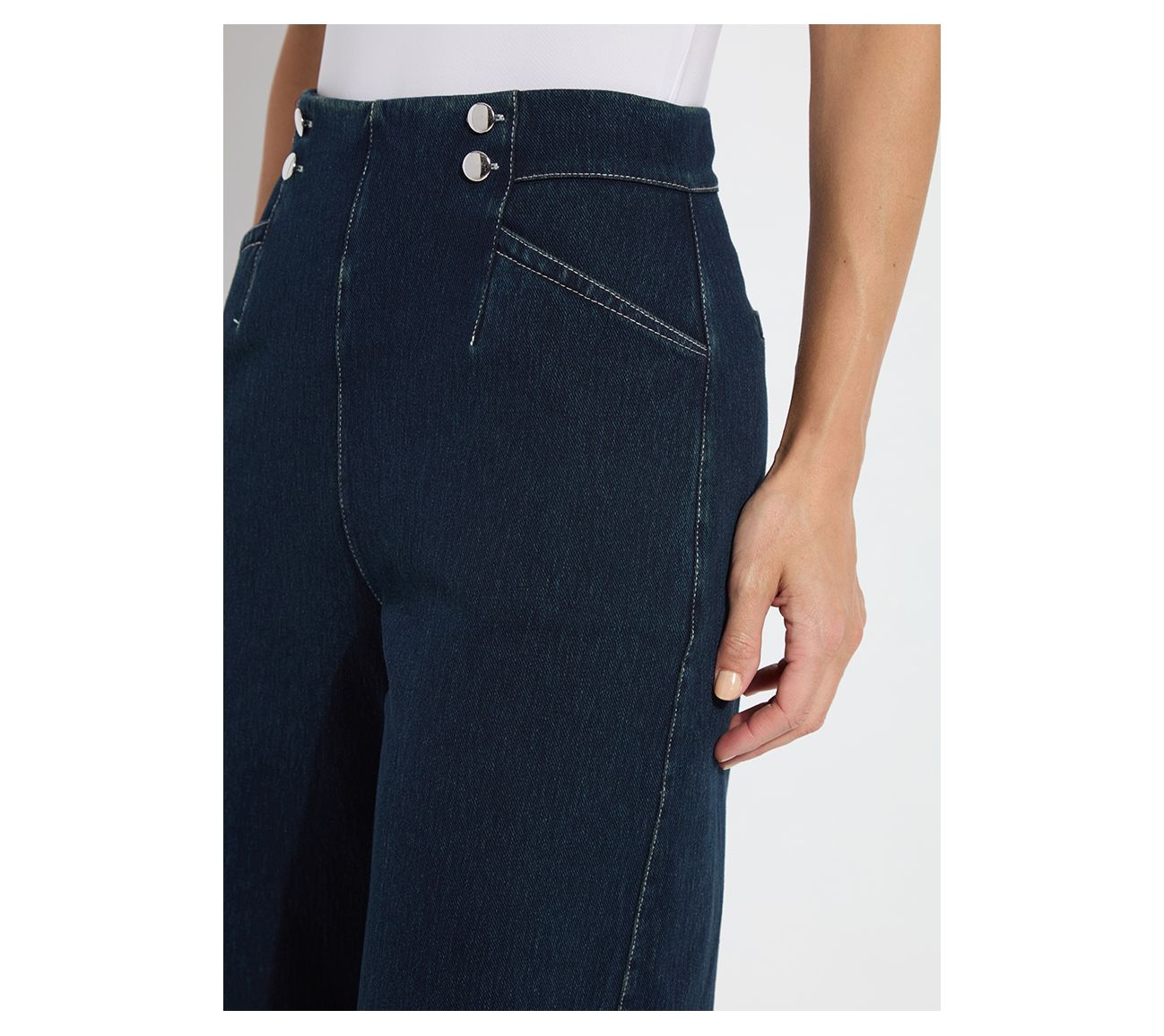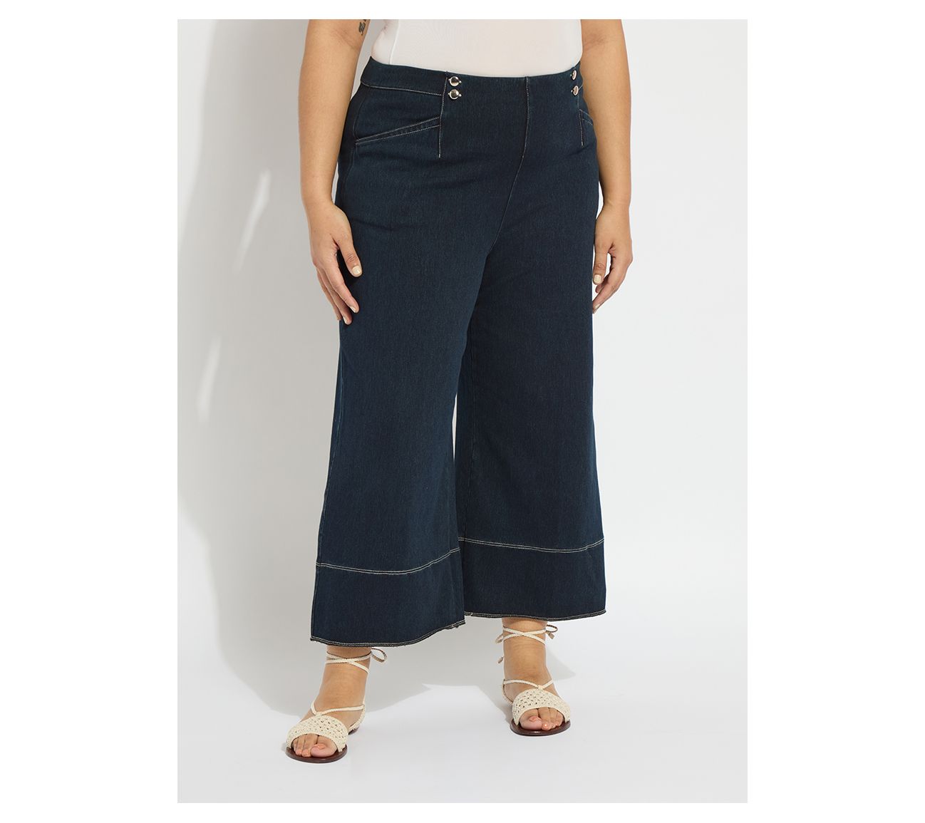 Head into the weekend with the relaxed ease of these Lysse New York Dion Sailor crop palazzo denim pants. With a sailor-inspired design and functional pockets accented by metal buttons and eyelets, this wide-leg cropped style is both chic and practical. From Lysse New York.