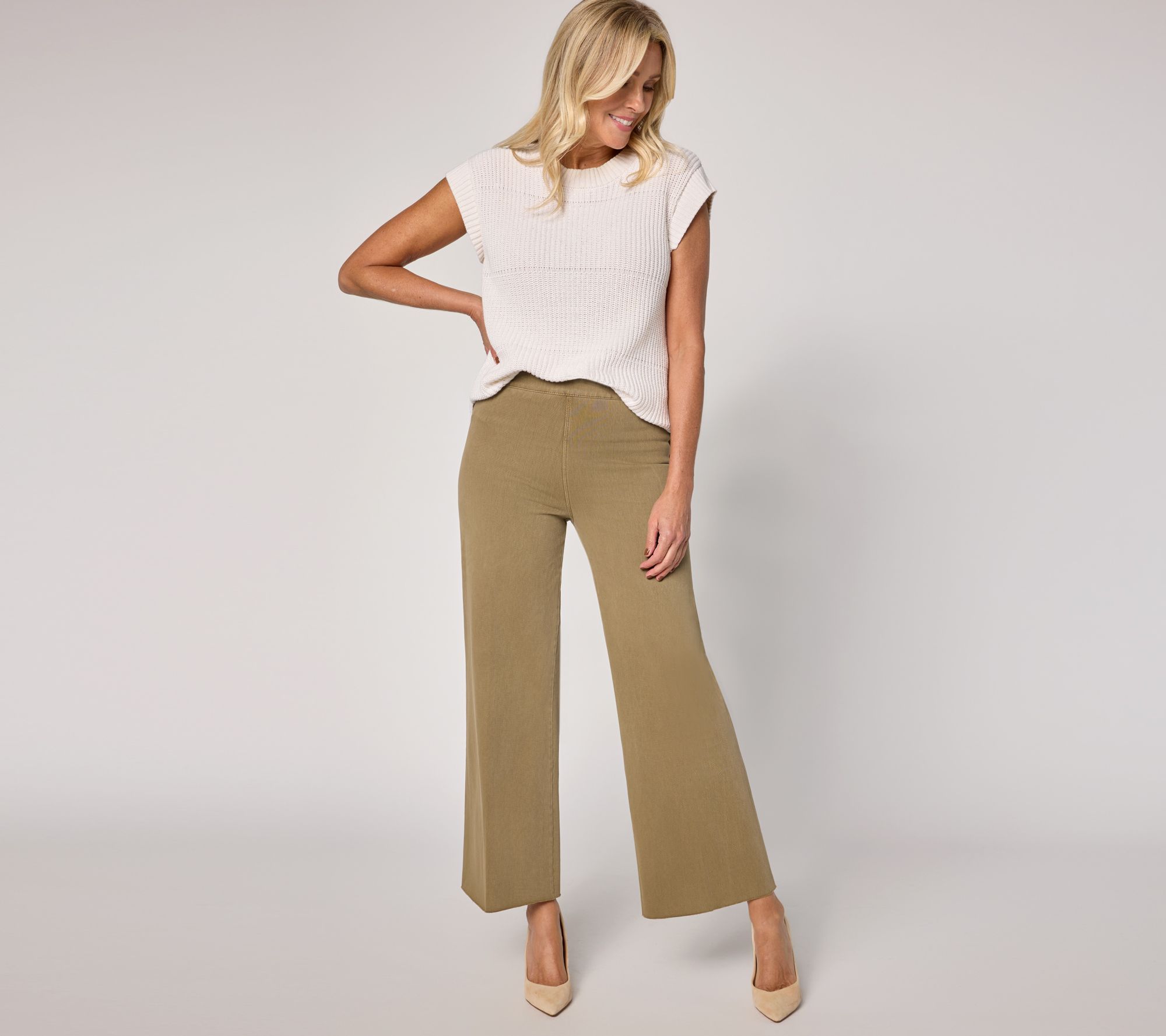 Picture it: a weekend getaway, wine-tasting at a local vineyard, or just a casual afternoon out and about. Now -- what jeans are you wearing? Betcha the Erin. Four-way stretch knit. Wide leg. Raw-edge hem. Of course you're manifesting in the most deliciously stylish (and comfy) jeans possible. From Lysse New York.