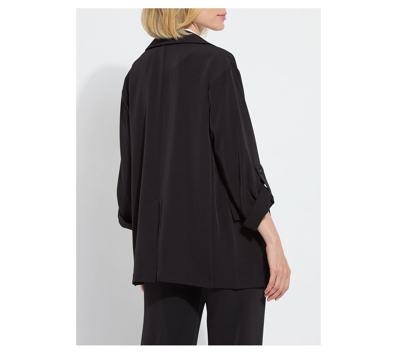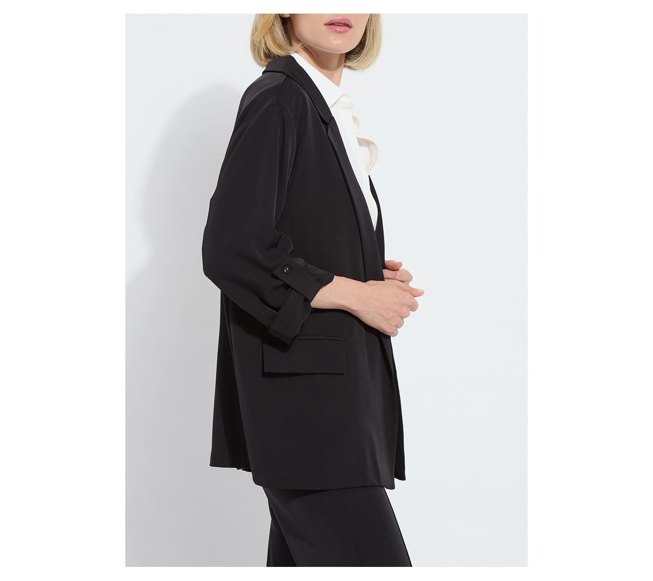 Take on your day with the versatile Genevieve relaxed blazer. Made from a wrinkle-resistant stretch woven fabric, this blazer is a must-have for any wardrobe, perfect for business trips and casual outings alike. With self-tab sleeves and functional flap pockets, you'll stay stylishly on-point. From Lysse New York.