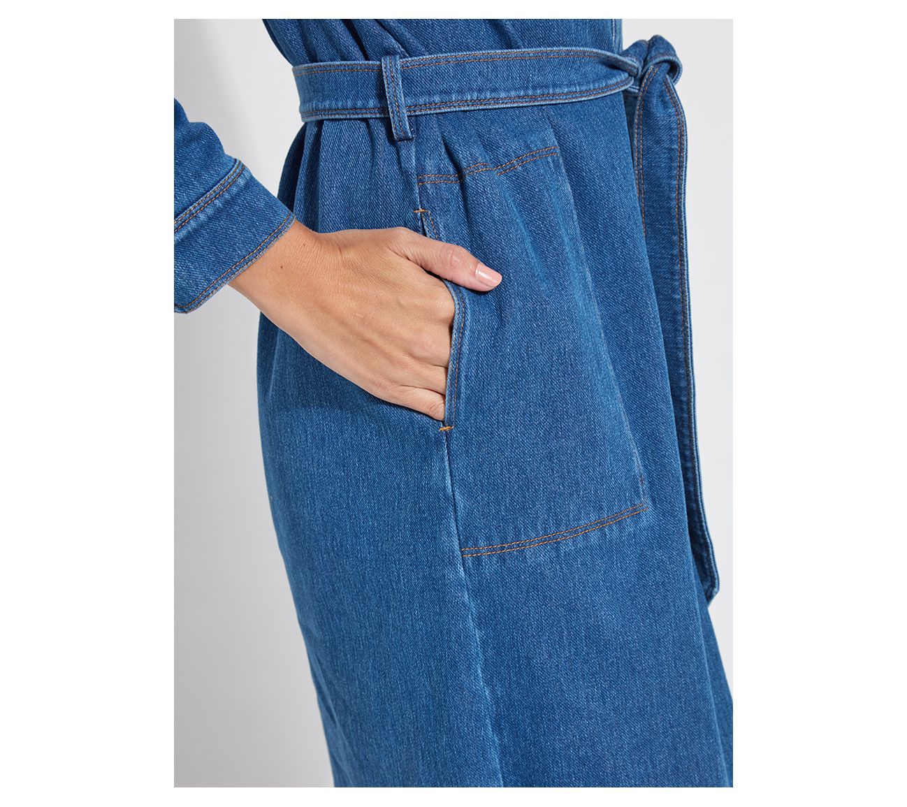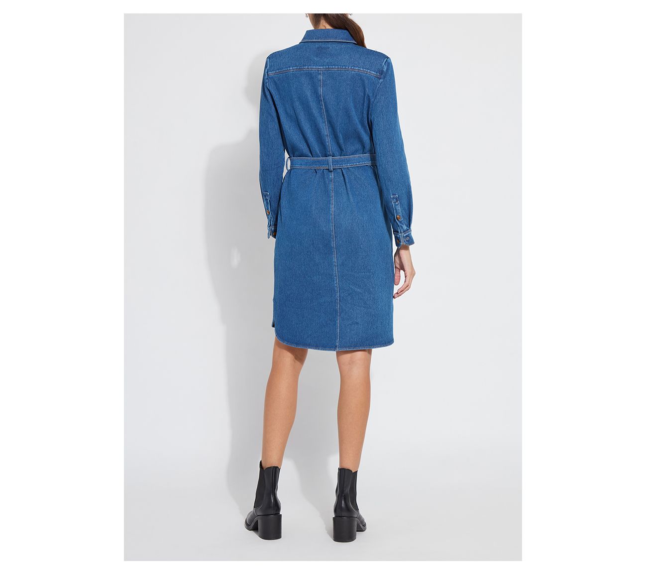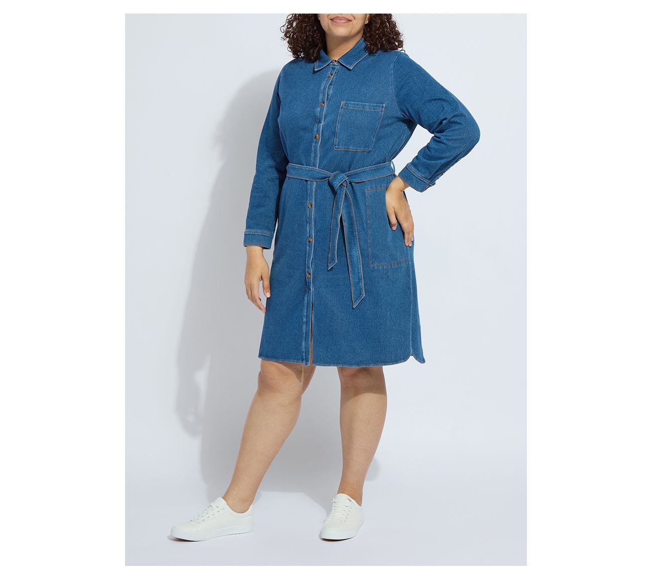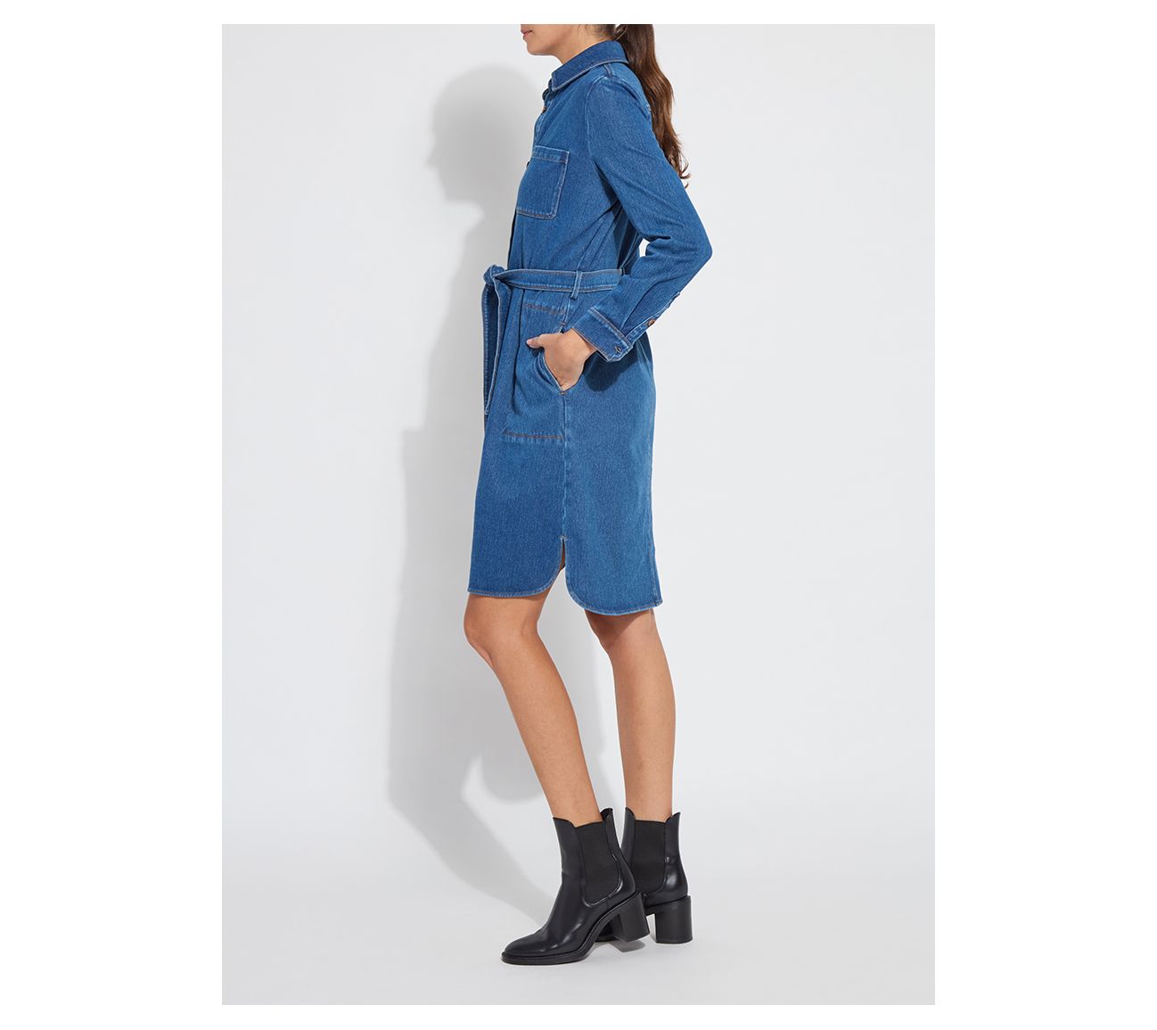 From workday meetings to brunch with friends, this knee-length shirt dress adapts effortlessly to every moment. Soft stretch knit denim, a detachable belt, and practical pockets make this style an easy choice for busy mornings or relaxed afternoons. From Lysse.