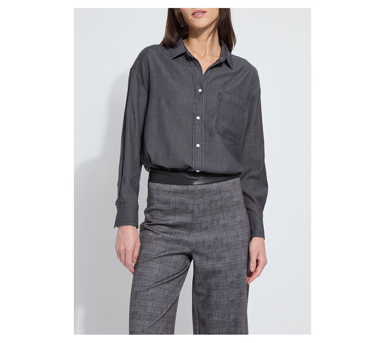 Effortless days call for an easygoing chambray shirt you can wear from busy mornings to casual evenings out. With a relaxed fit, drop shoulders, and a high-low hem, this top brings comfort and timeless style to any wardrobe. From Lysse New York.