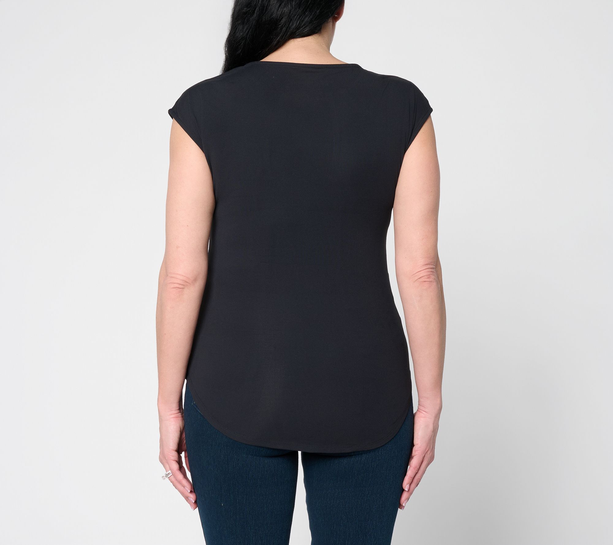 Stay comfortable and stylish from busy weekdays to casual weekends with this versatile cap-sleeve top. The scoop neckline and high-low hem pair seamlessly with your favorite jeans or skirts, while four-way stretch knit moves with you all day long. From Lysse New York.