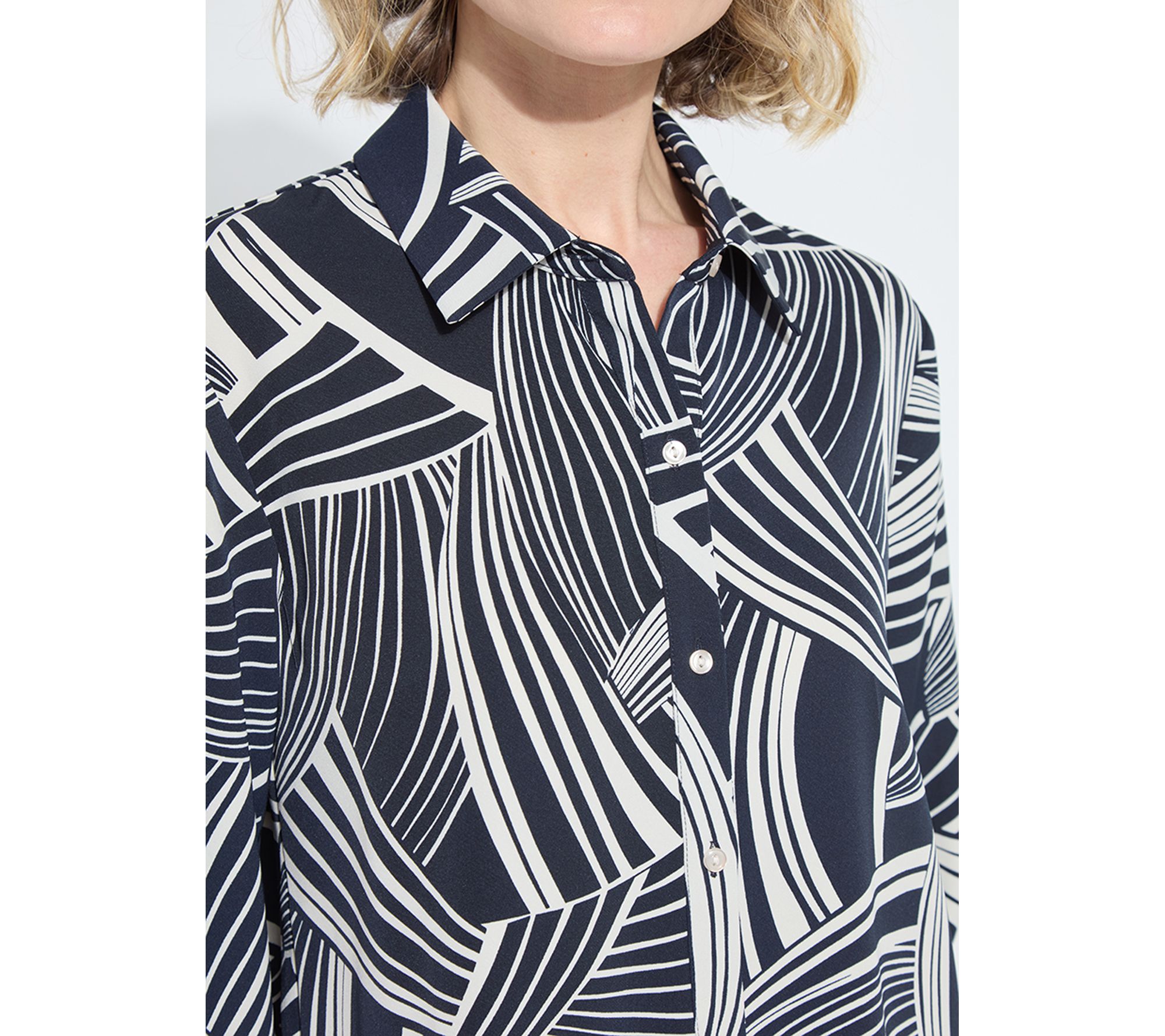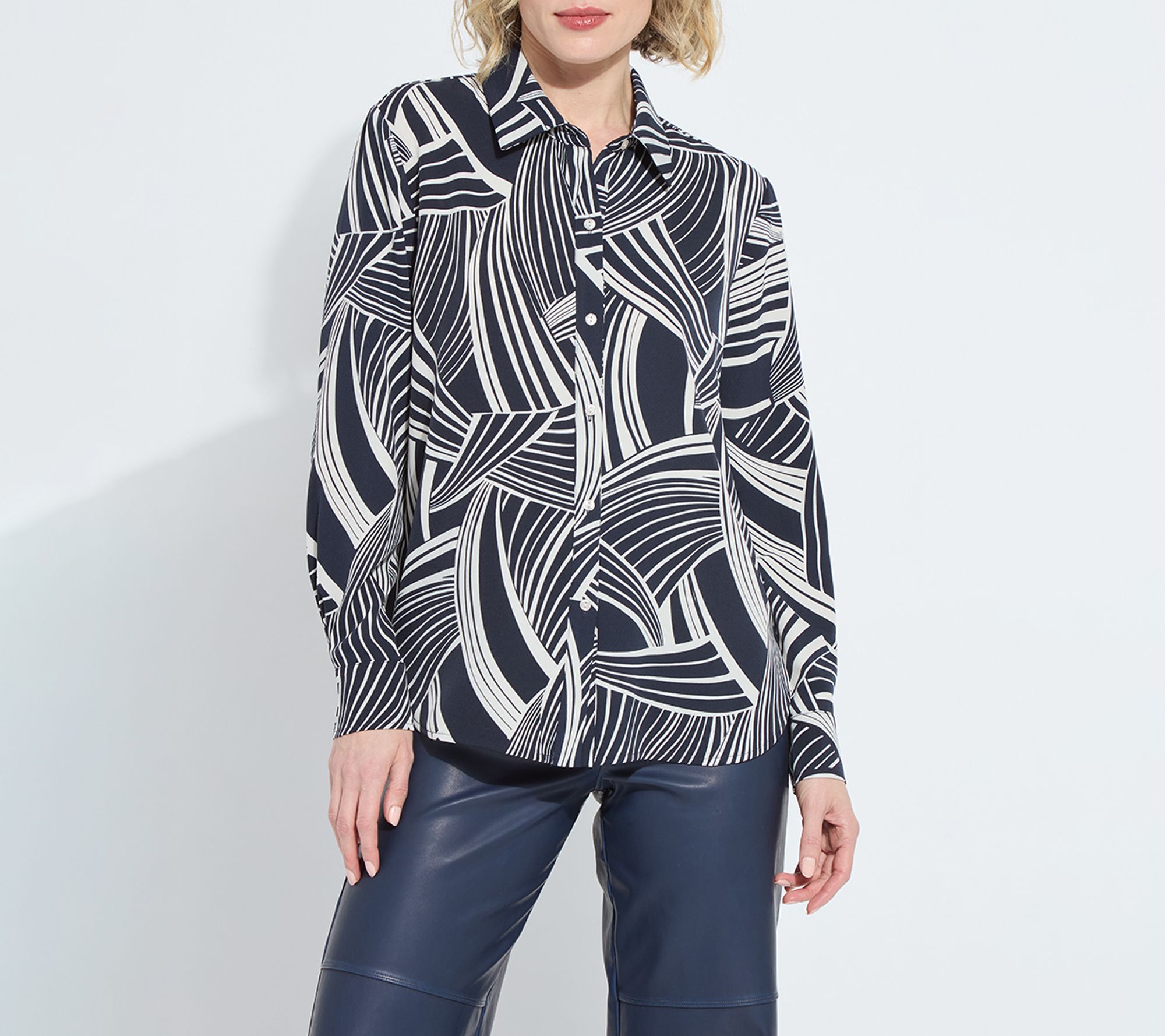A button-down shirt is your go-to for those days when you want to look polished yet feel relaxed. Whether you're heading into the office, meeting friends for brunch, or adding a pop of print to your weekend plans, this top brings effortless flair and versatility to your wardrobe. From Lysse New York.