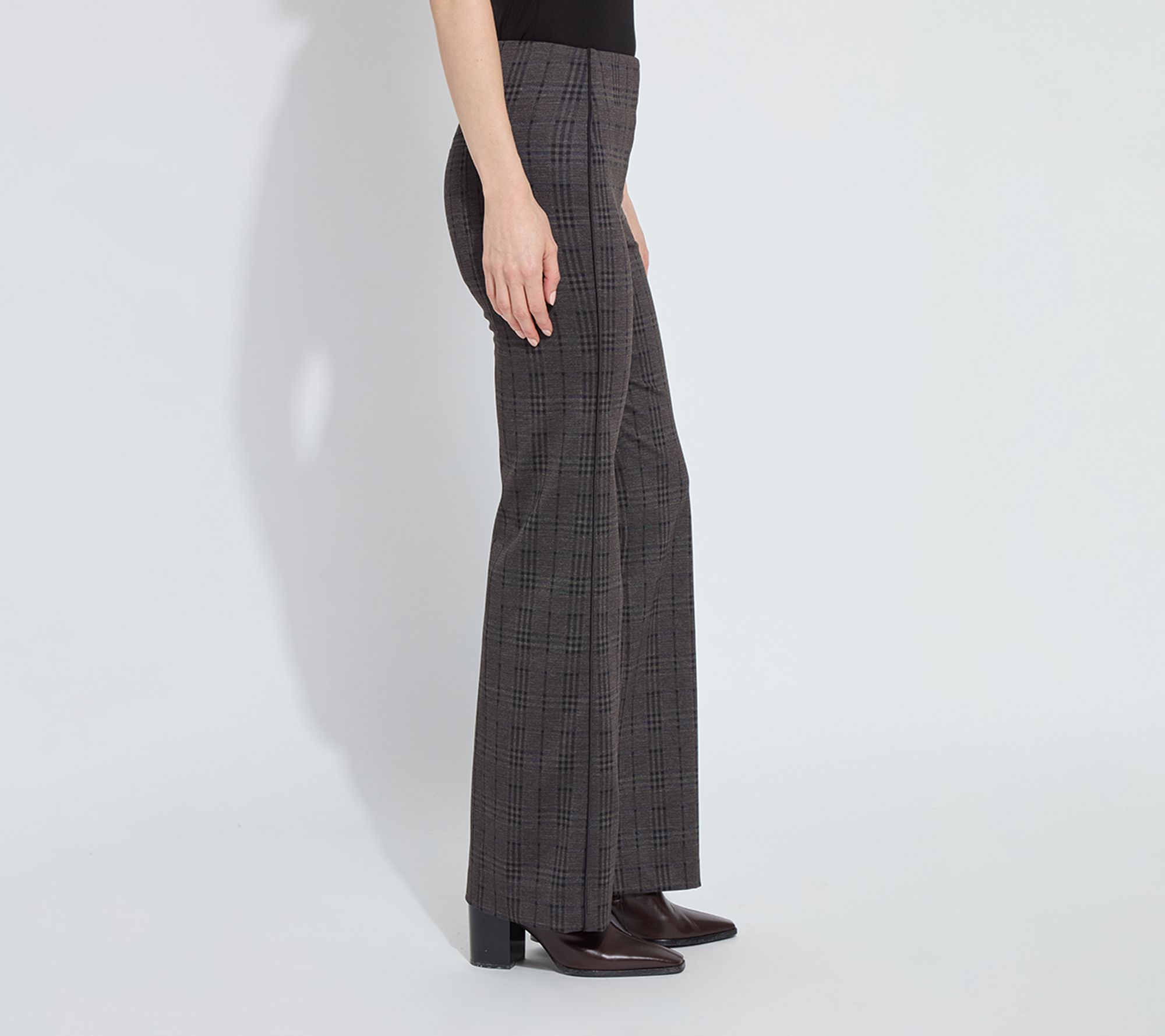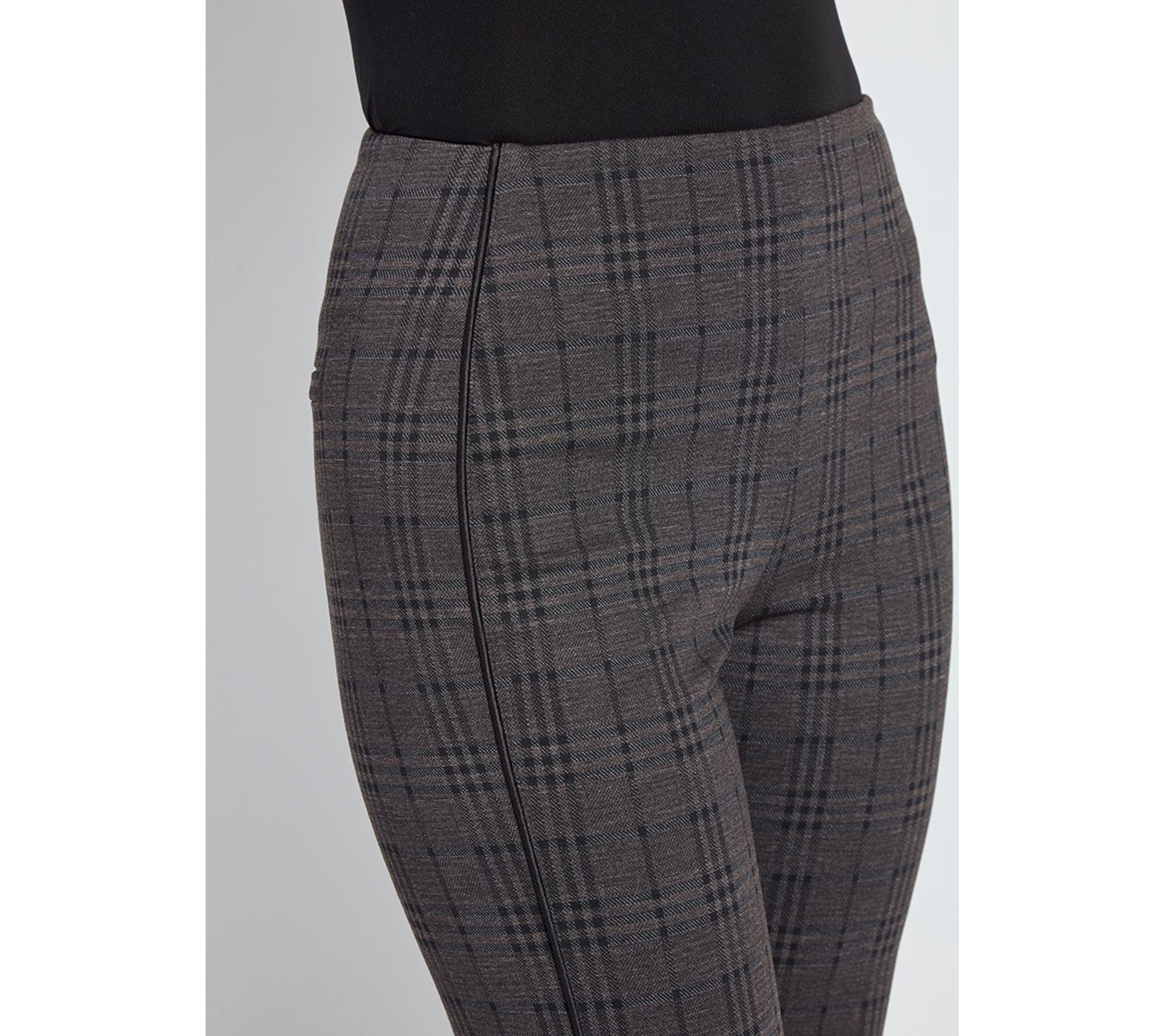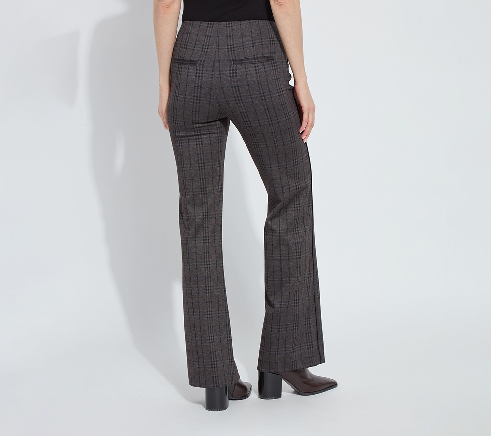 Polished enough for the office and comfortable enough for weekend brunch, these patterned ponte trousers with sleek satin piping add a stylish twist to your everyday wardrobe. The tailored silhouette flatters your shape while the soft stretch fabric keeps you moving with ease, whether you're dressing up or keeping things casual. From Lysse New York.